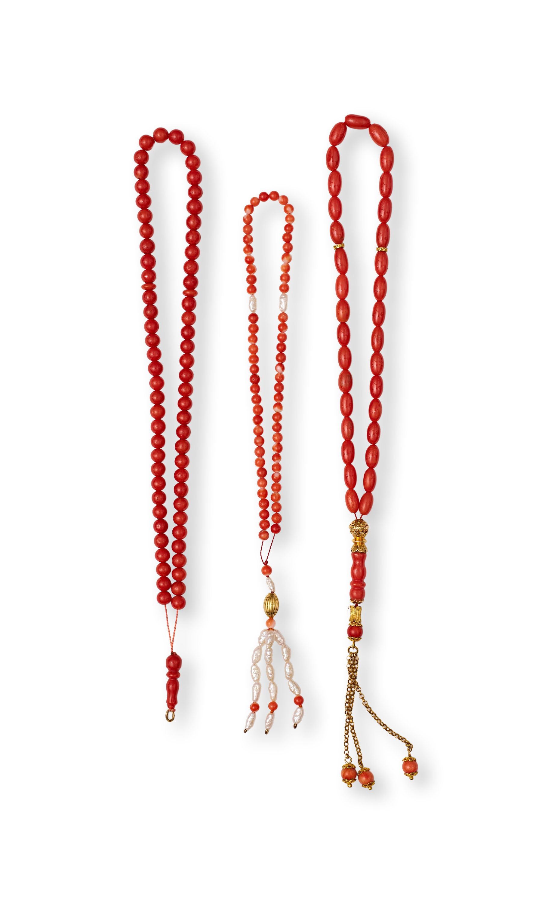 THREE CORAL ROSARY/PRAYER BEADS, 19TH CENTURY