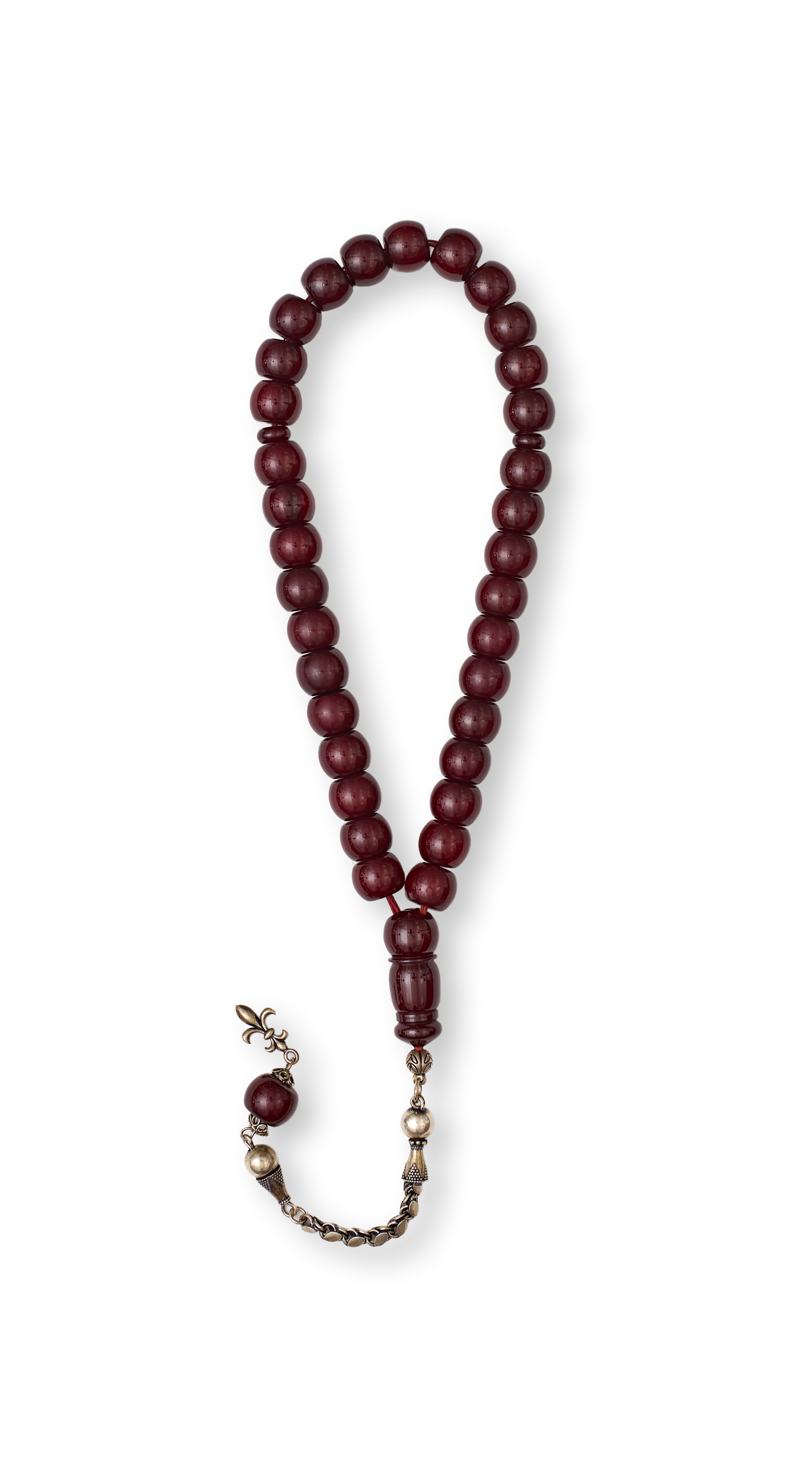 A ROSARY/PRAYER BEADS PROBABLY BAKELITE CHERRY AMBER