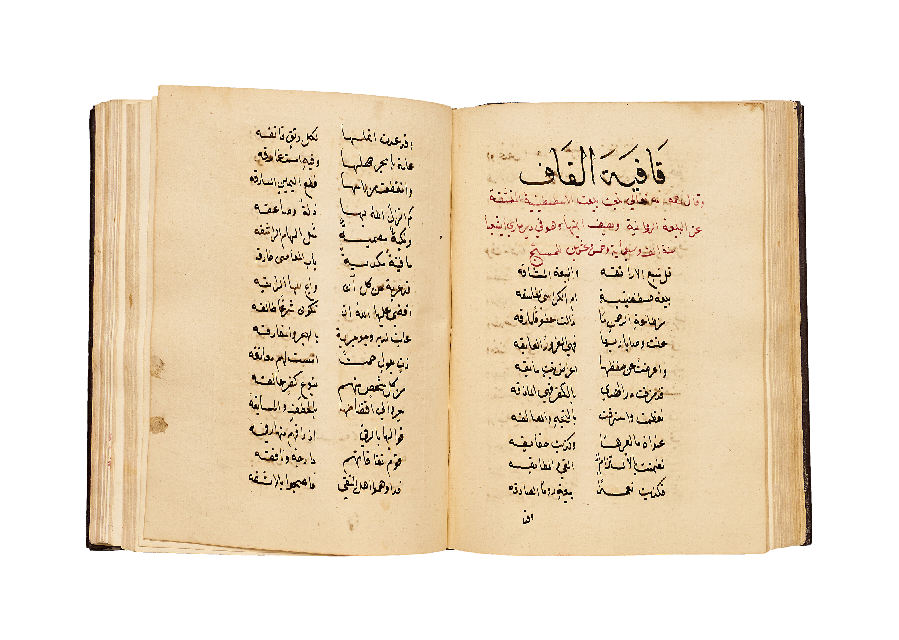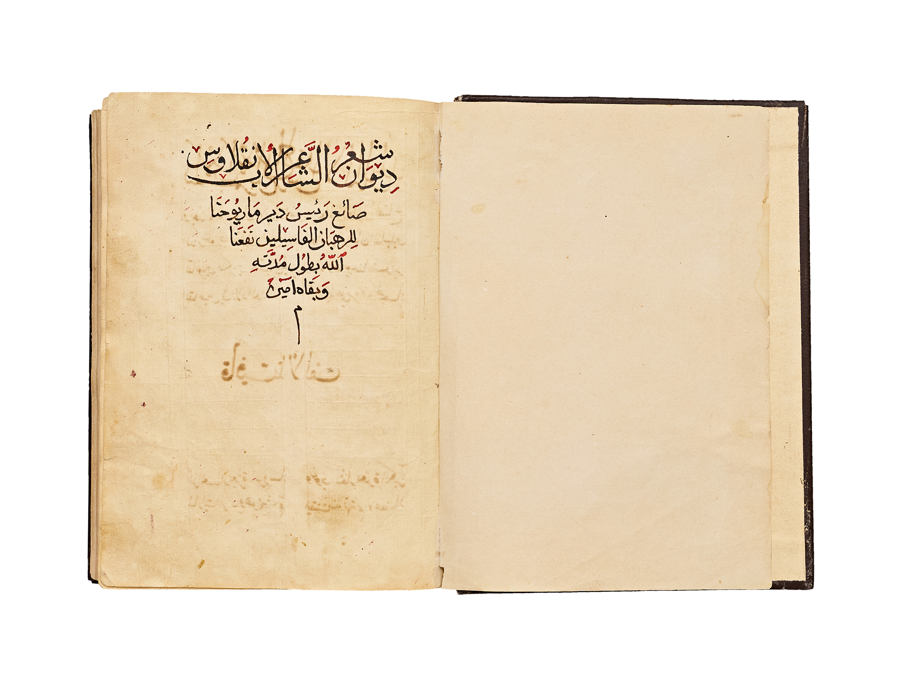 A finely preserved mid-19th-century Arabic manuscript containing the Diwan (collected poems) of Nikolaus Saigh, a distinguished Maronite poet from Mount Lebanon. This beautifully written volume was copied in Nazareth, Palestine, in 1847 A.D., reflecting the rich literary and cultural exchanges between the Christian communities of Lebanon and the Holy Land during the Ottoman period.
