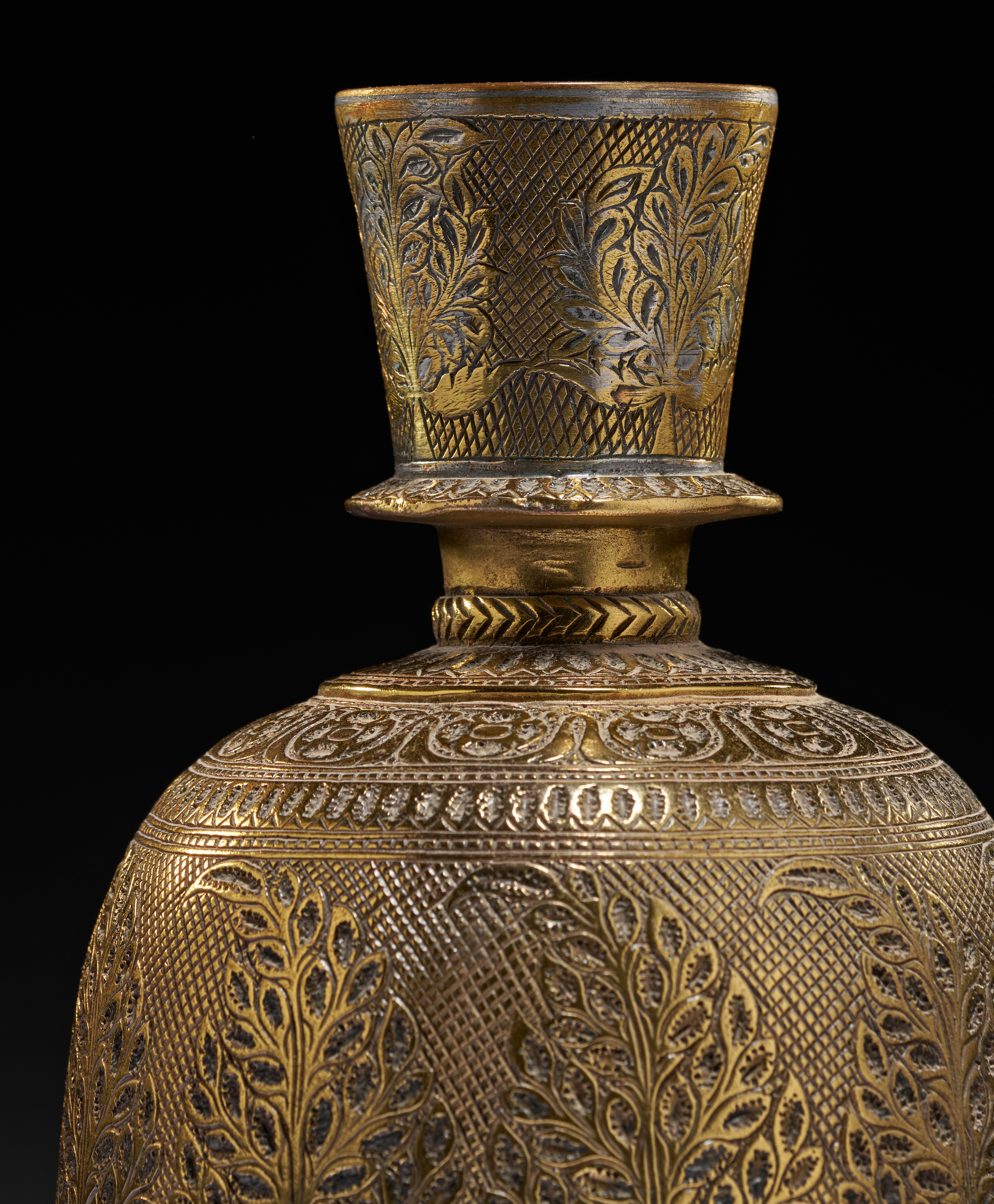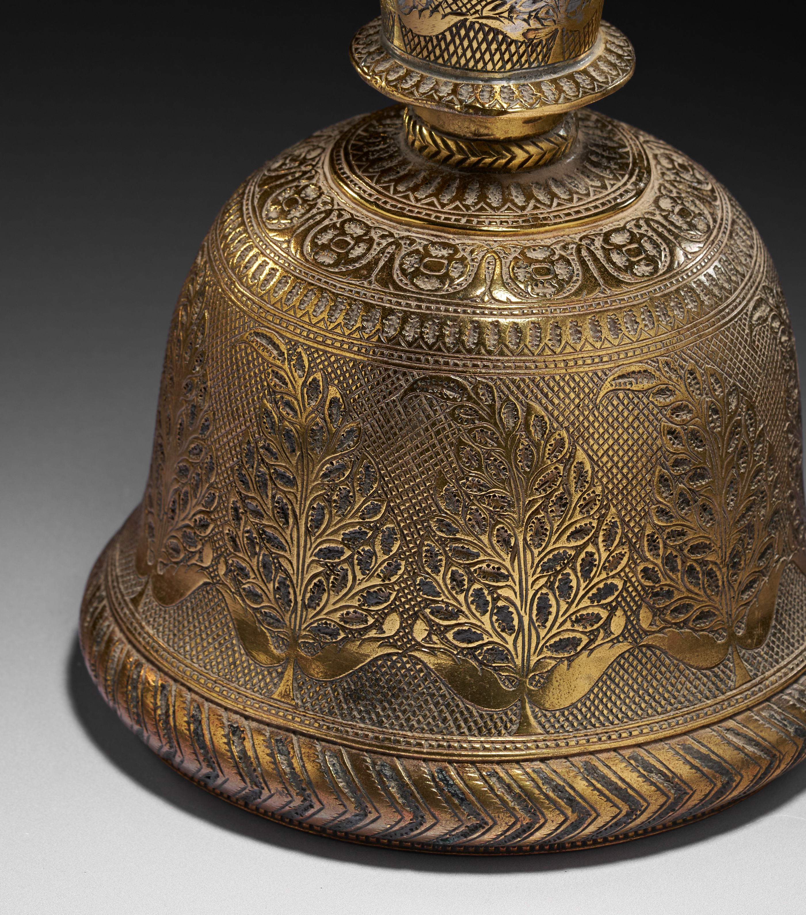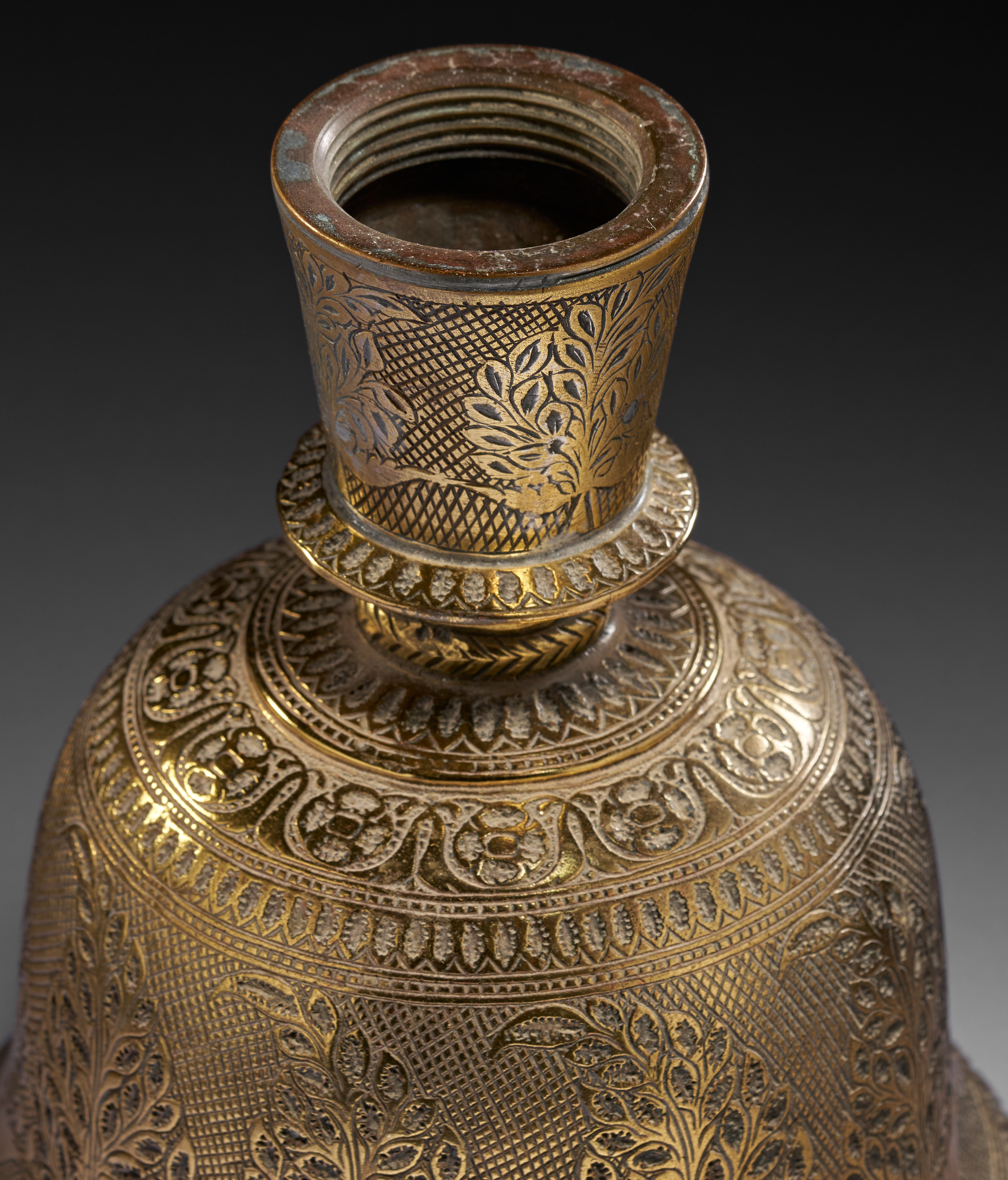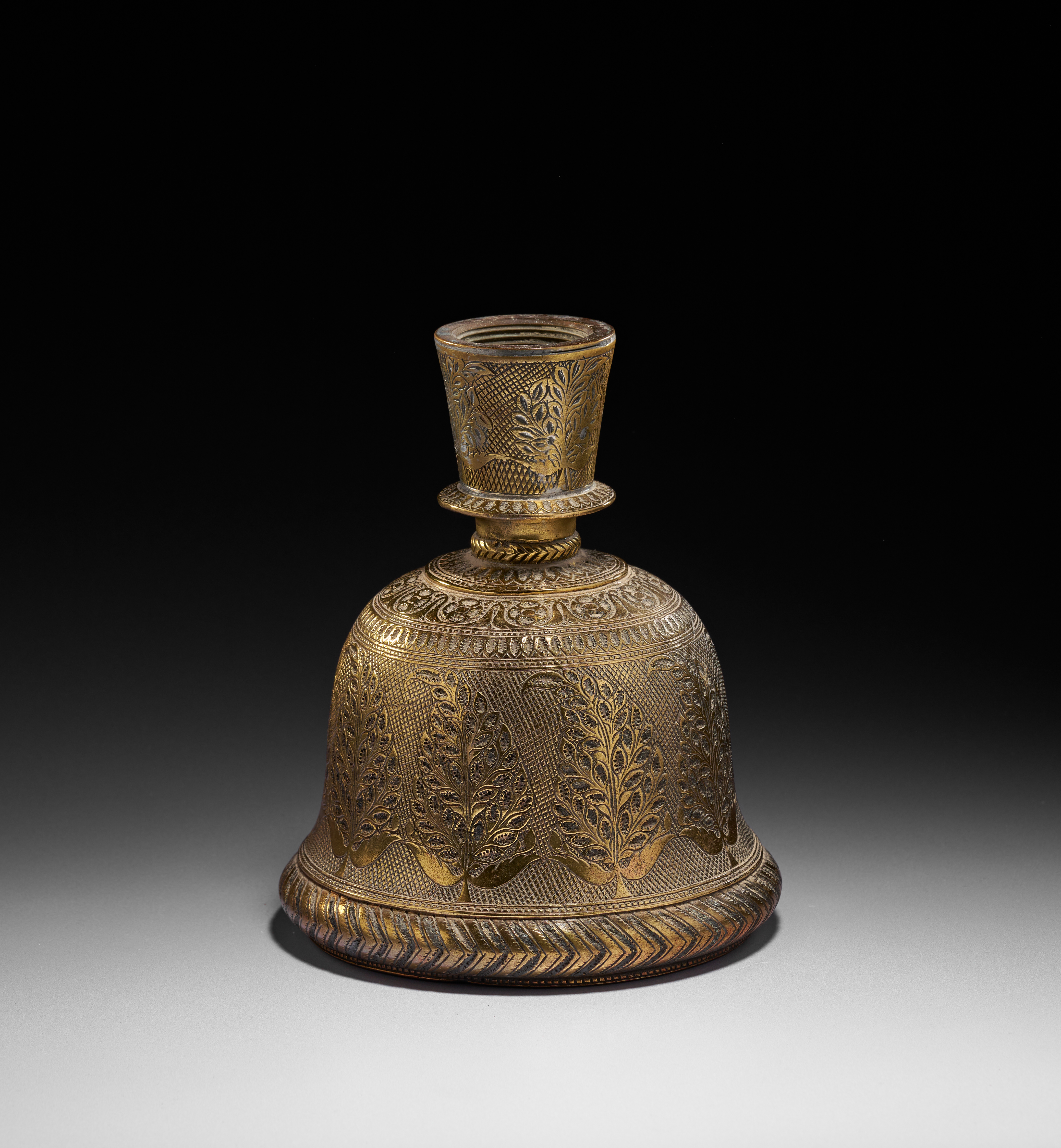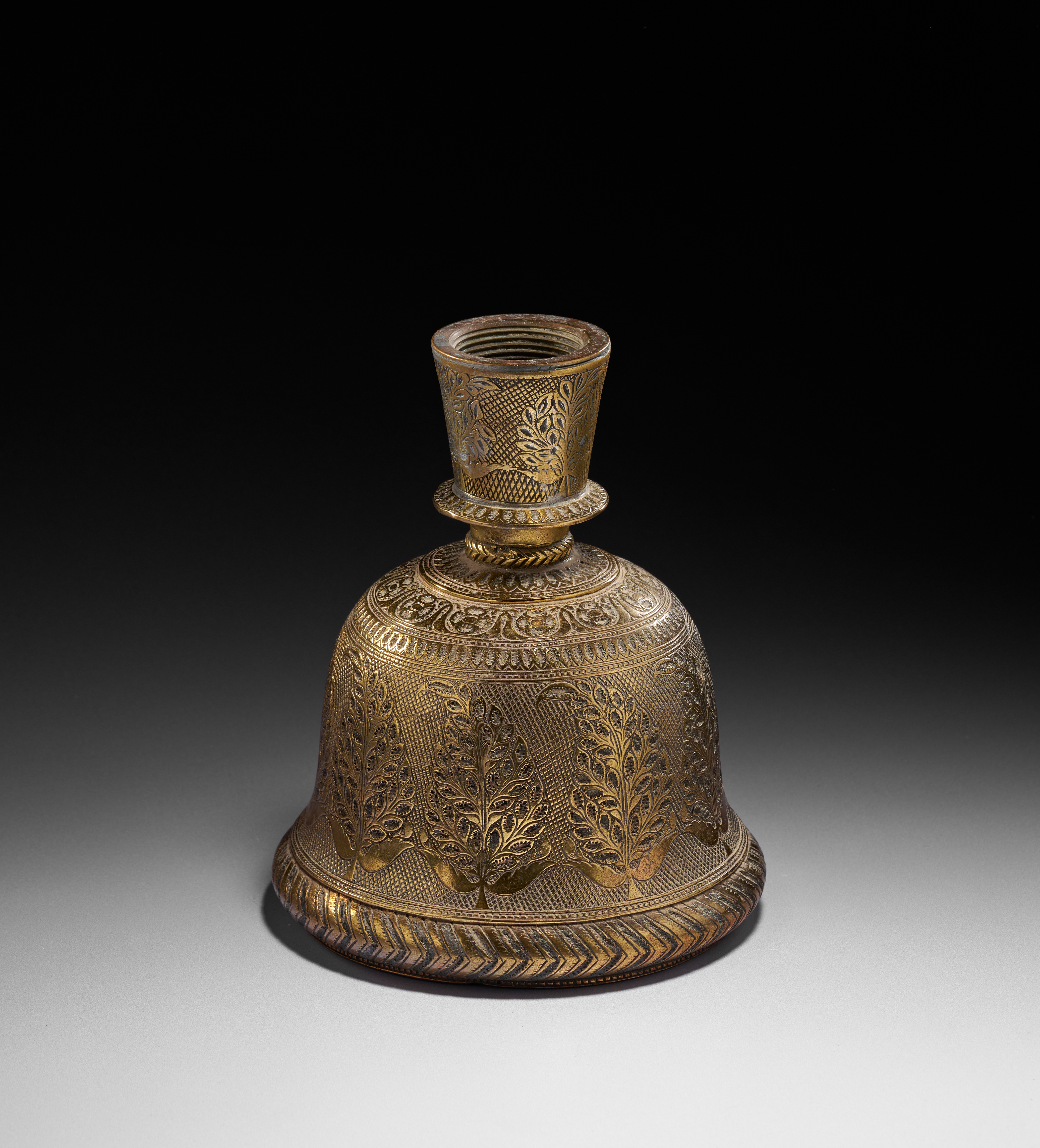 A BRASS BELL SHAPED INDIAN HOOKAH BASE, MUGHAL, 18TH CENTURY
