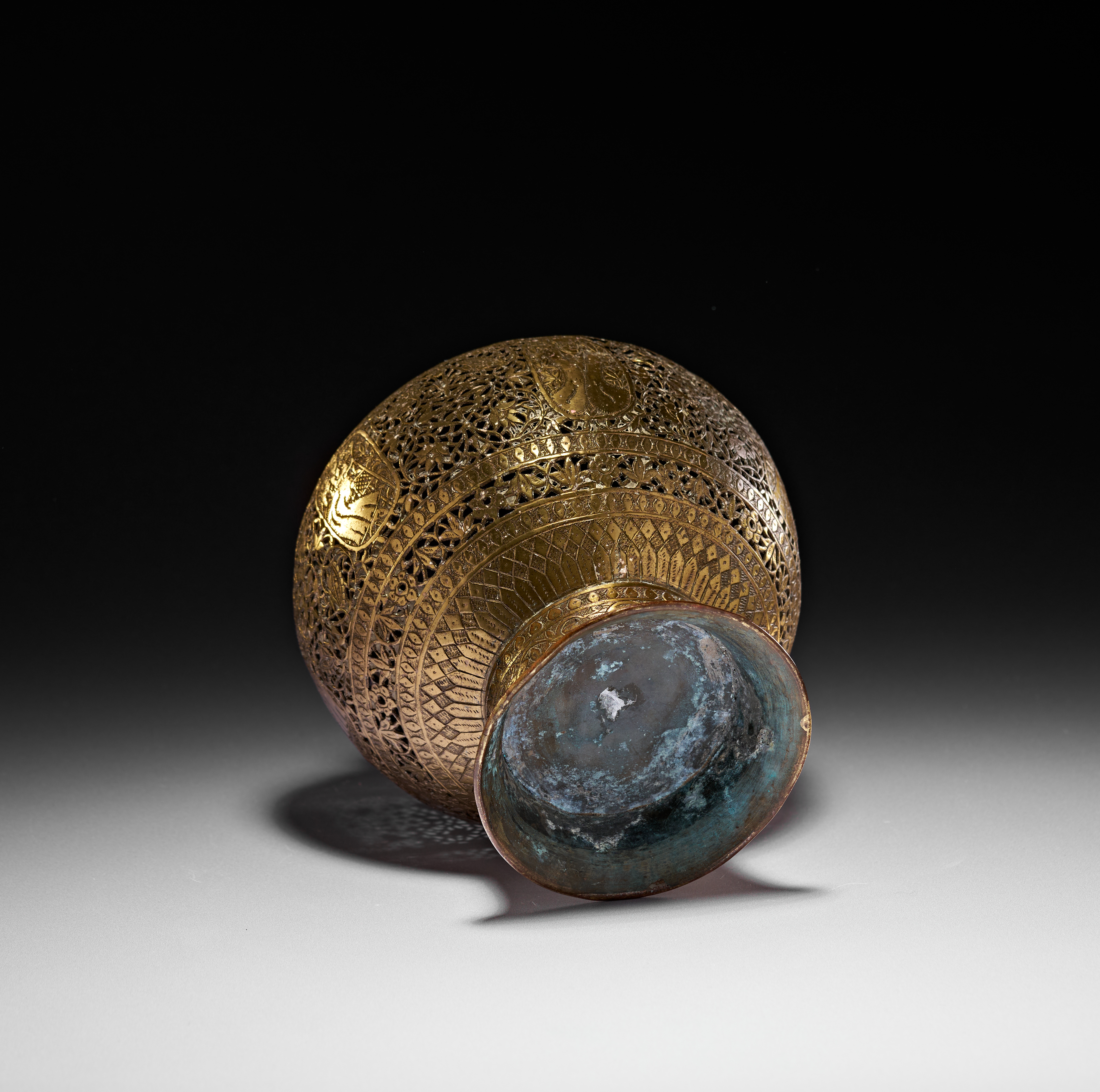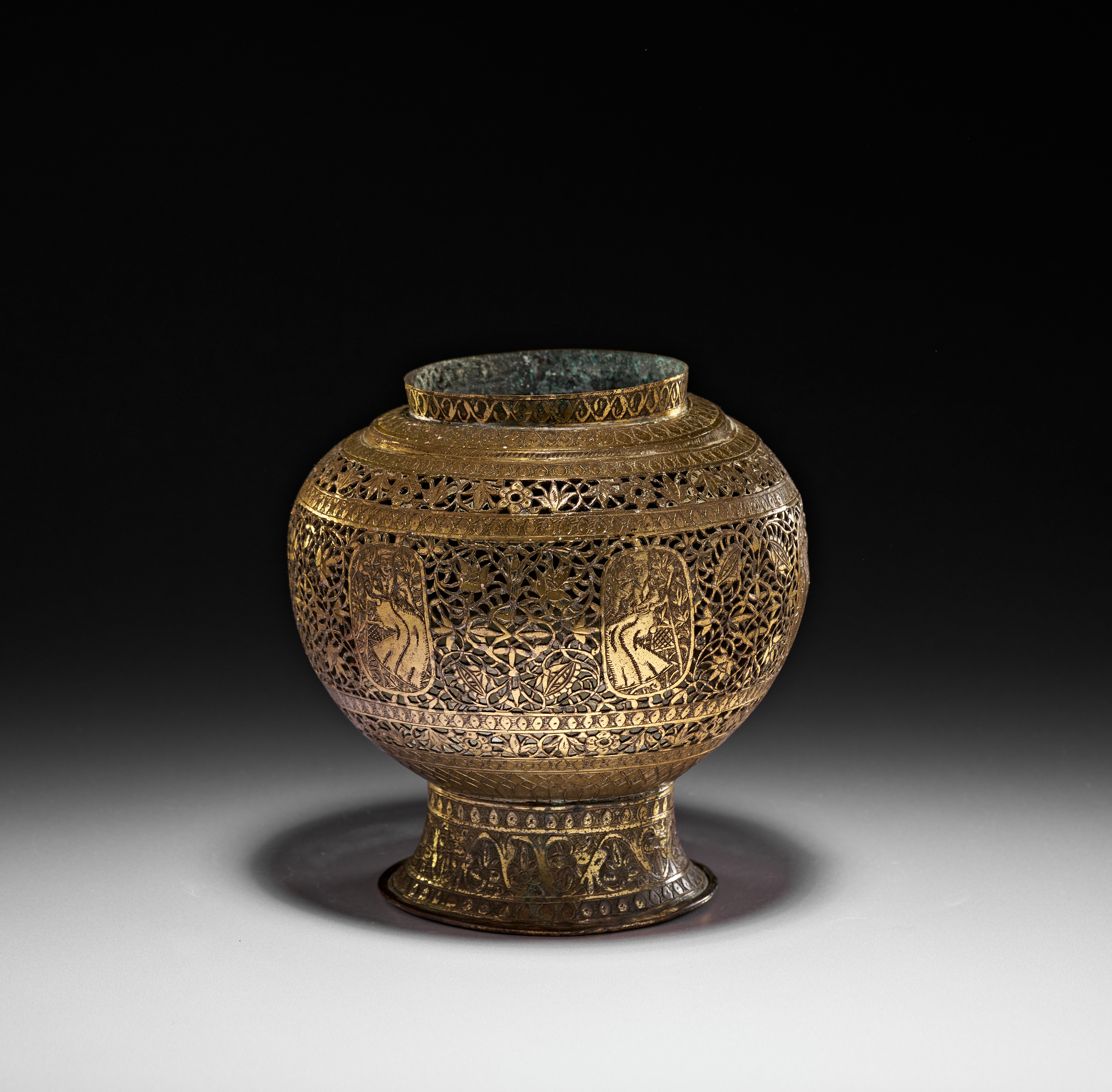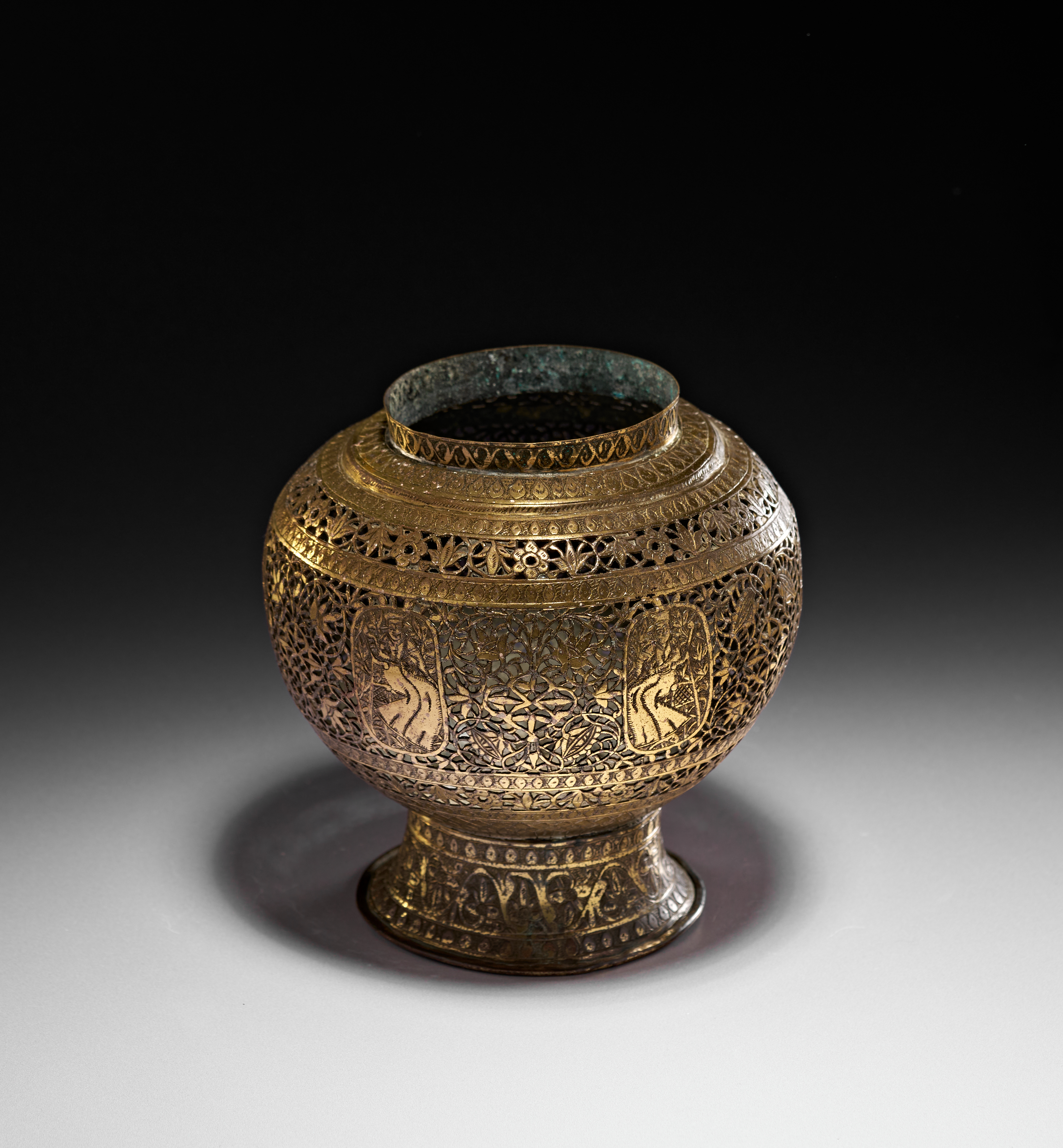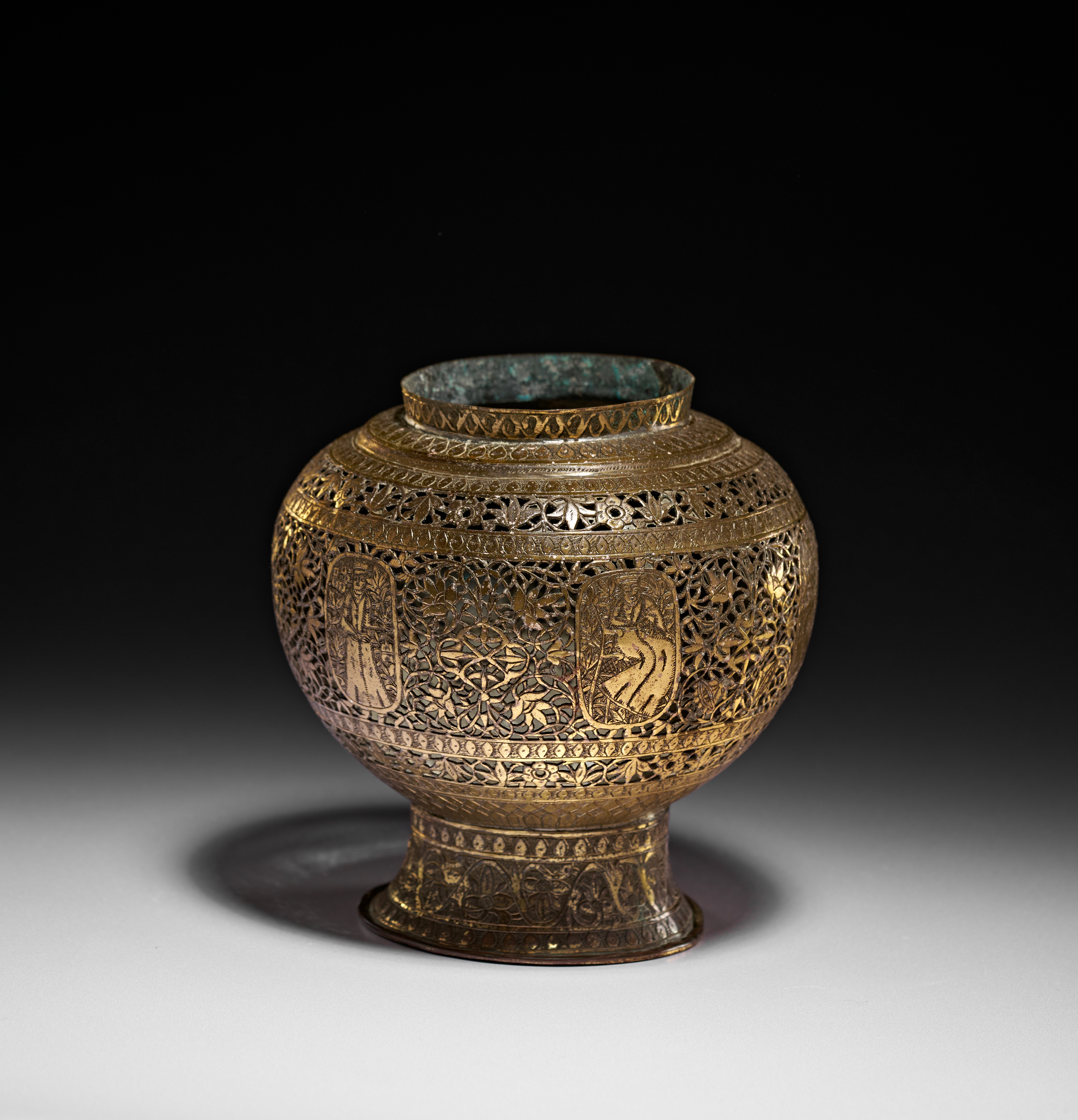 A QAJAR PIERCED BRASS VASE, PERSIA, 19TH CENTURY