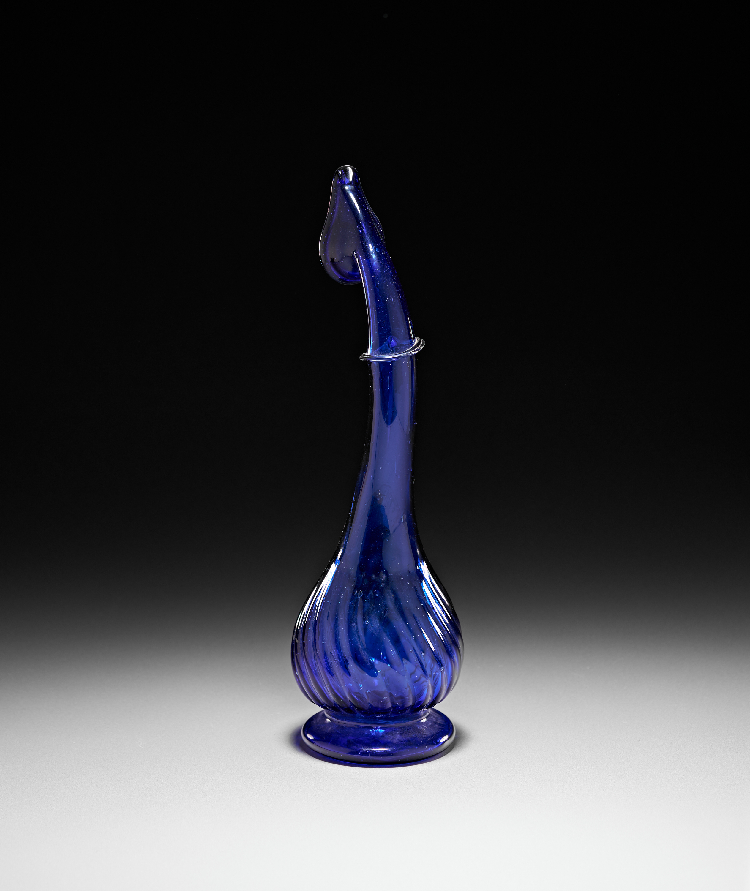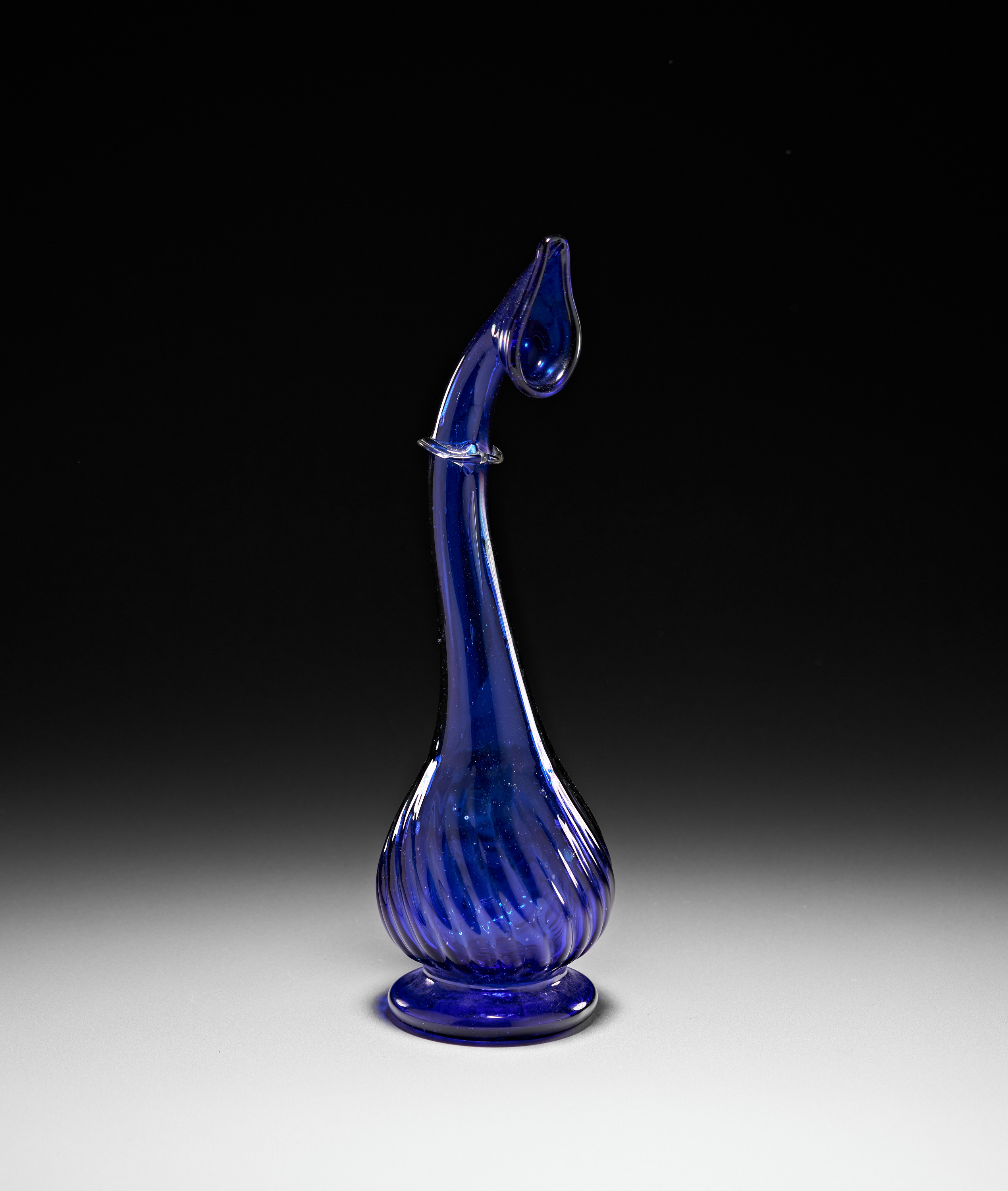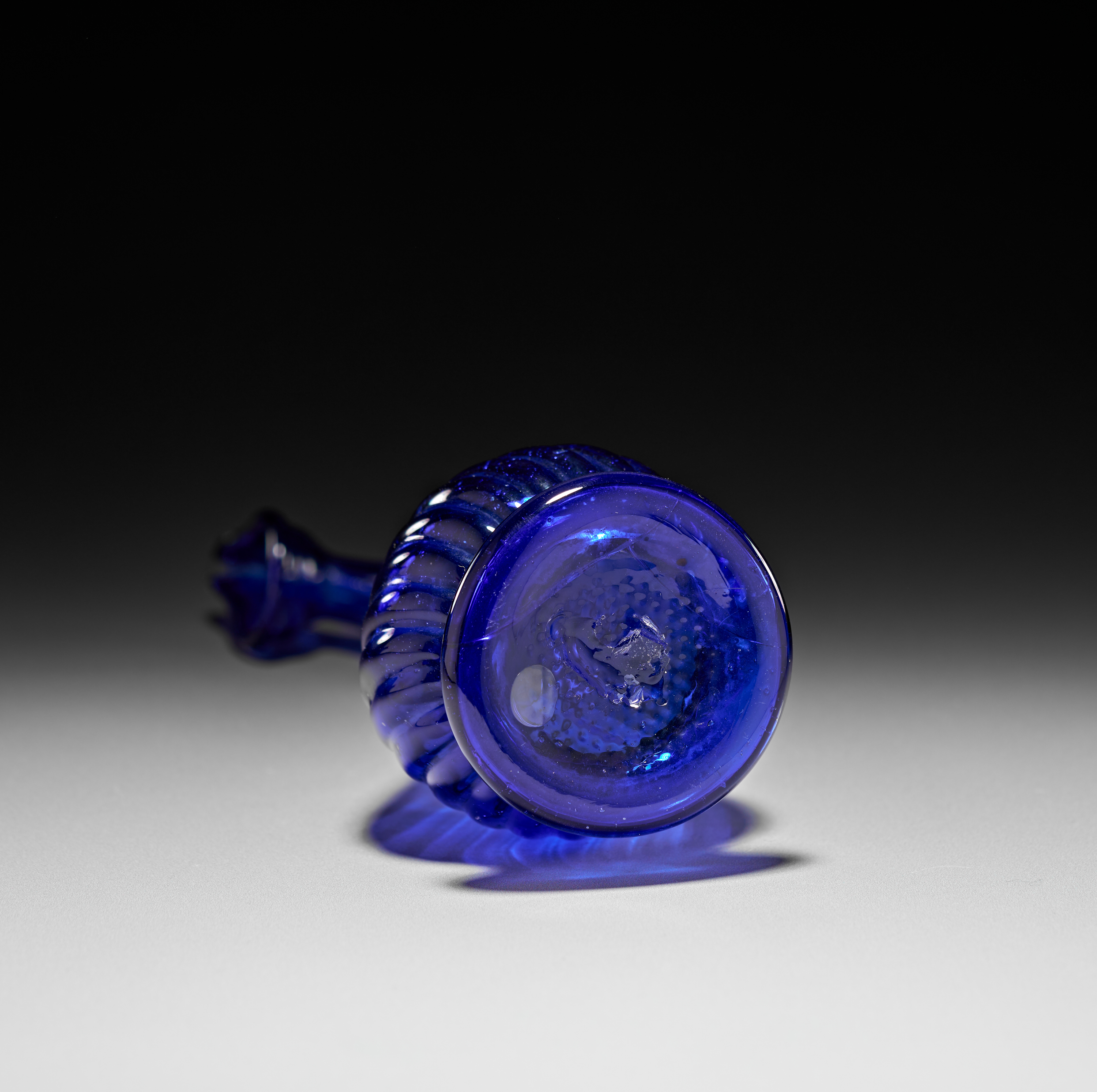 A BLUE GLASS PERSIAN "TEAR CATCHER" VASE/BOTTLE, QAJAR, 19TH CENTURY