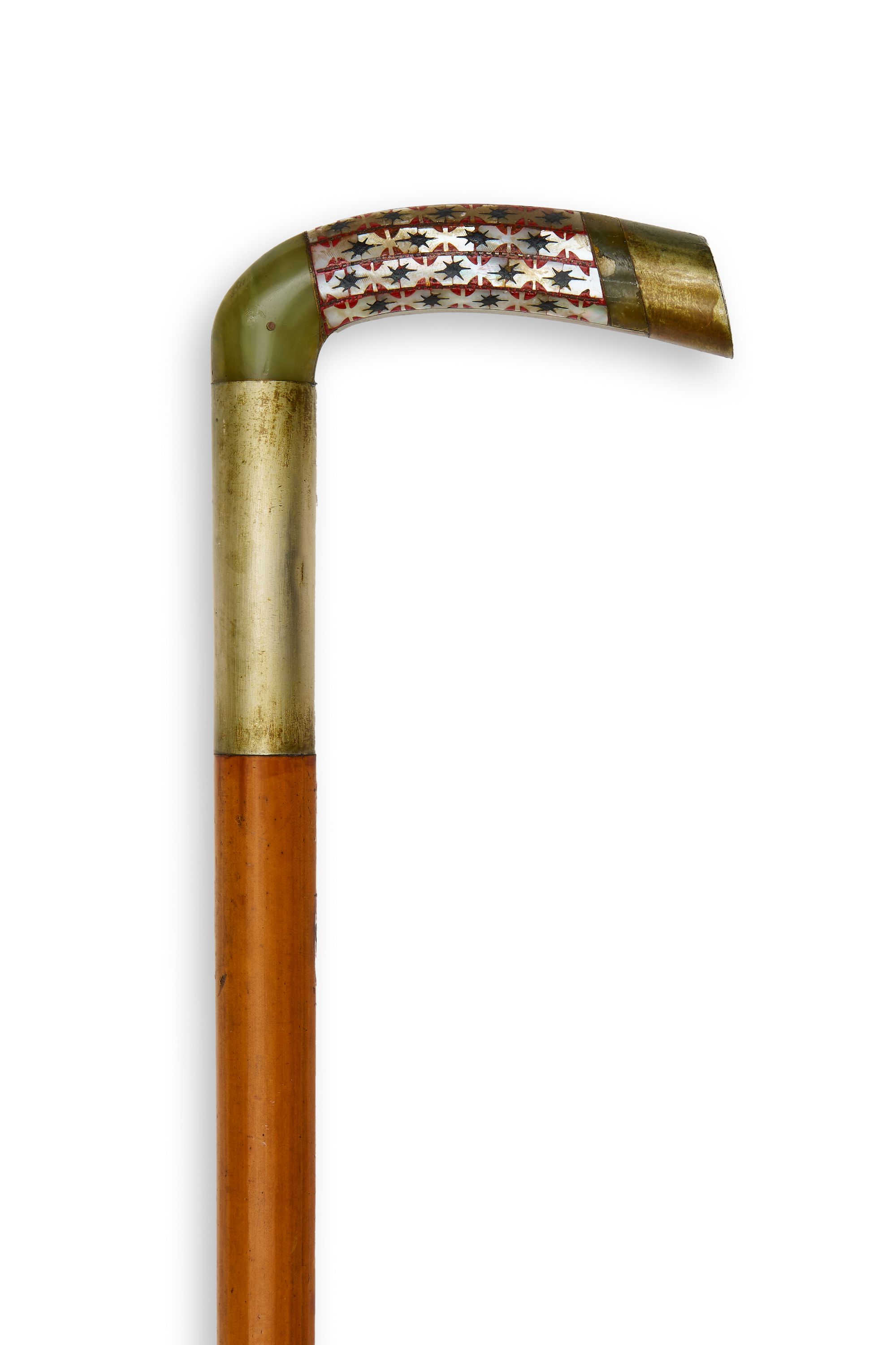 A JADE INLAID HANDLE WOODEN SWAGGER WALKING STICK, POSSIBLY INDIA, LATE 19TH – EARLY 20TH CENTURY