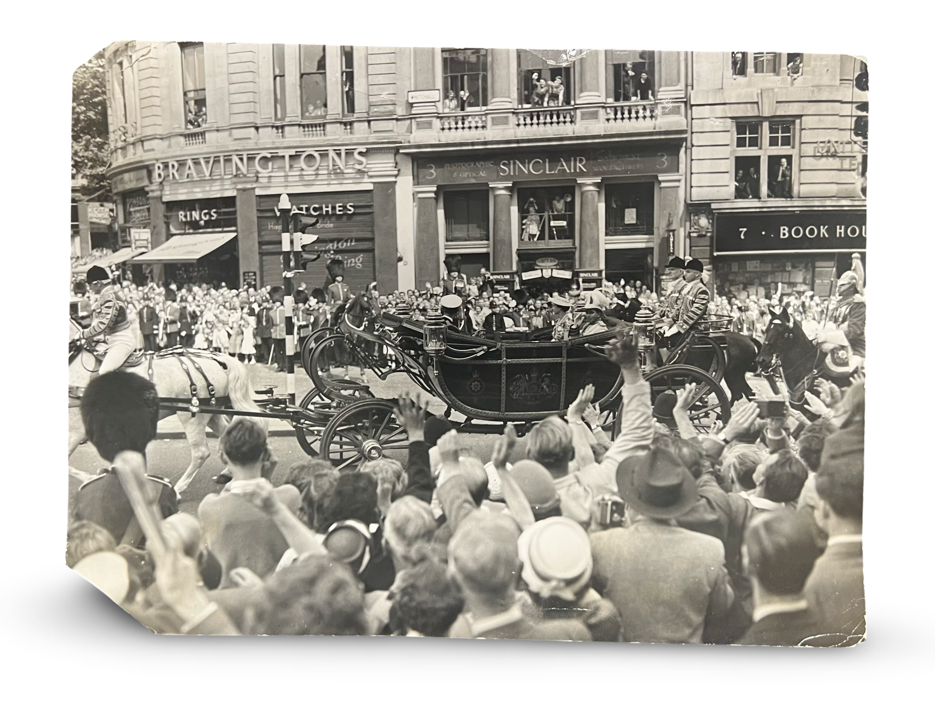 A BLACK AND WHITE PHOTOGRAPH OF KING FAISAL II OF IRAQ WITH QUEEN ELIZABETH II, 20TH CENTURY