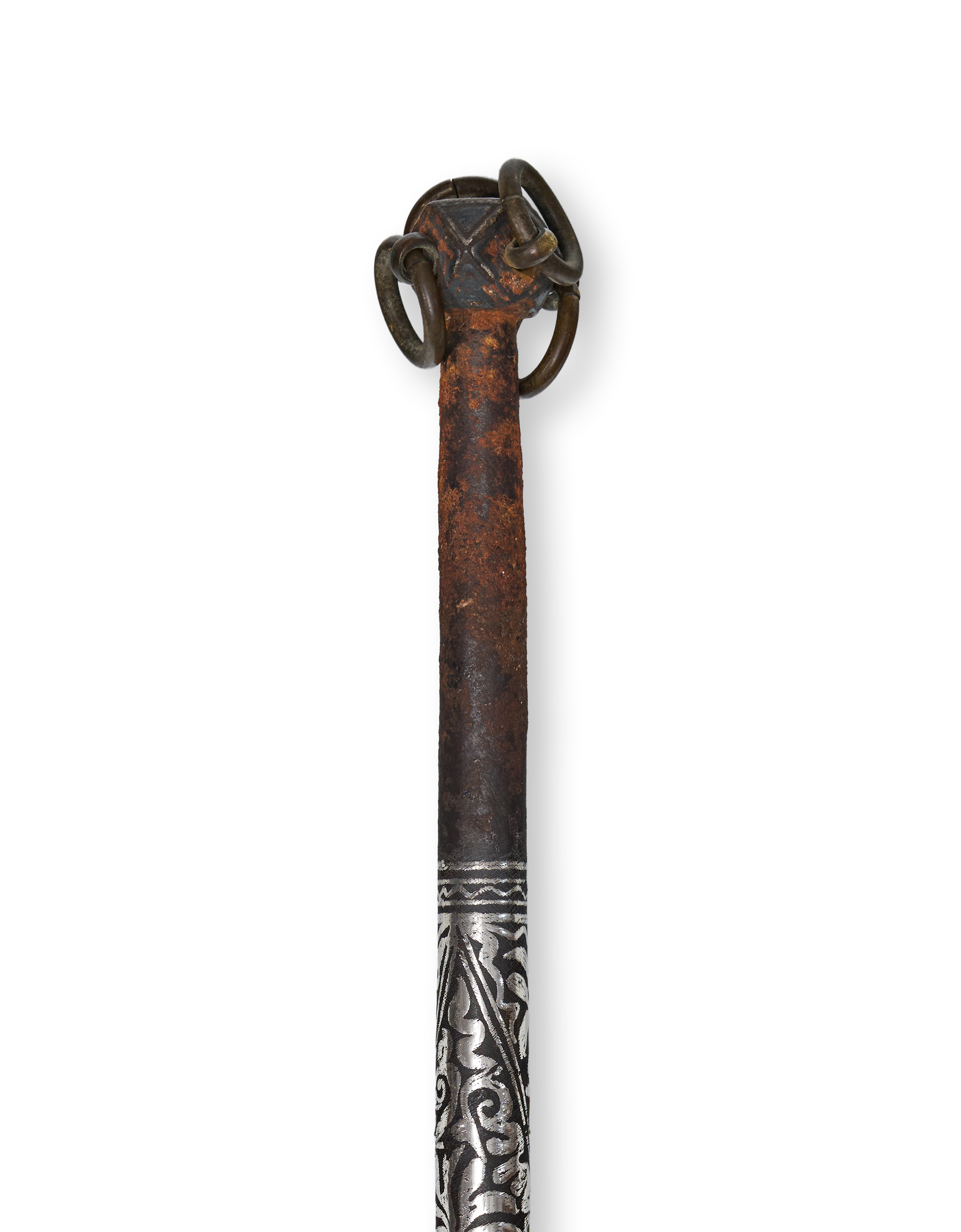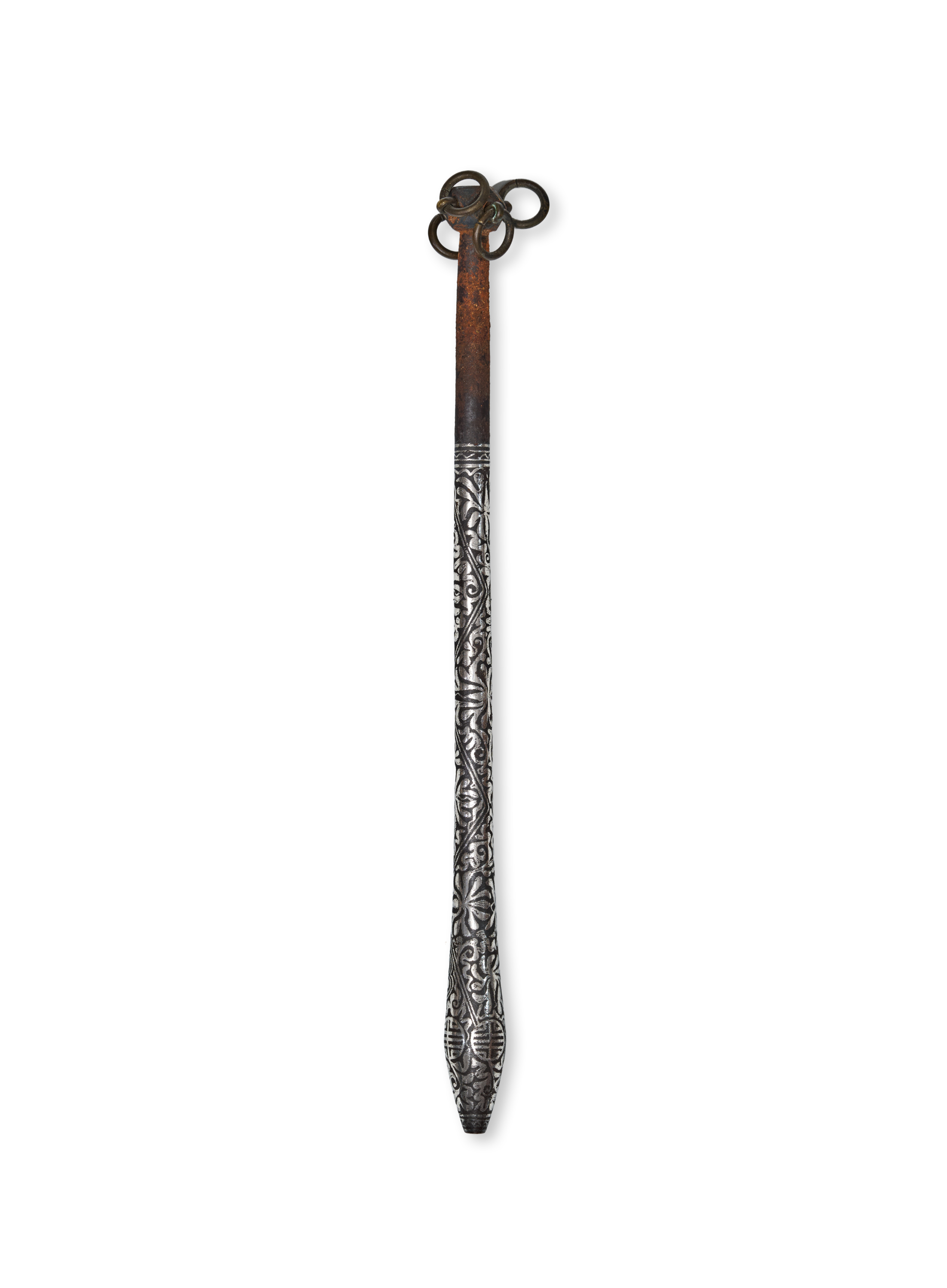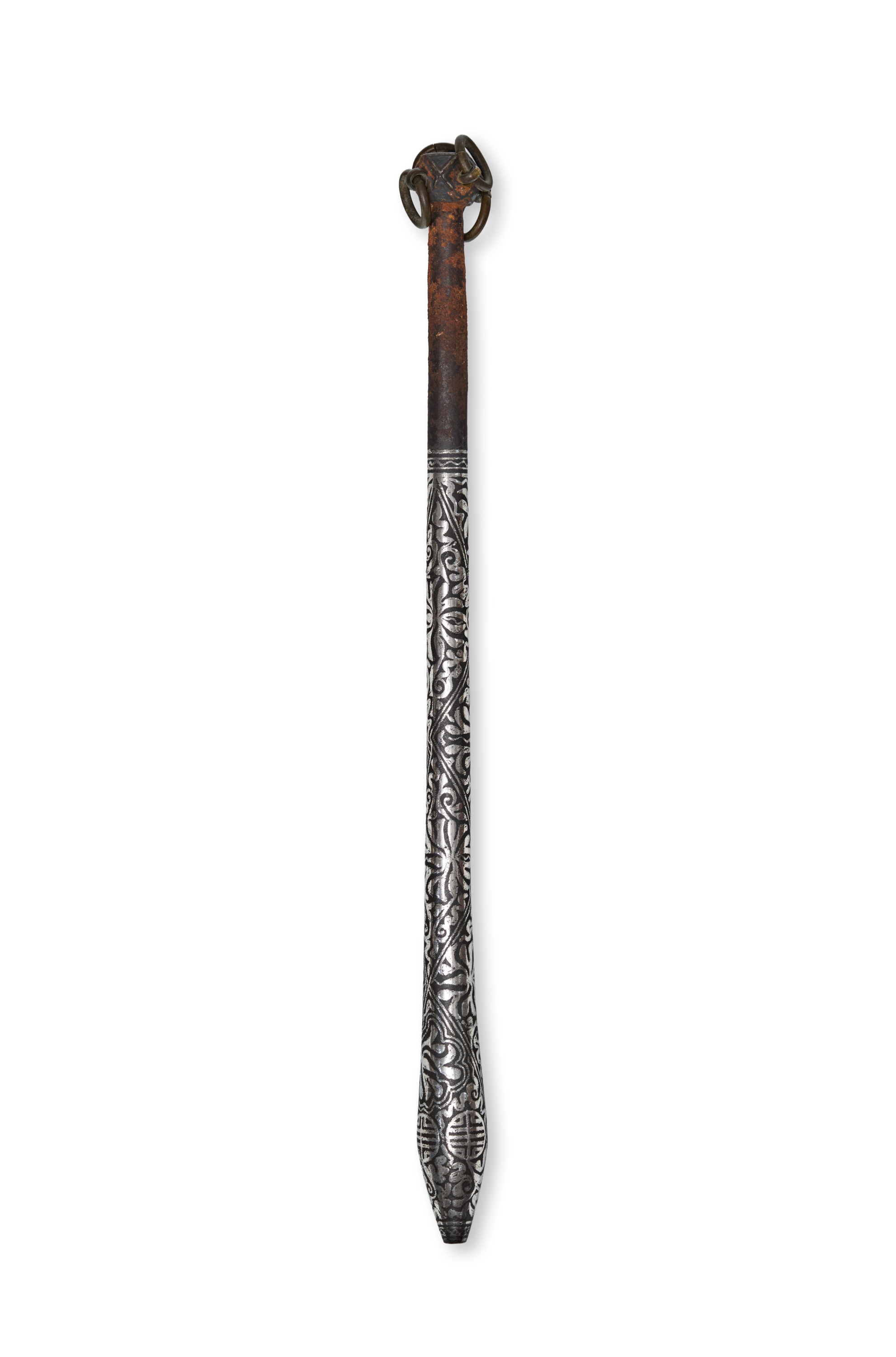A SILVER INLAID BRONZE MACE, TIBETAN OR KOREAN, 19TH CENTURY