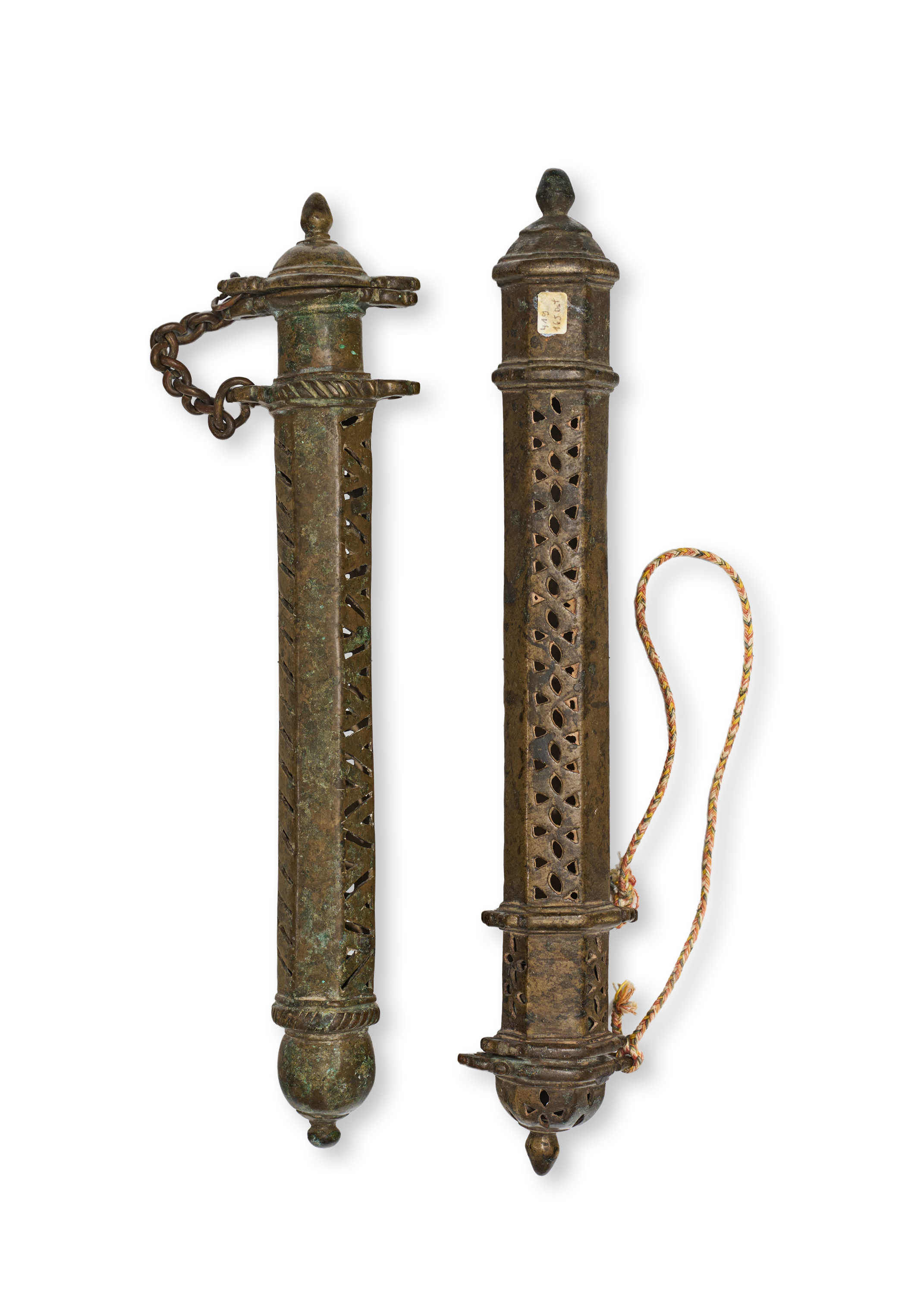 TWO JALI CUT BRASS LETTERS/SCROLL HOLDER, ASIA, 19TH – 20TH CENTURY