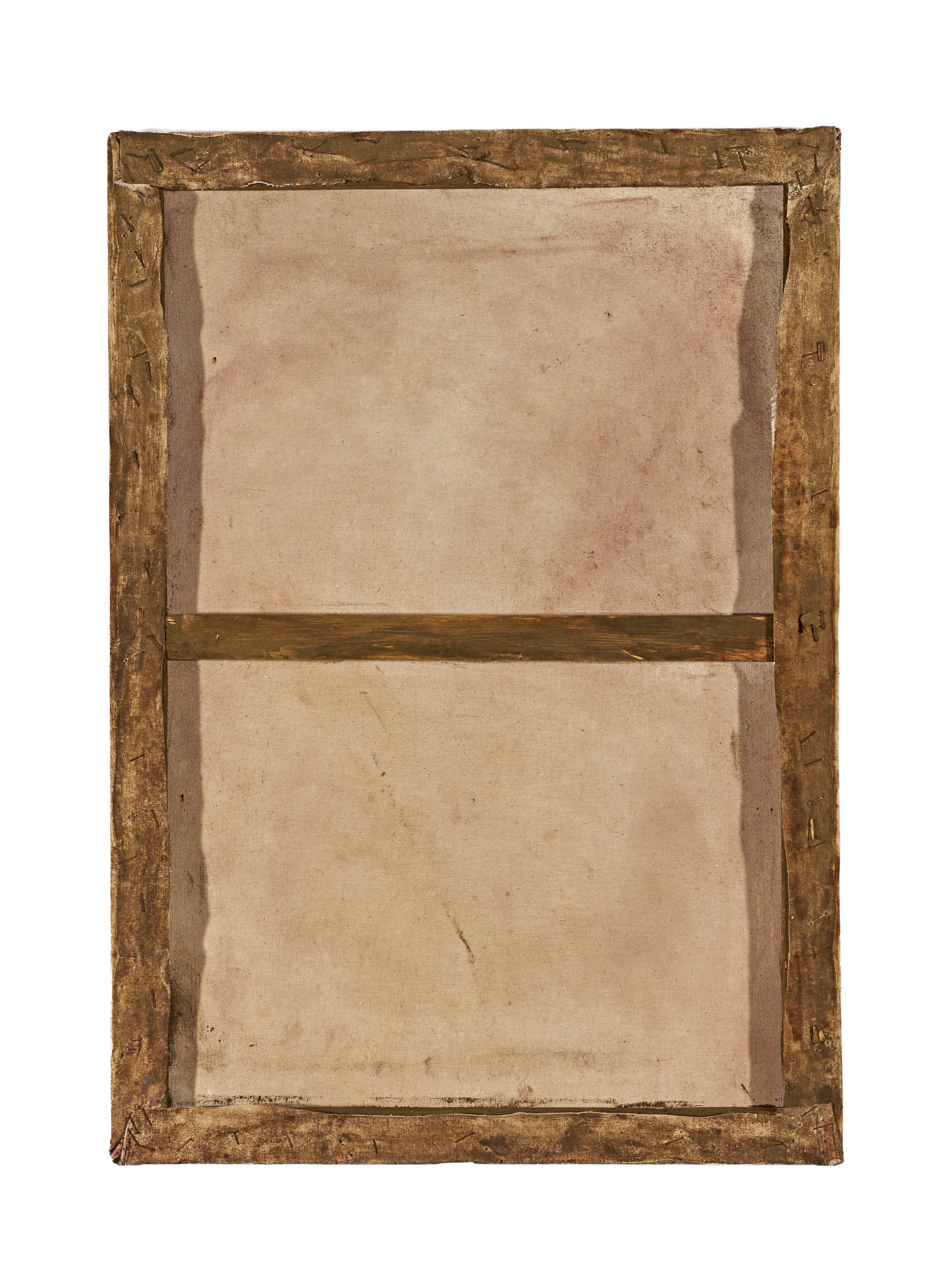 The painting remains on its original canvas, secured to an early wooden stretcher. The reverse shows expected age-related wear. The surface retains strong colour with scattered areas of craquelure and minor toning, consistent with age.