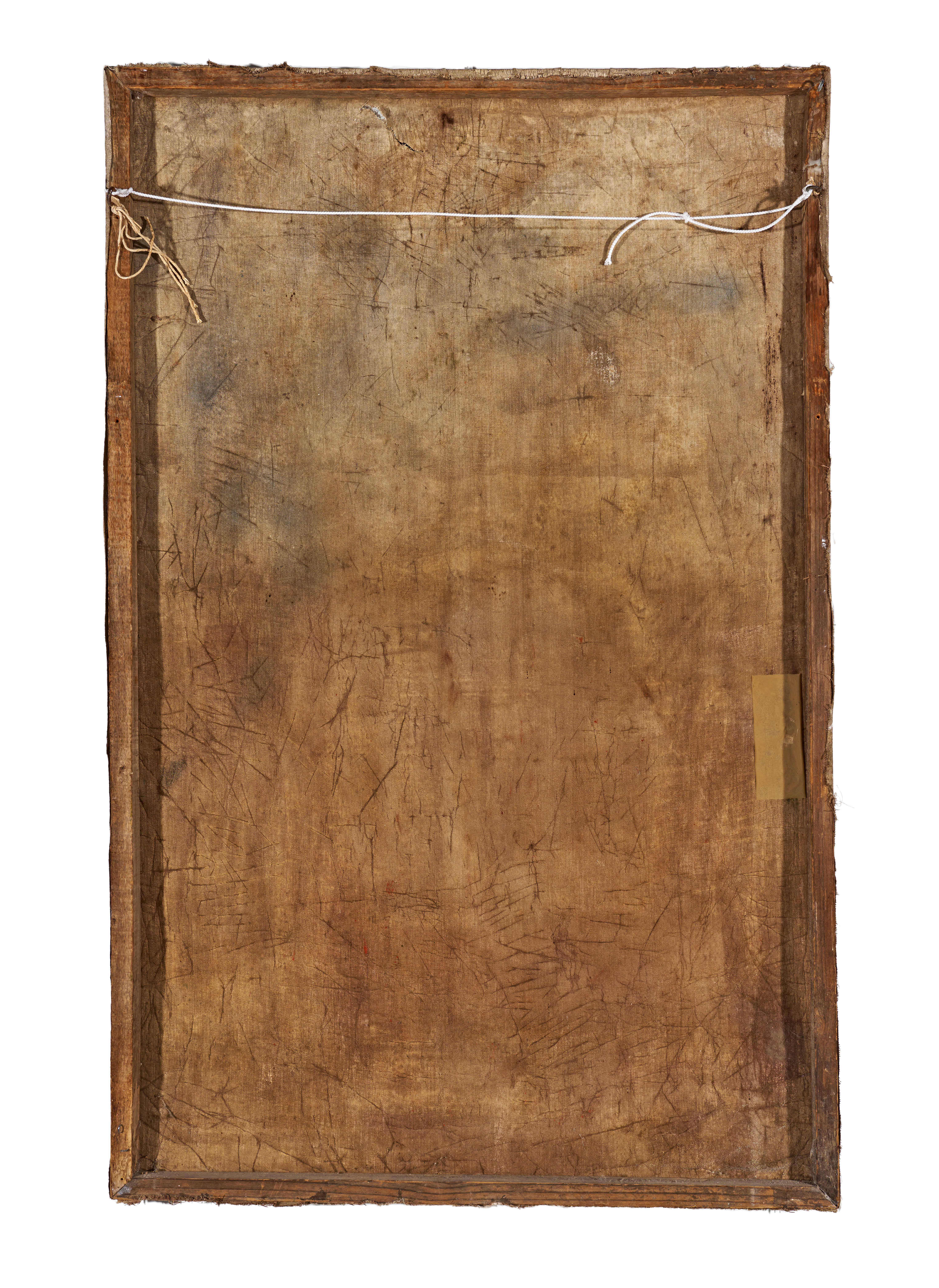 The canvas shows areas of craquelure, surface wear, minor abrasions, and toning consistent with its age. The reverse retains the original stretcher, displaying expected signs of handling and time.