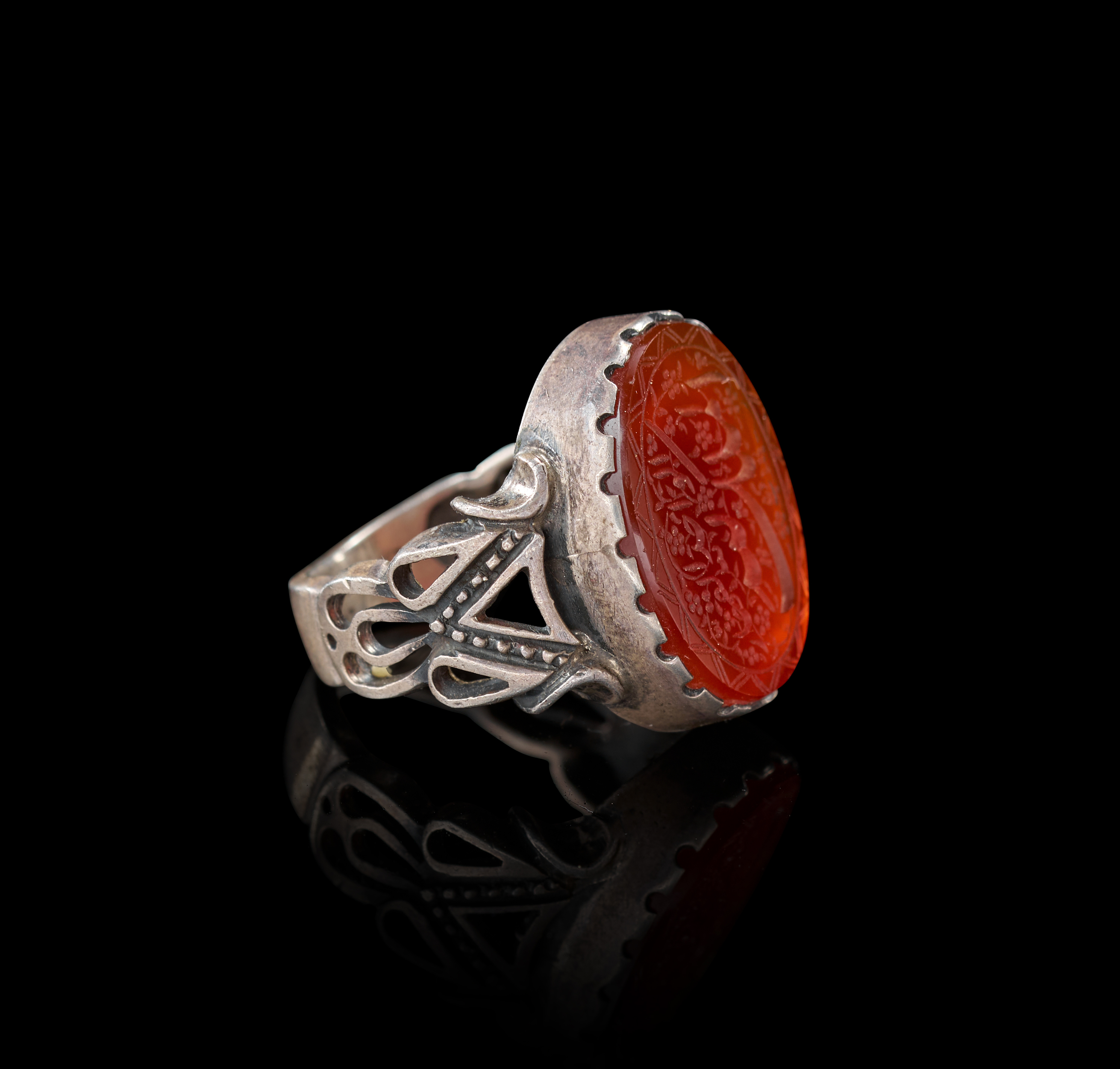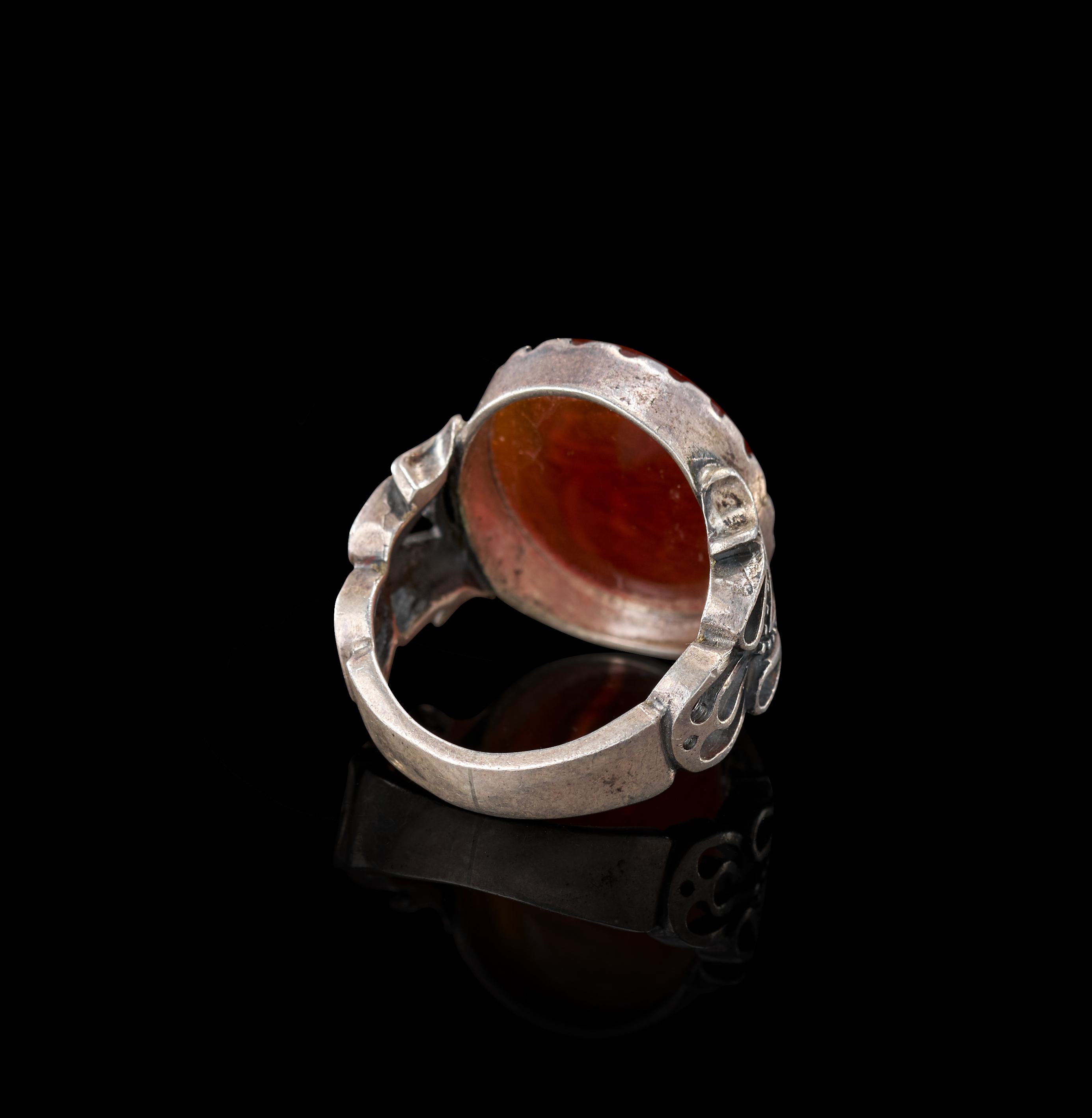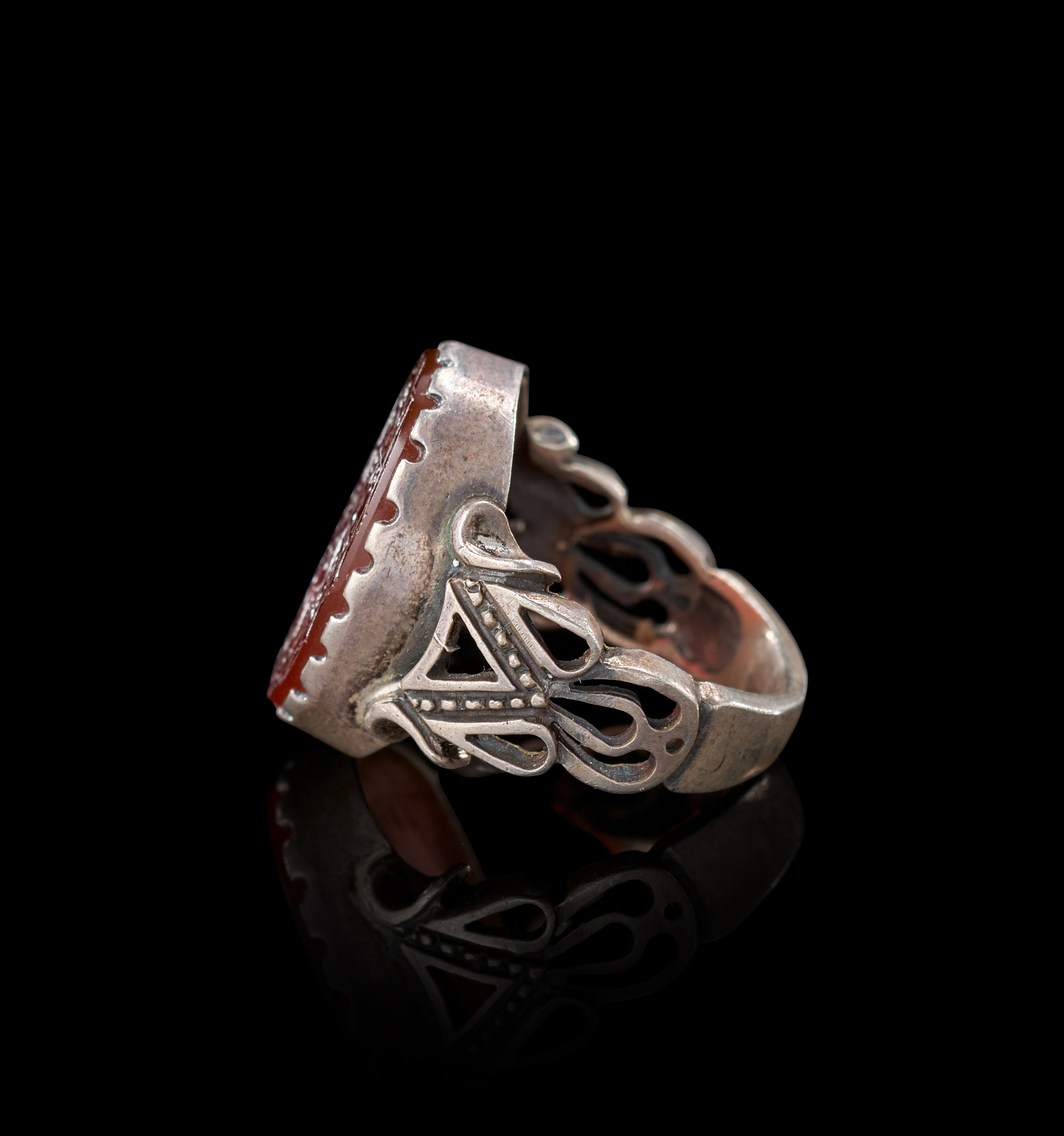 AN INSCRIBED ISLAMIC AGATE IN A SILVER RING