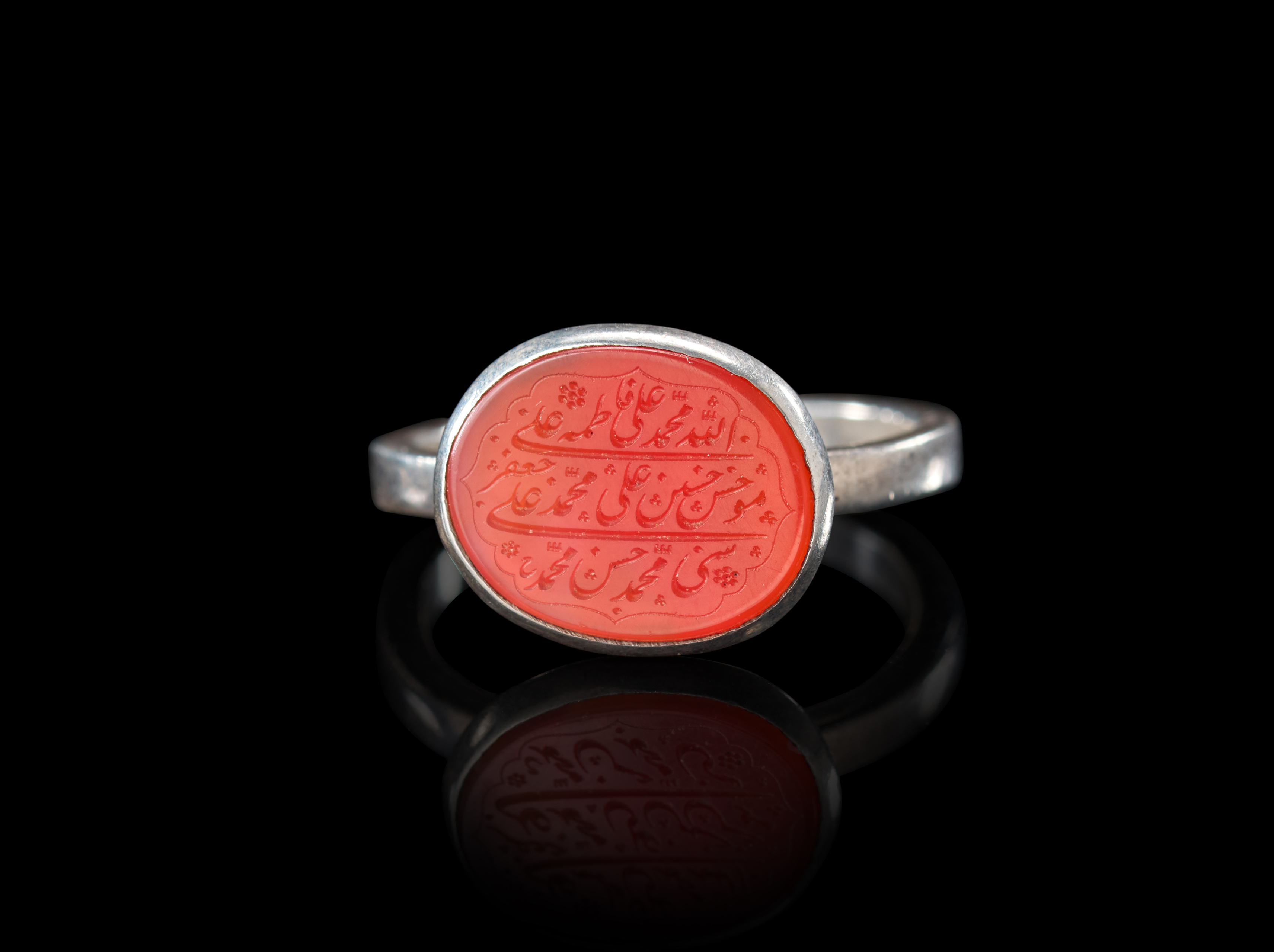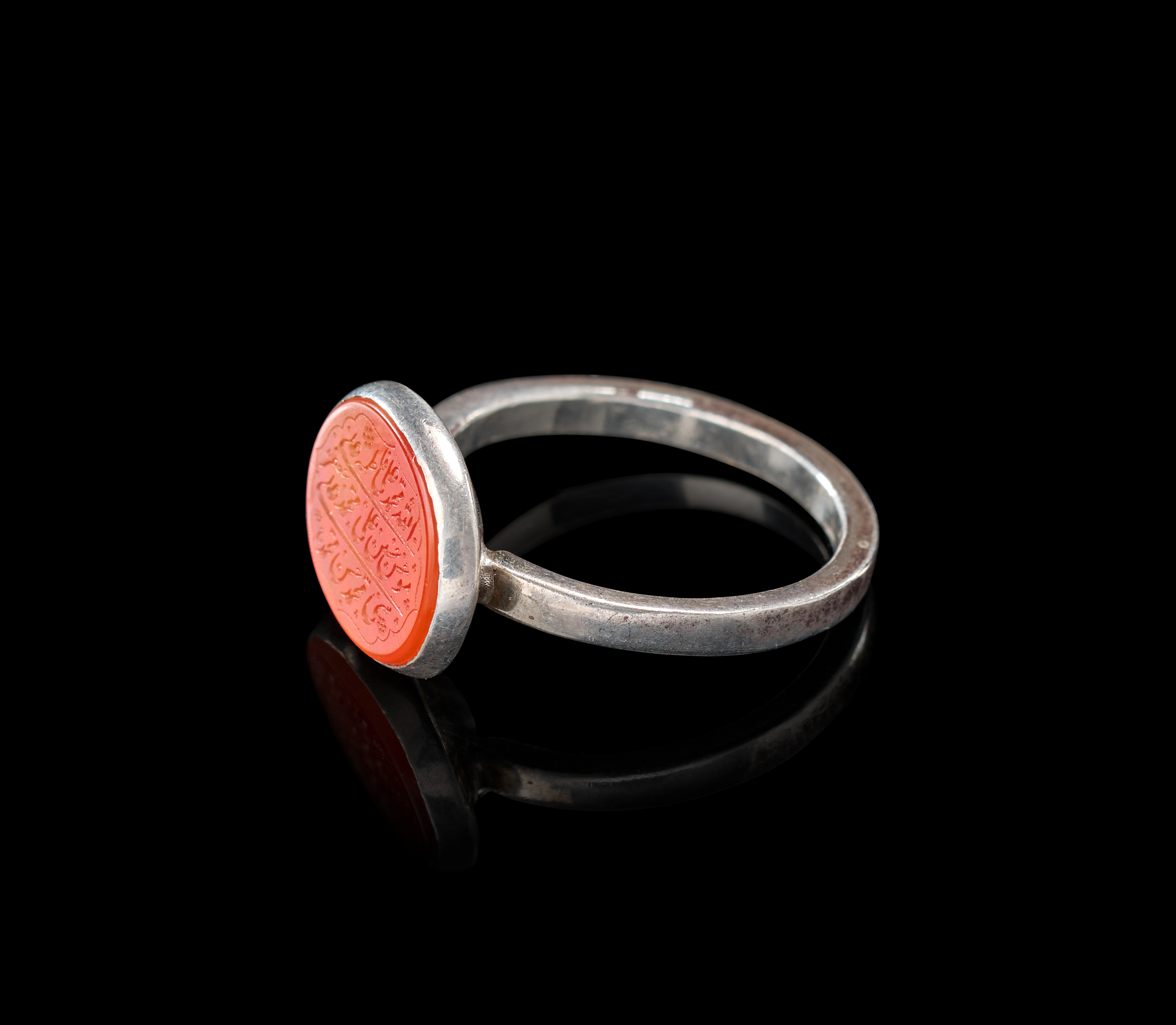 AN INSCRIBED ISLAMIC AGATE IN A SILVER RING