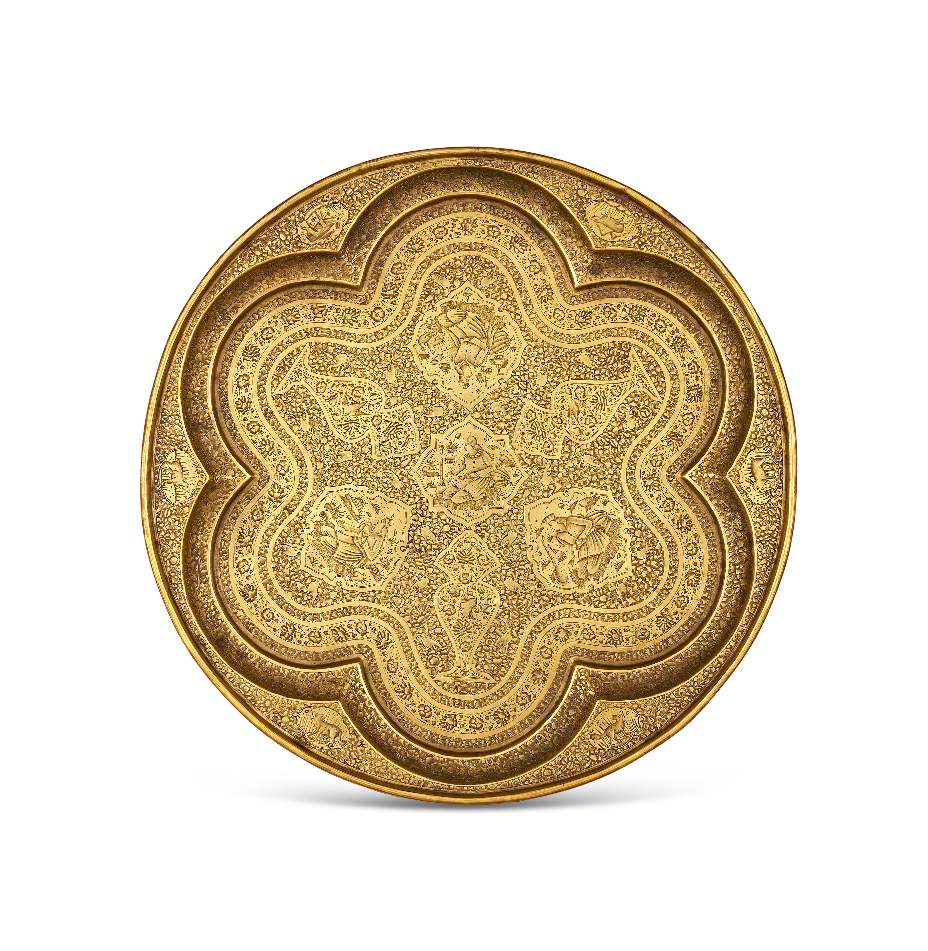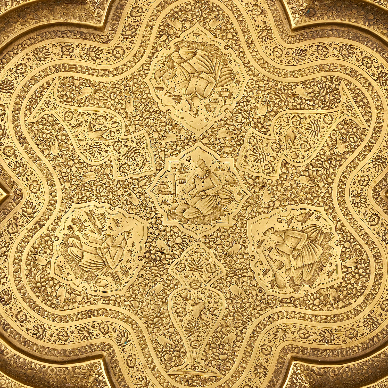 A PERSIAN ENGRAVED BRASS TRAY, 19TH – 20TH CENTURY