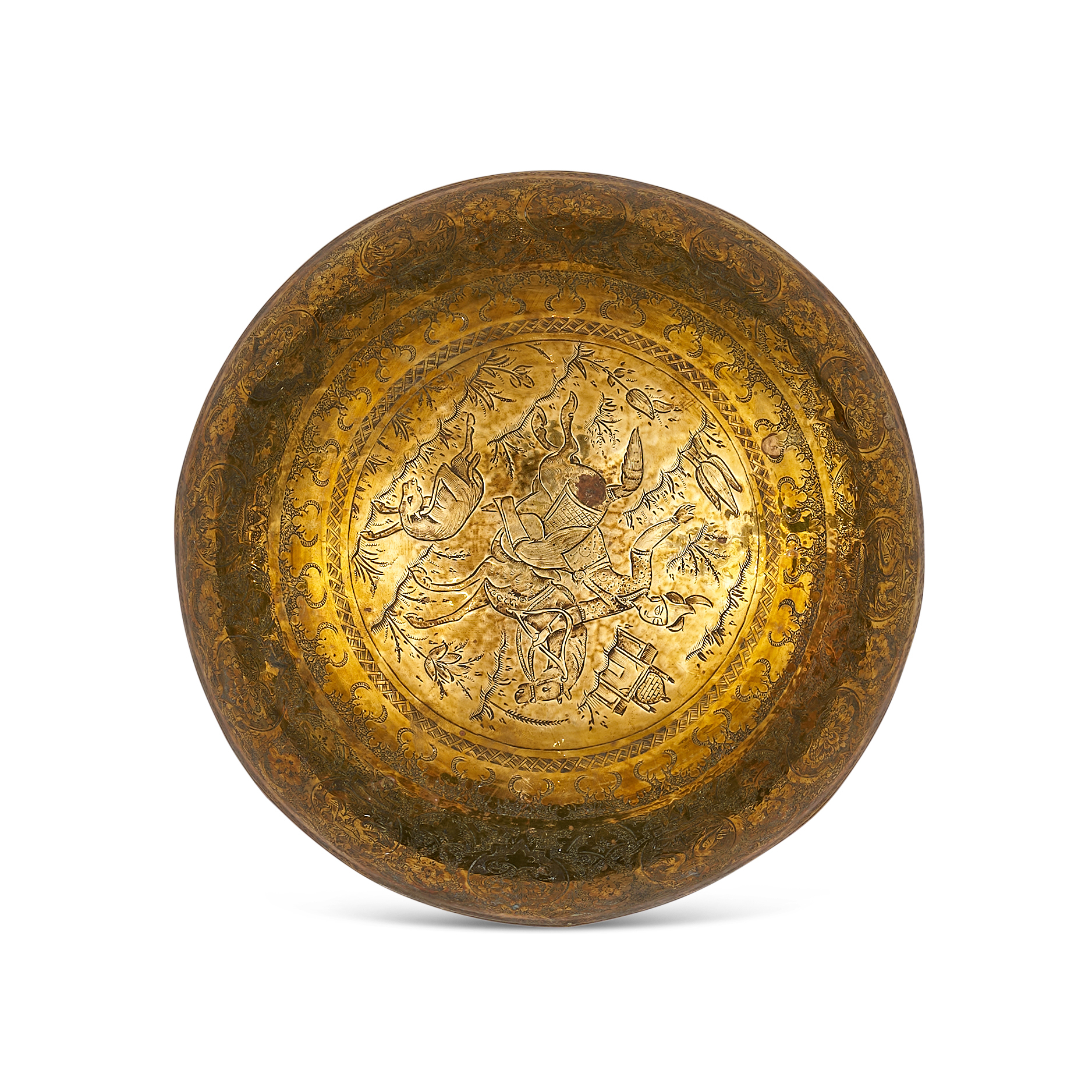 A PERSIAN BRASS ENGRAVED BOWL, 19TH – 20TH CENTURY