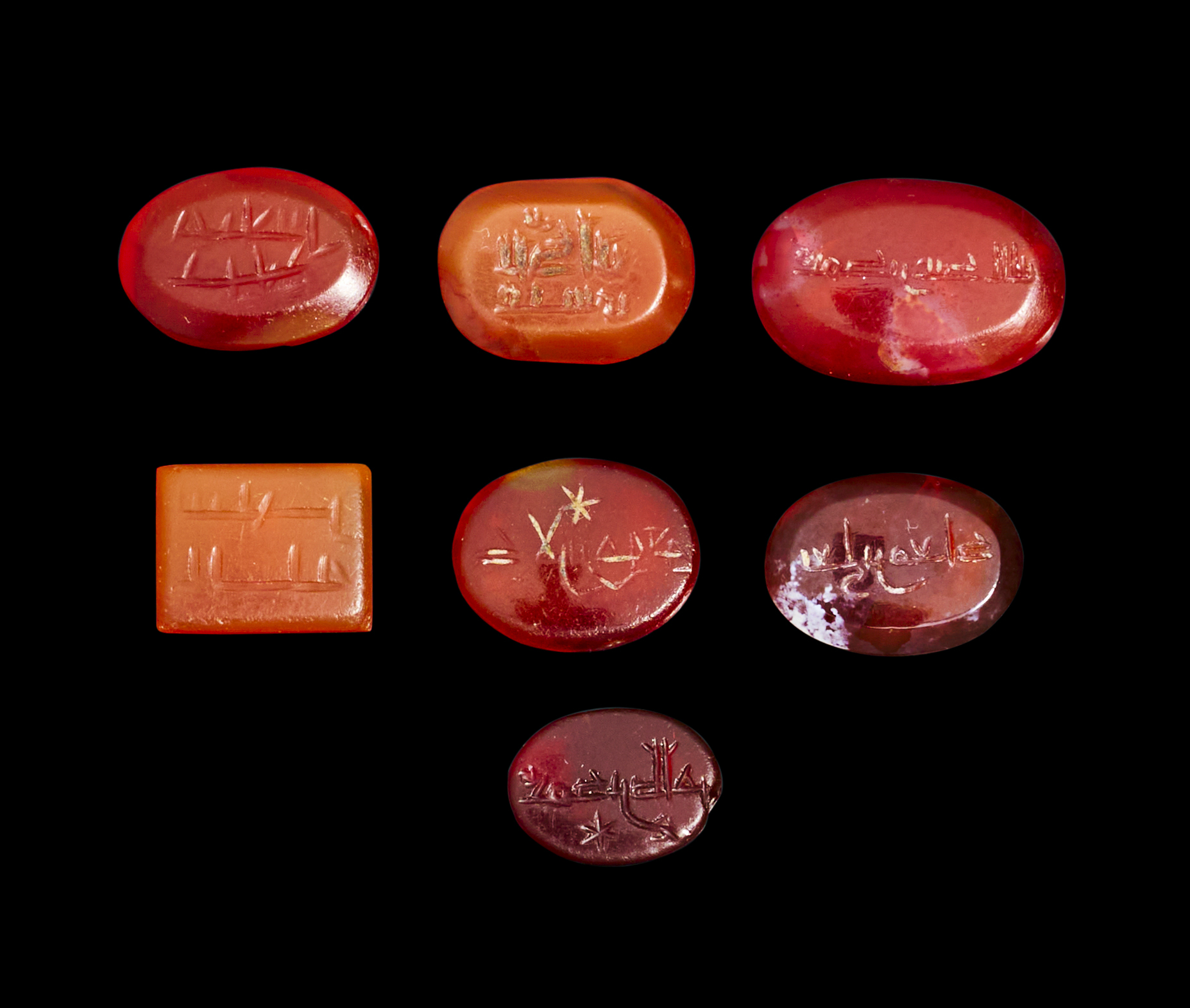 SEVEN EARLY ISLAMIC AGATE SEALS OR RING STONES, 9TH – 12TH CENTURY