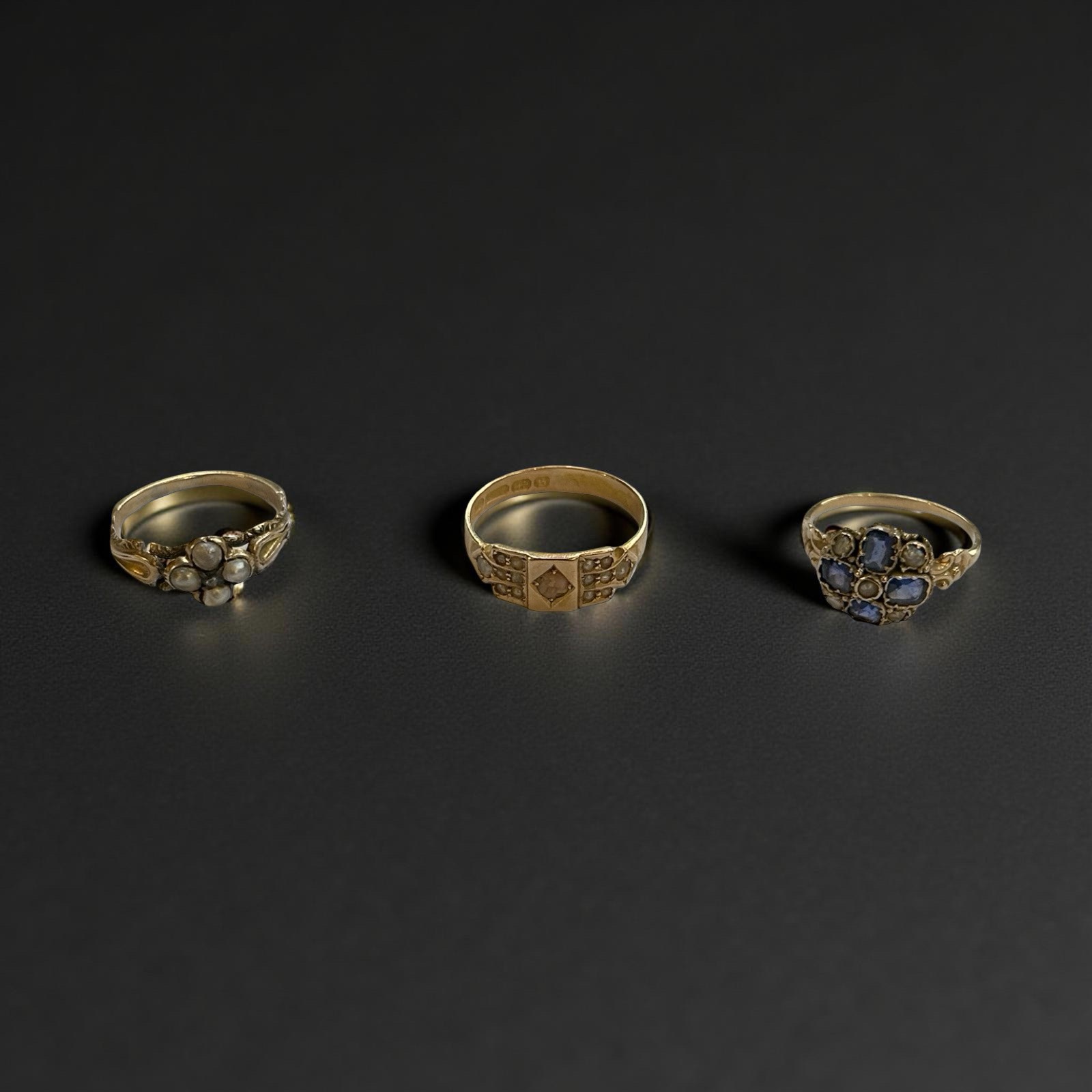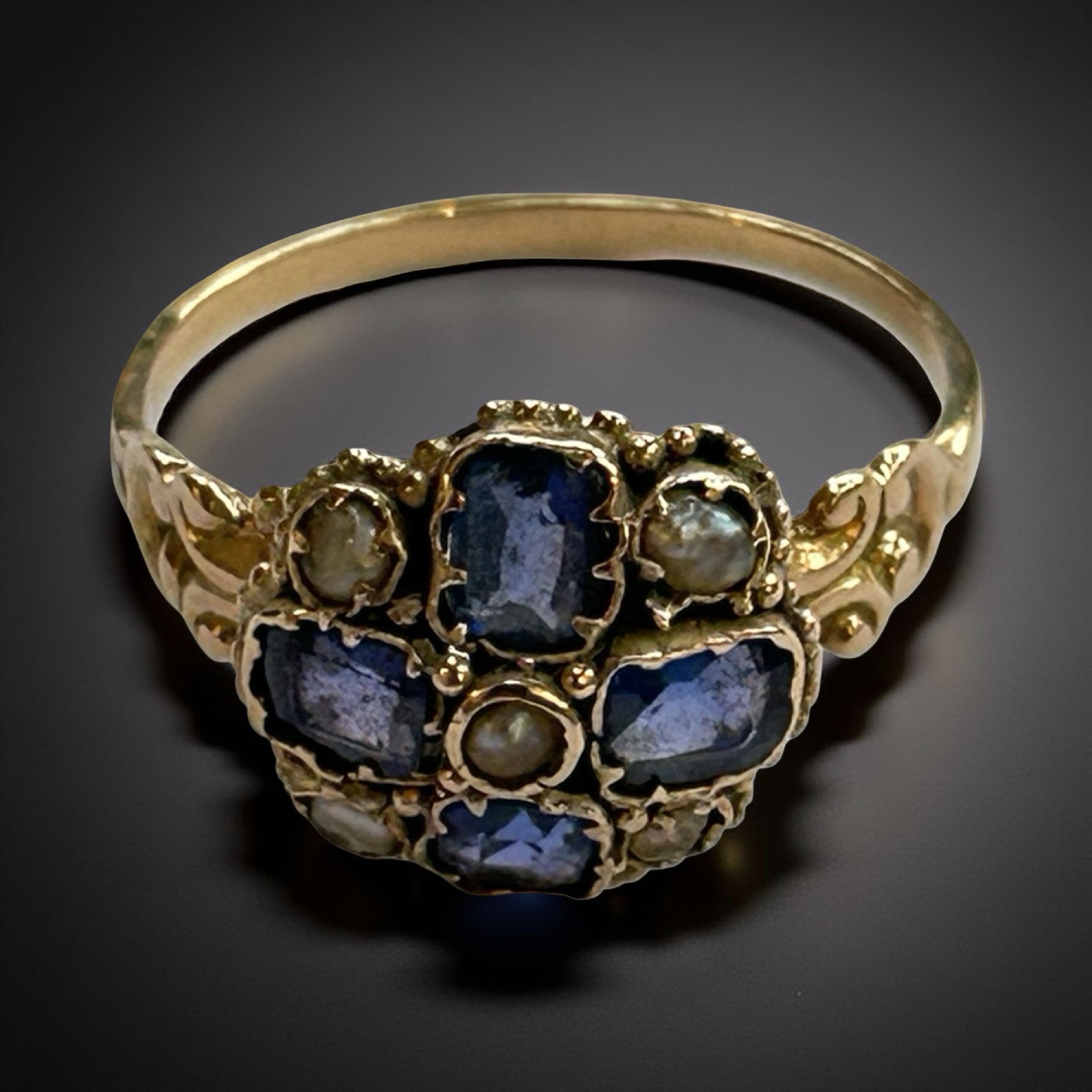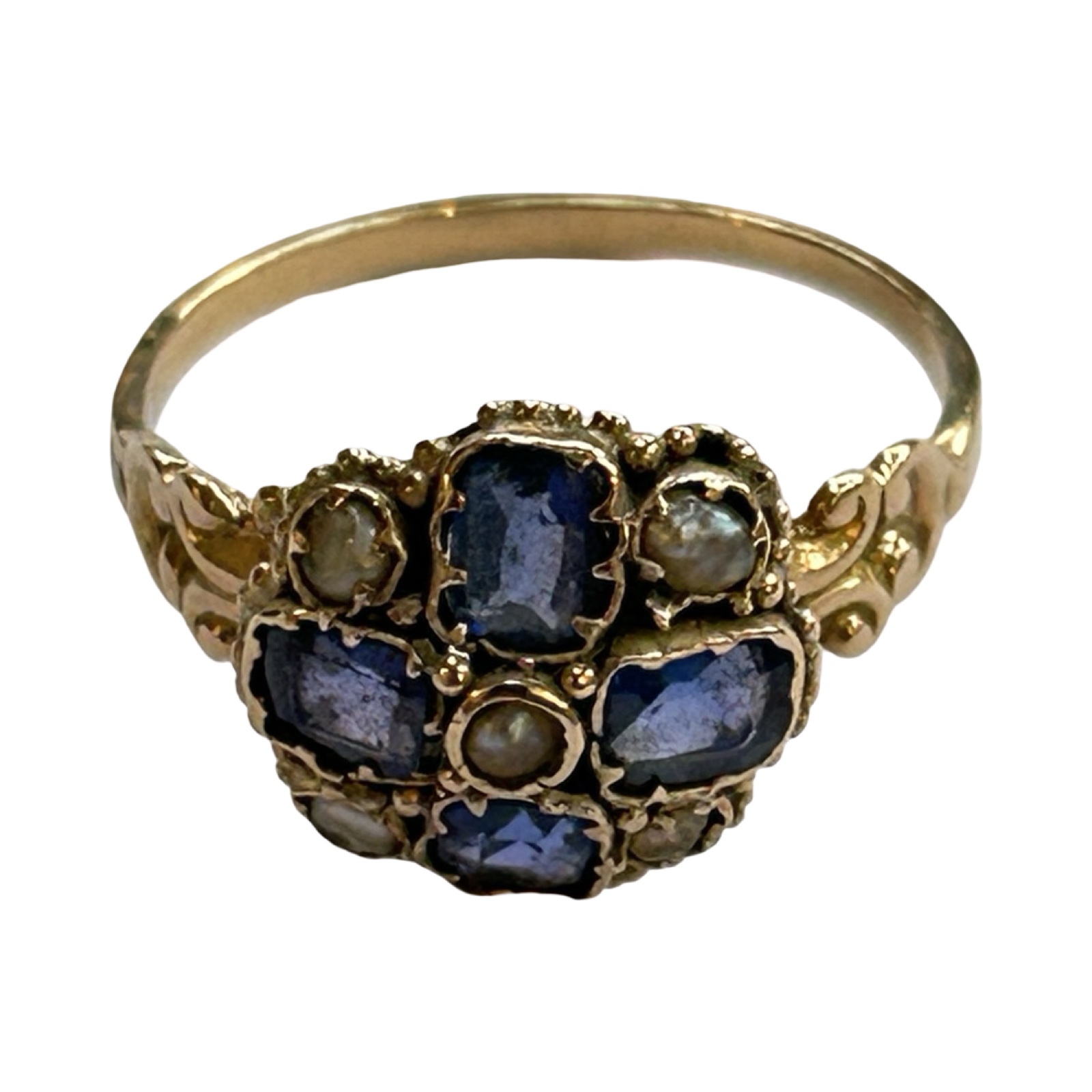 1. Sapphire and pearl, size L, 1.74g approx. Condition good