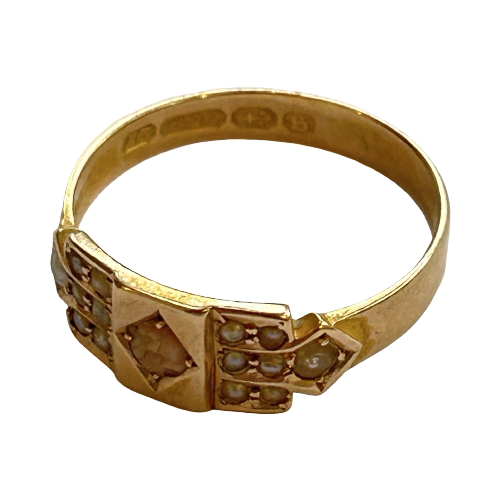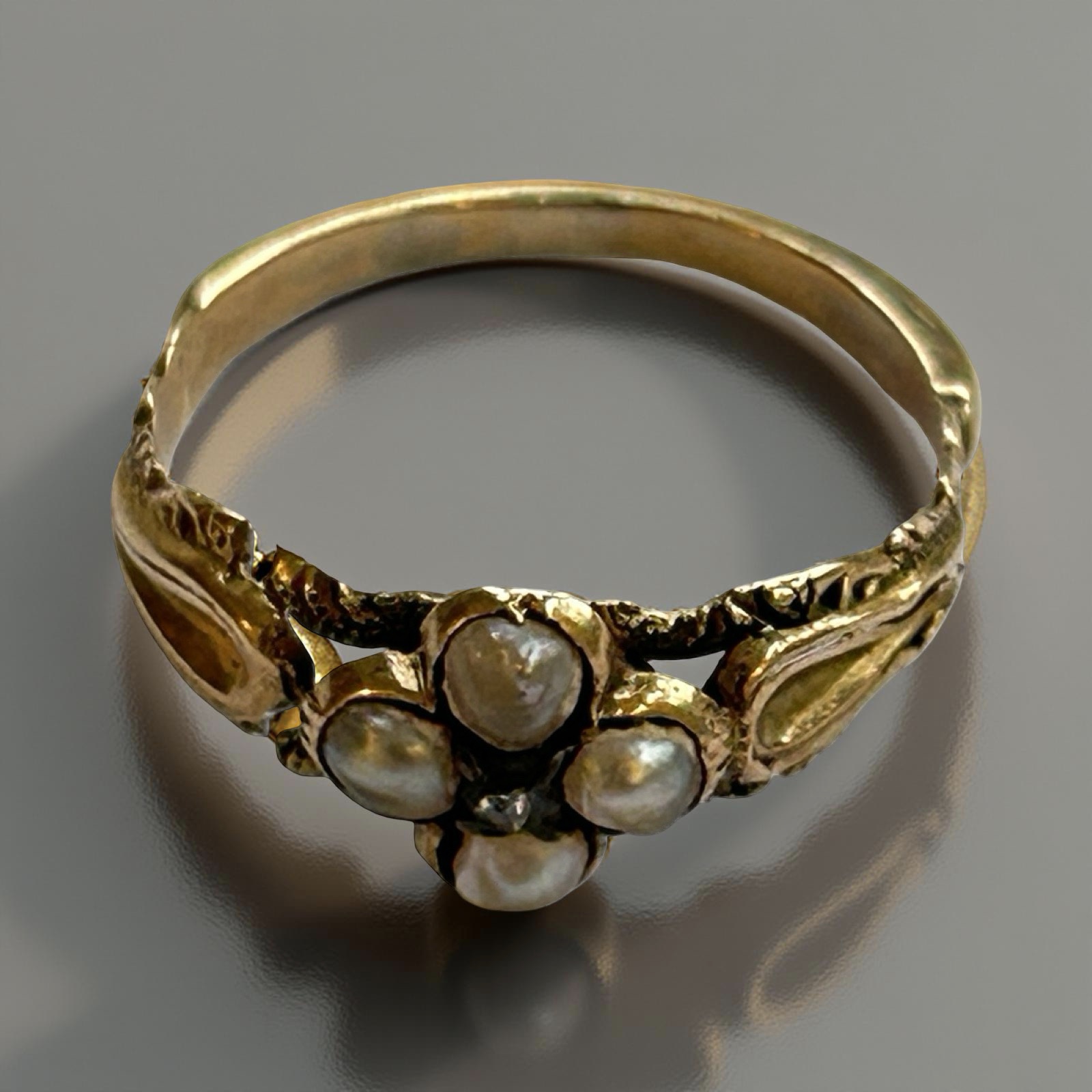 2. Rose cut diamond and pearl ring, size M, 1.88g approx. Shank is broken at shoulder
