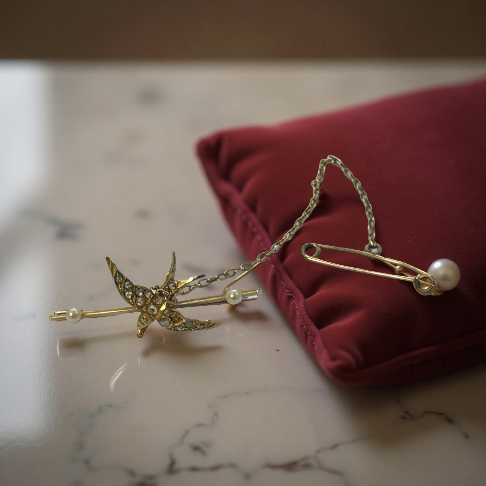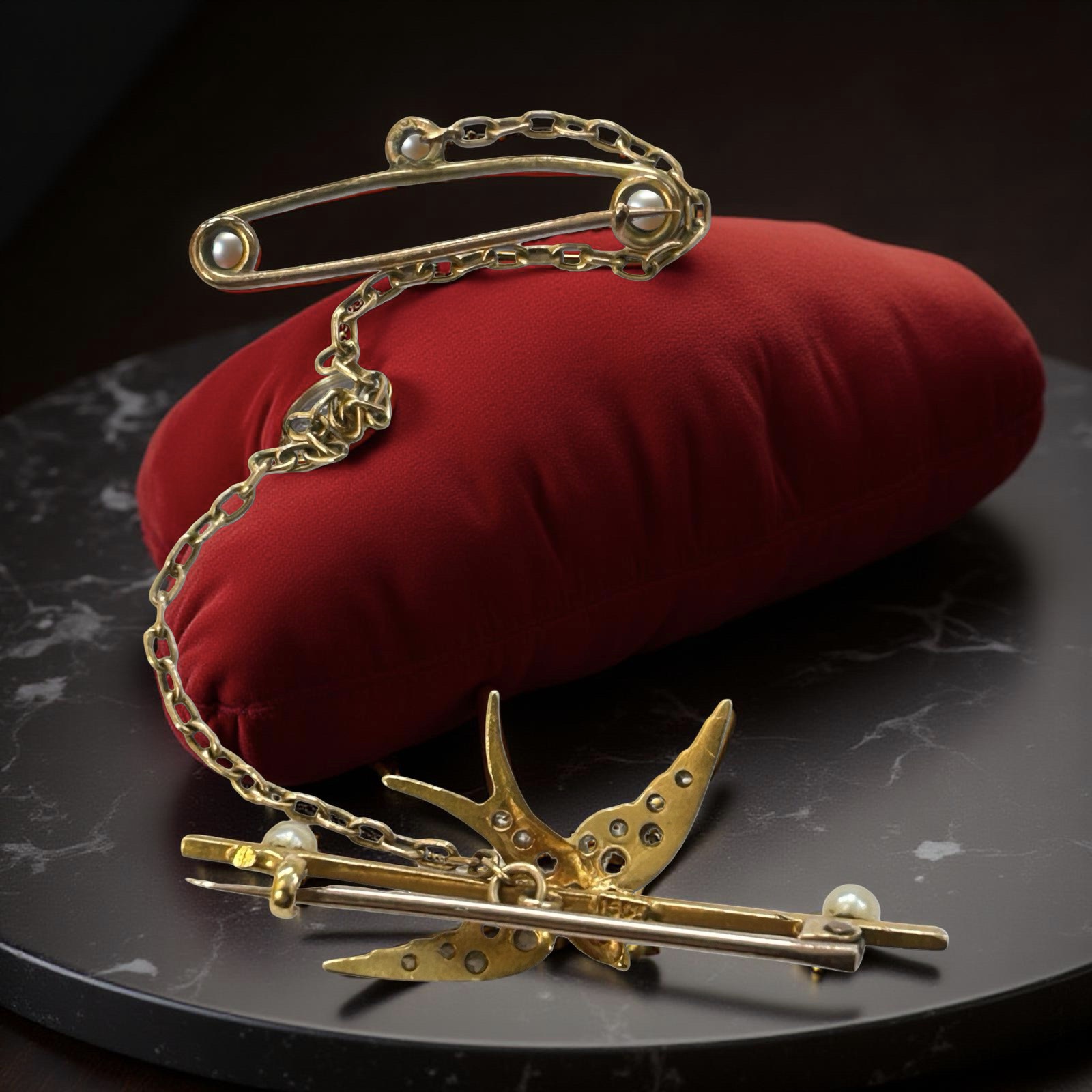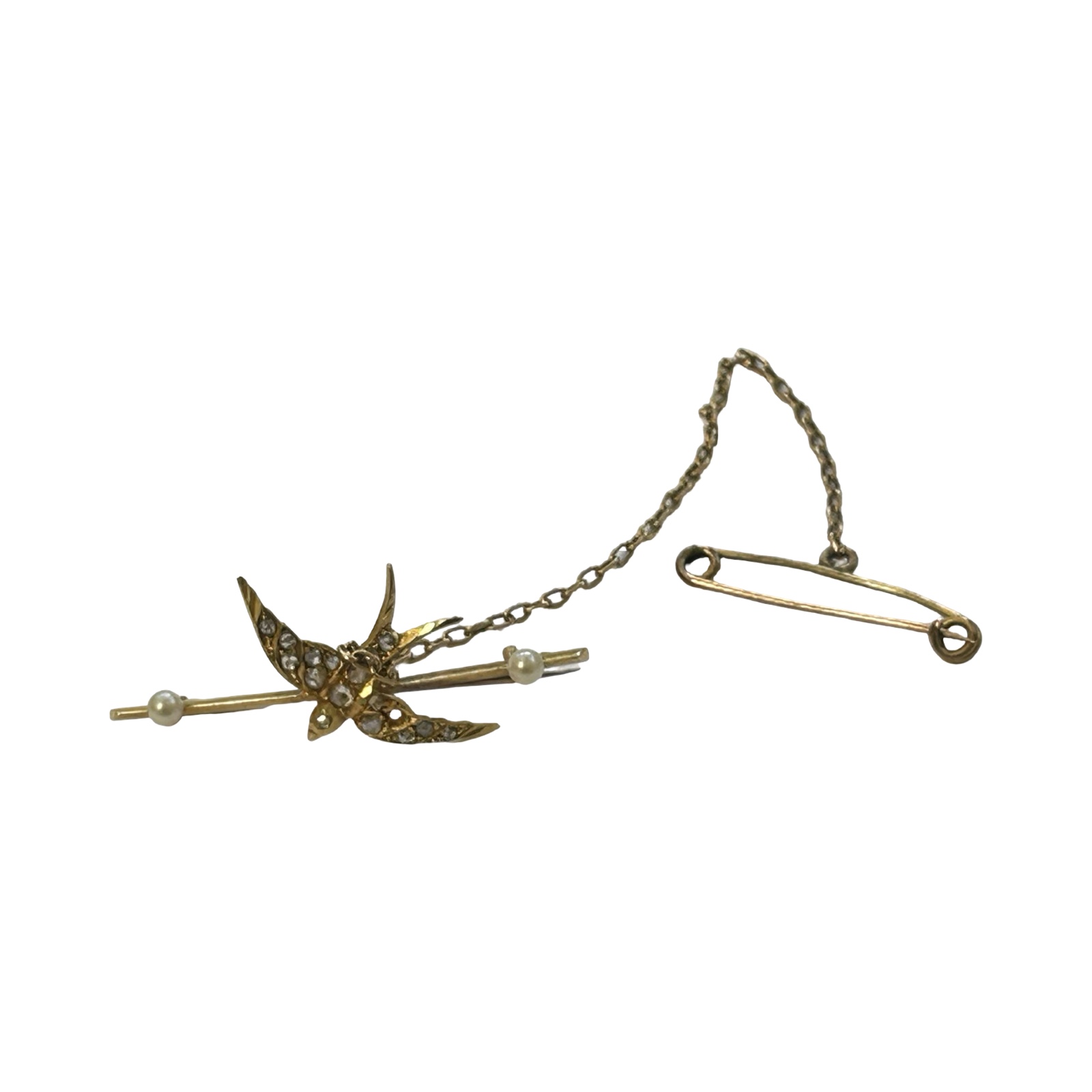 Condition generally good with light wear commensurate with age and use though one small rose cut diamond missing to ring. Safety chain NOT gold.