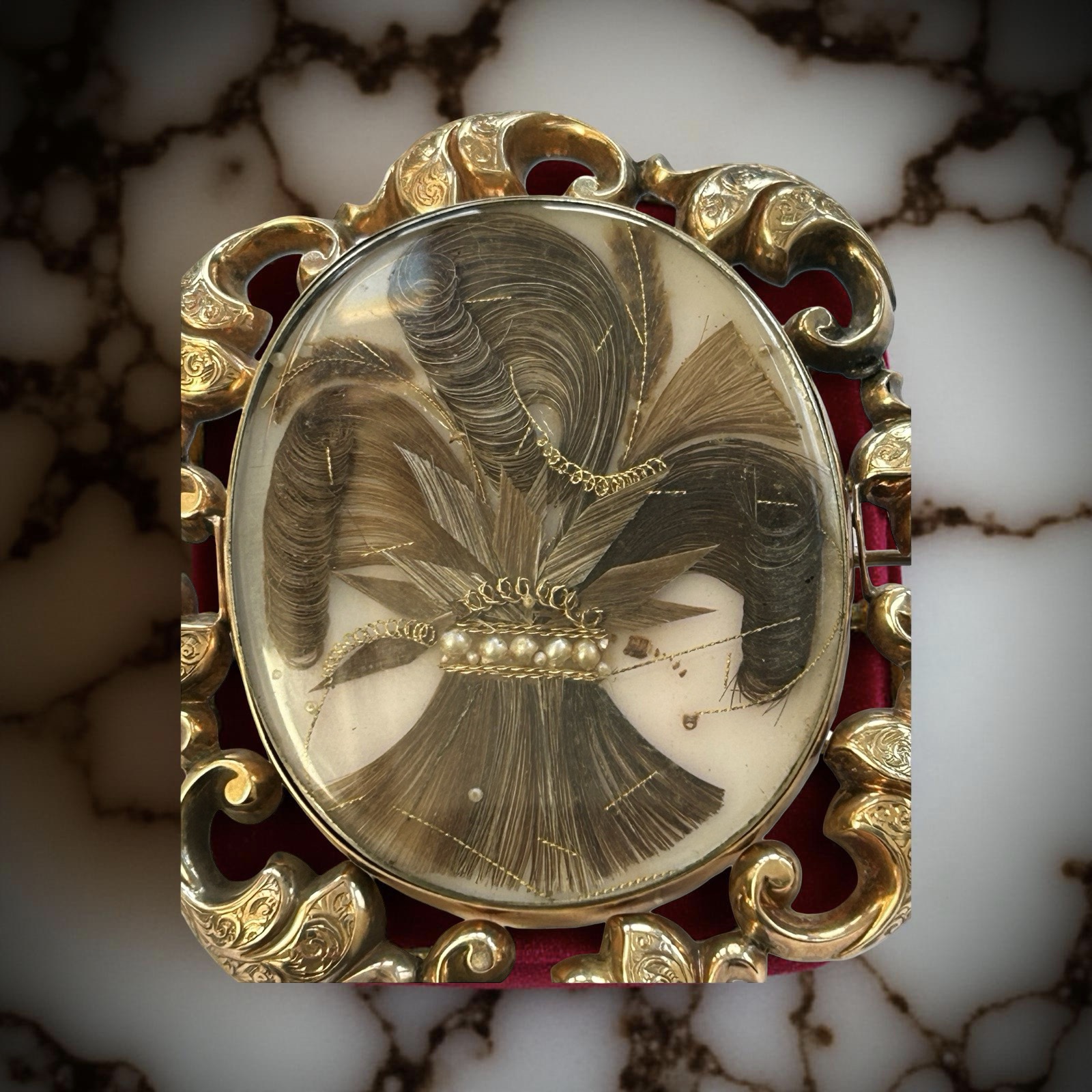 Condition overall good with light wear commensurate with age and use. Some tiny internal losses to hair work. One detachment of gold foliate border.