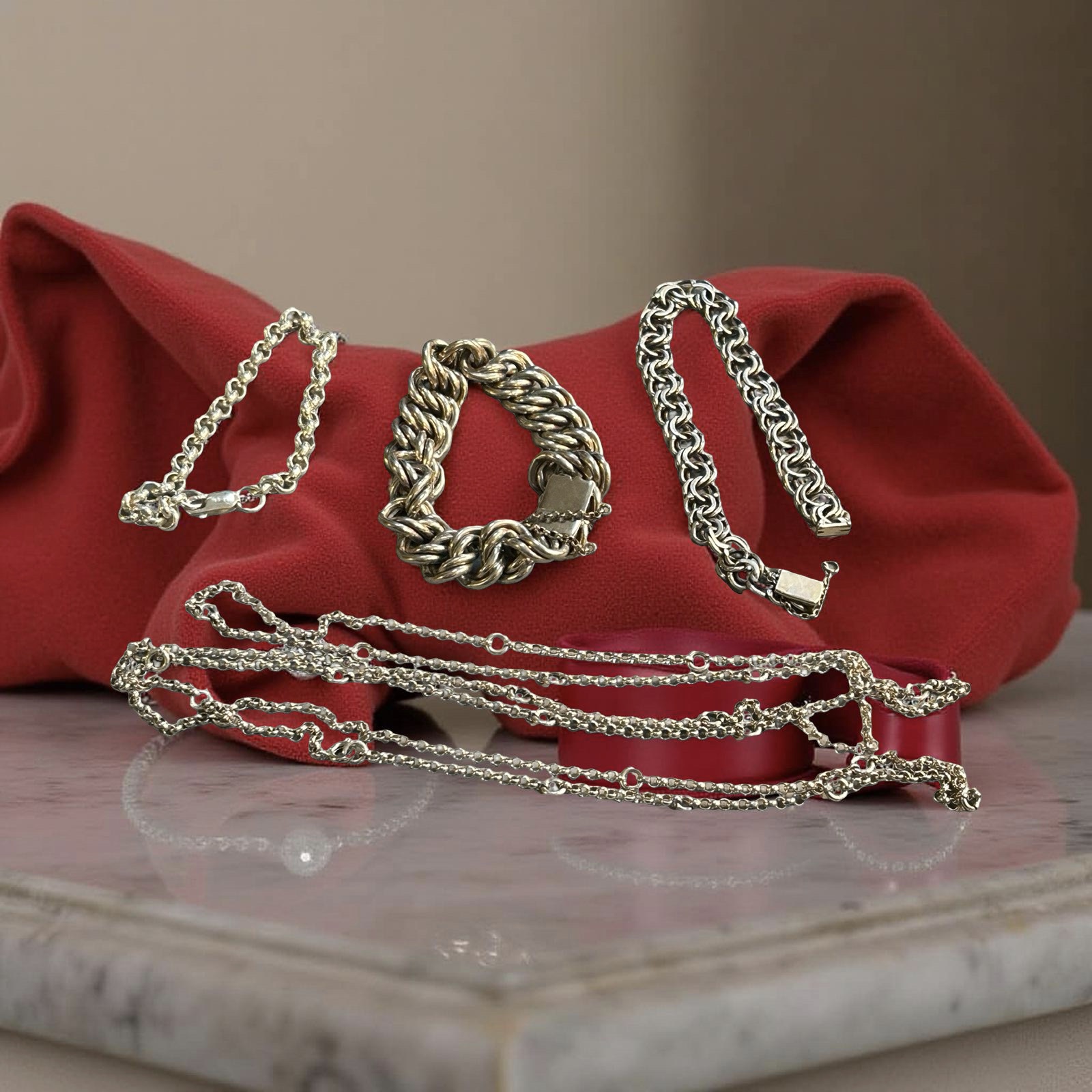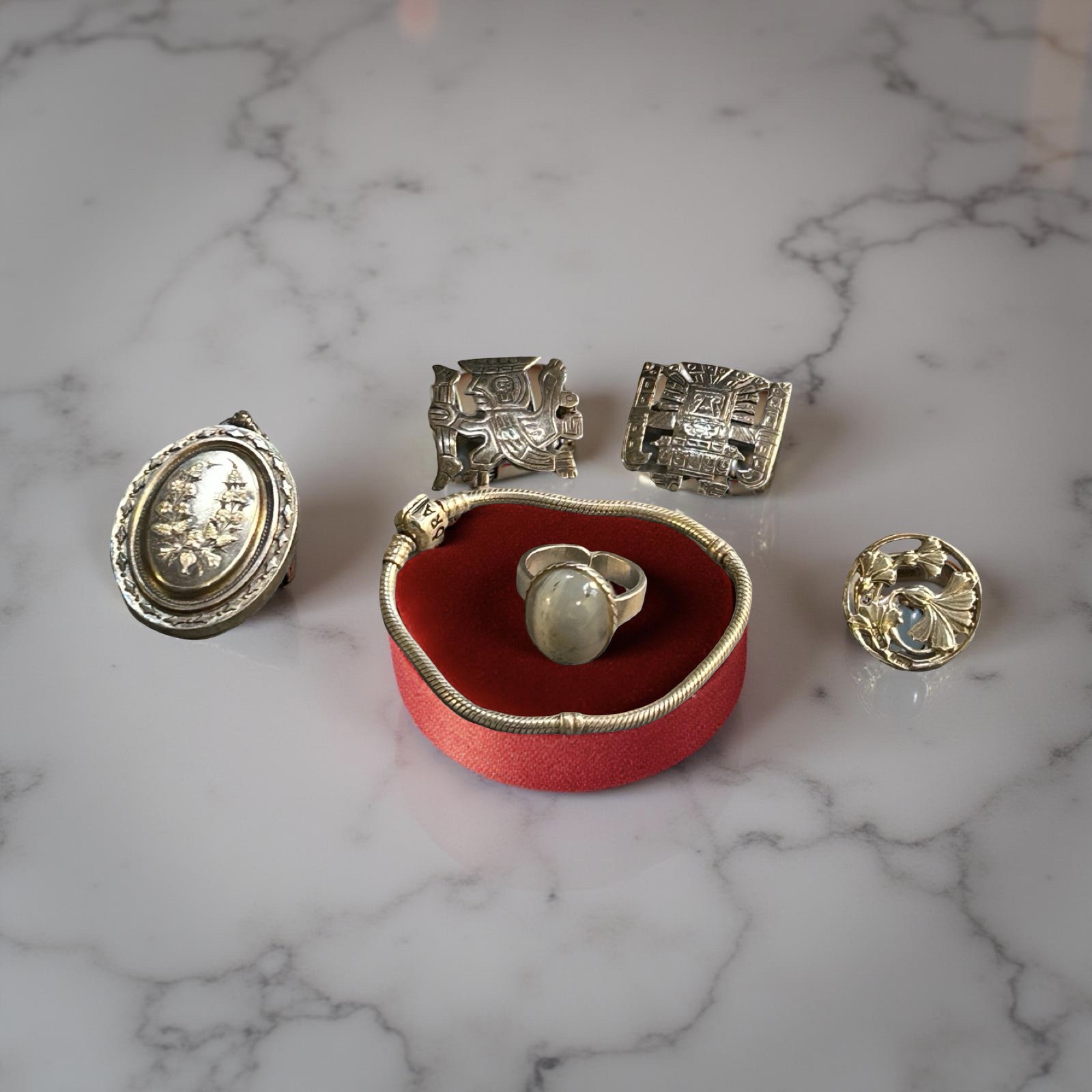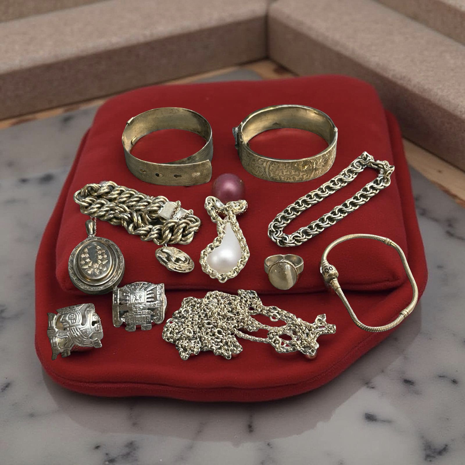 Generally good condition. One bangle has some dents commensurate with age and wear. To include: