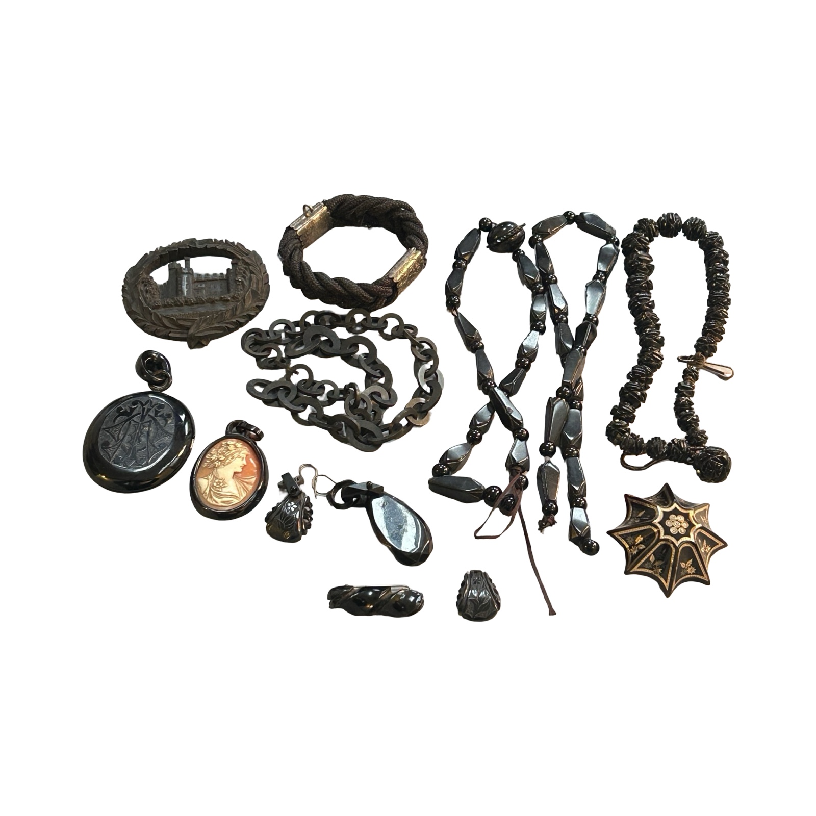6. A carved jet watch chain