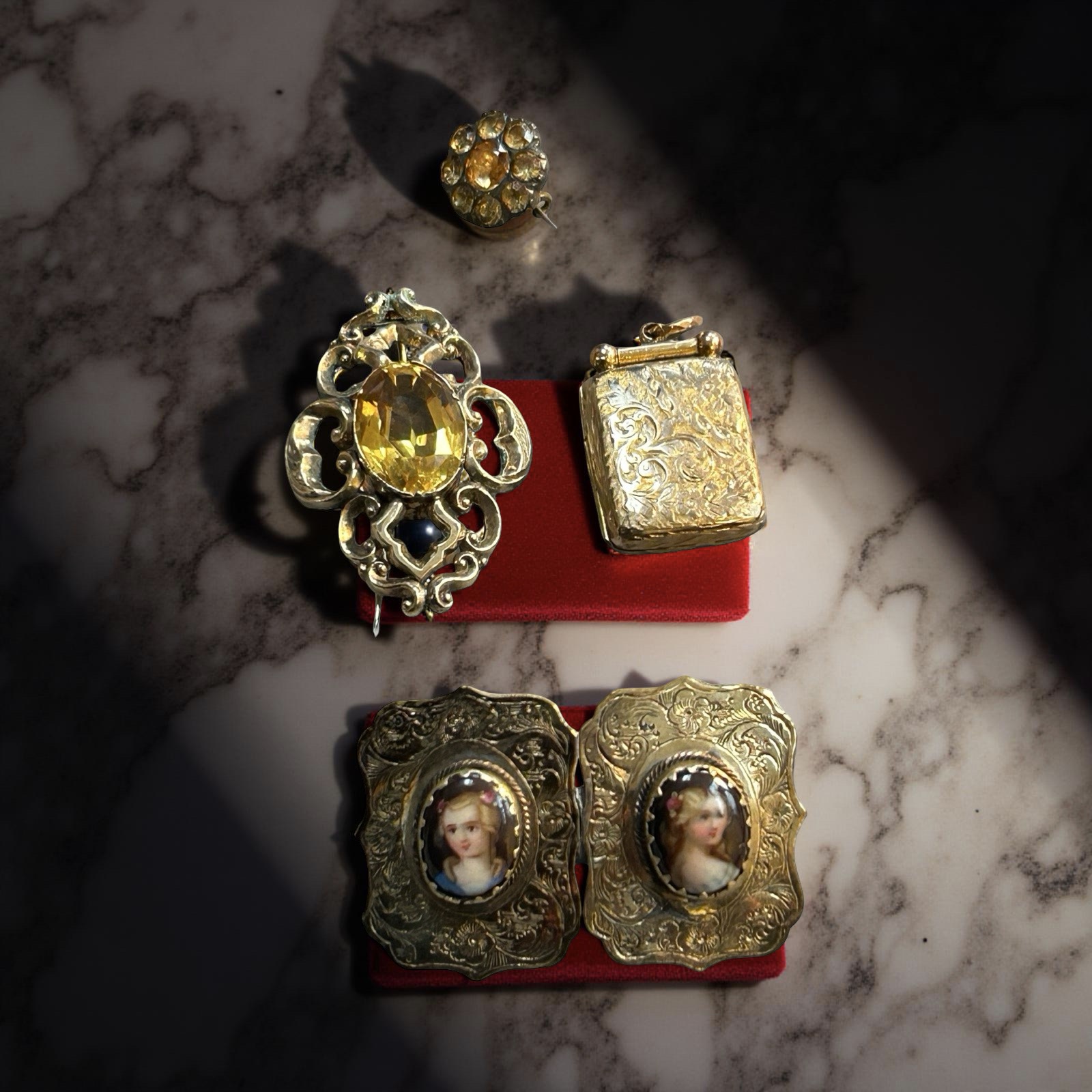 2. 2 citrine set brooches
