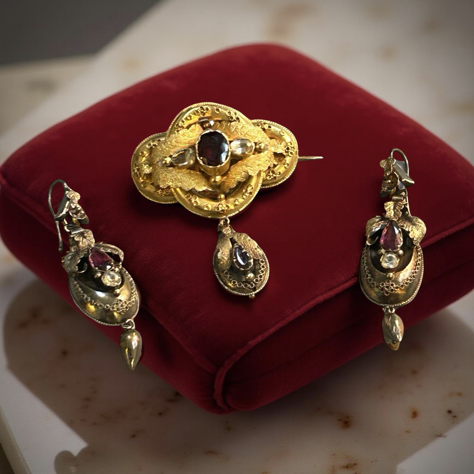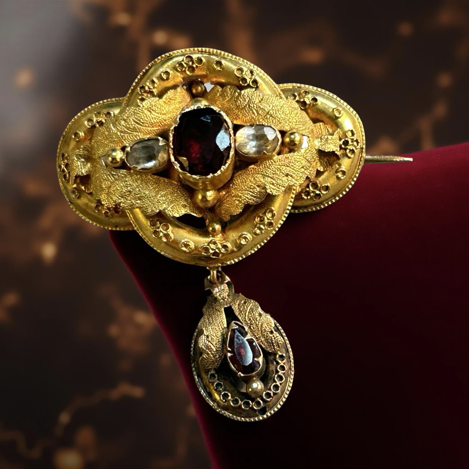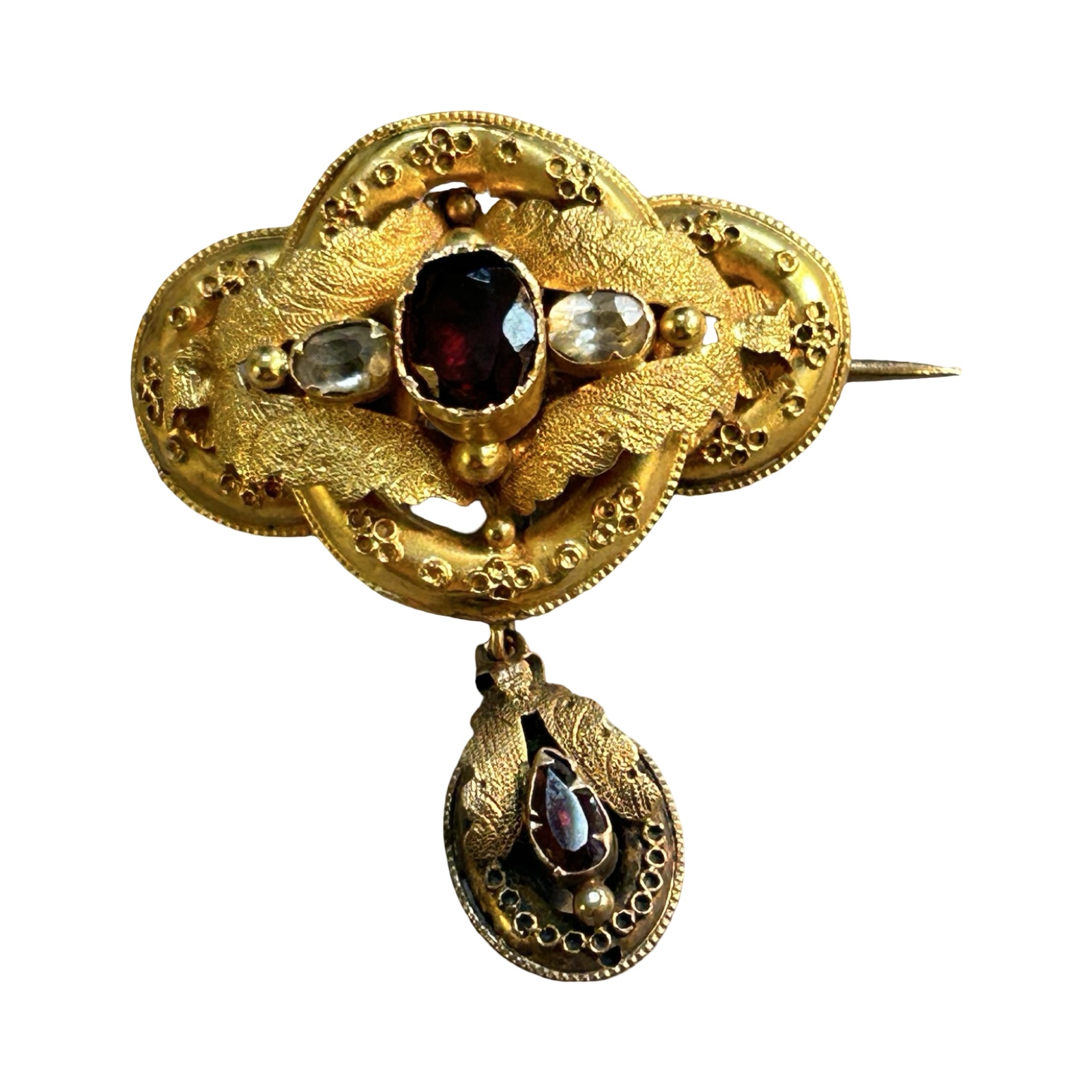 Condition: Good with a few small age related dents. Set with garnets and white quartz