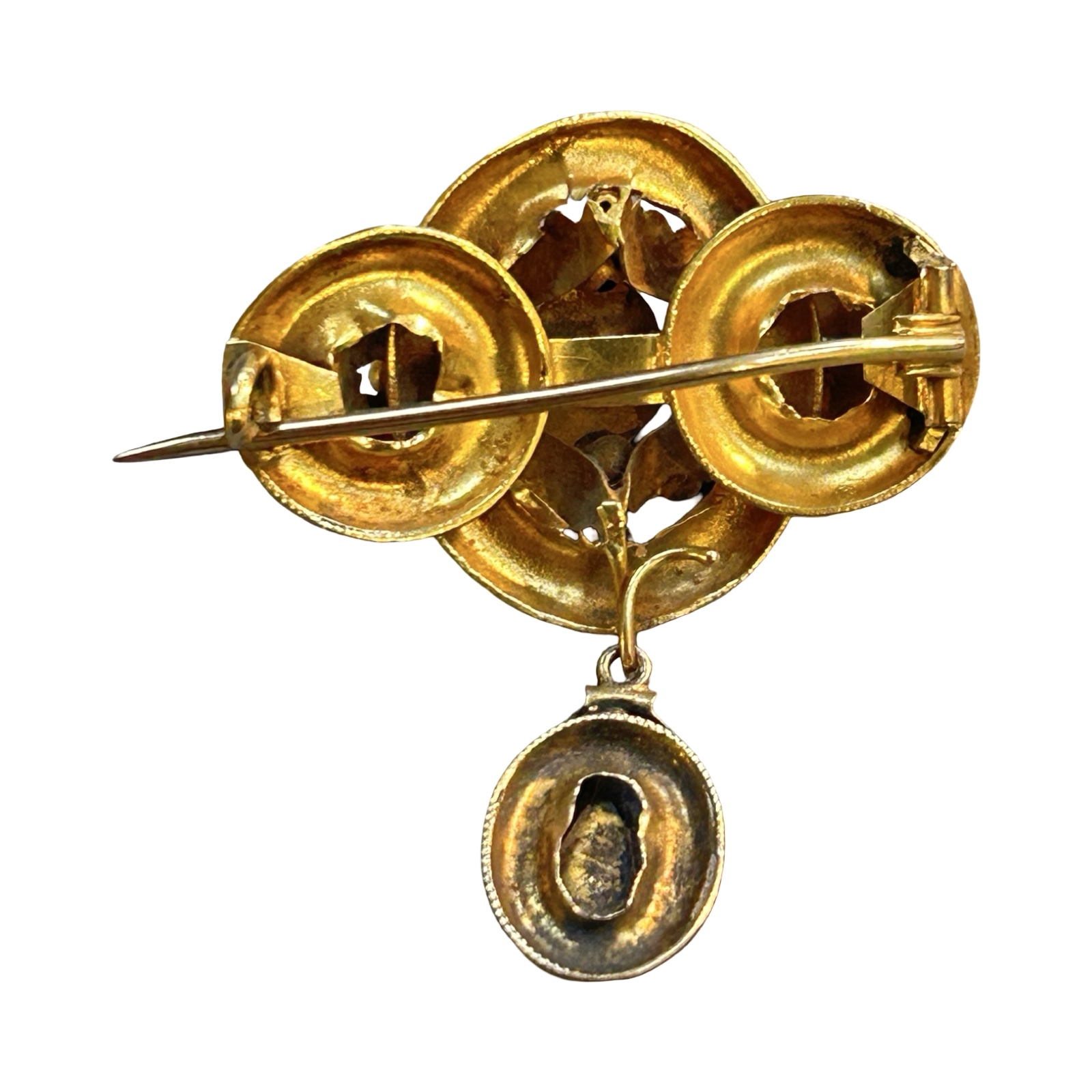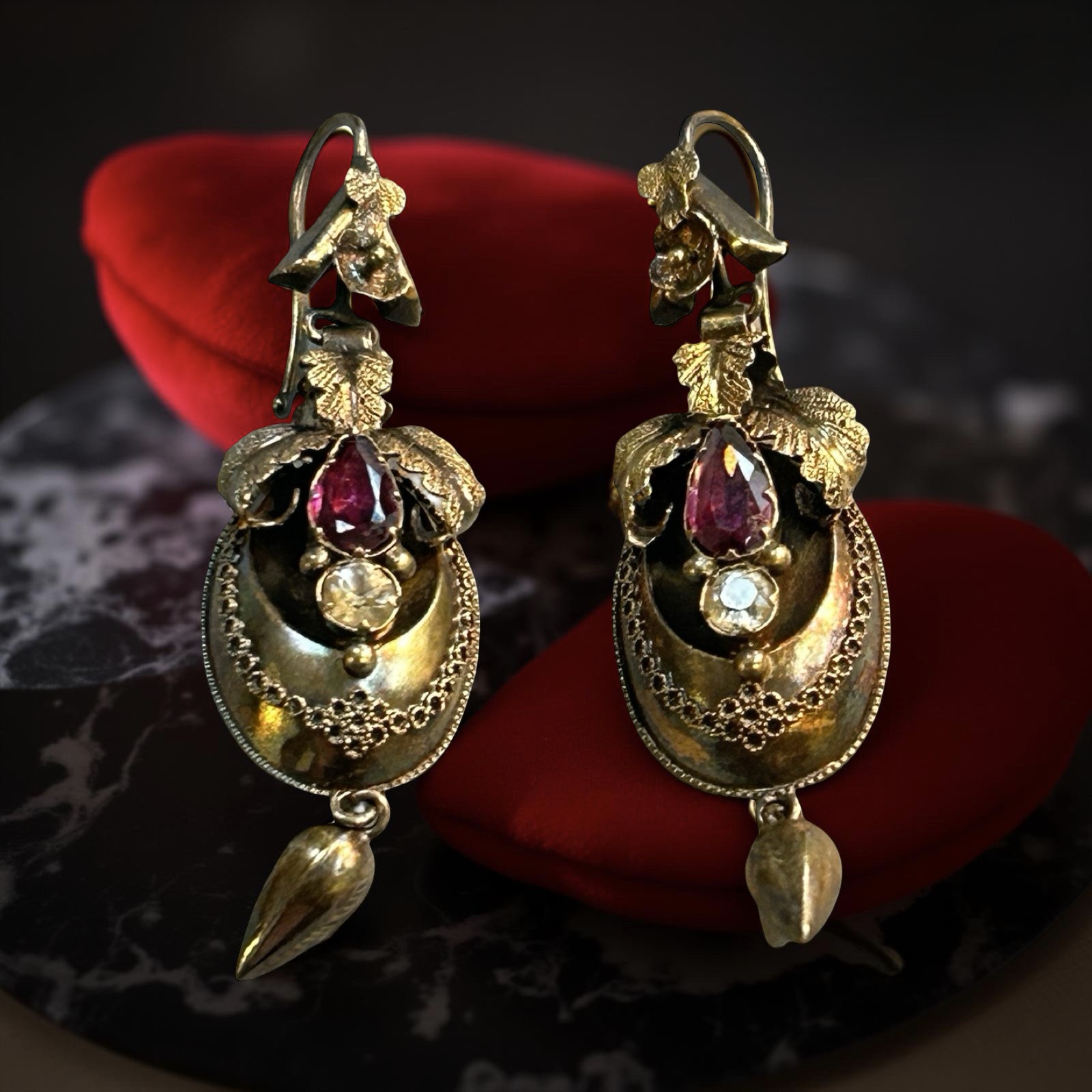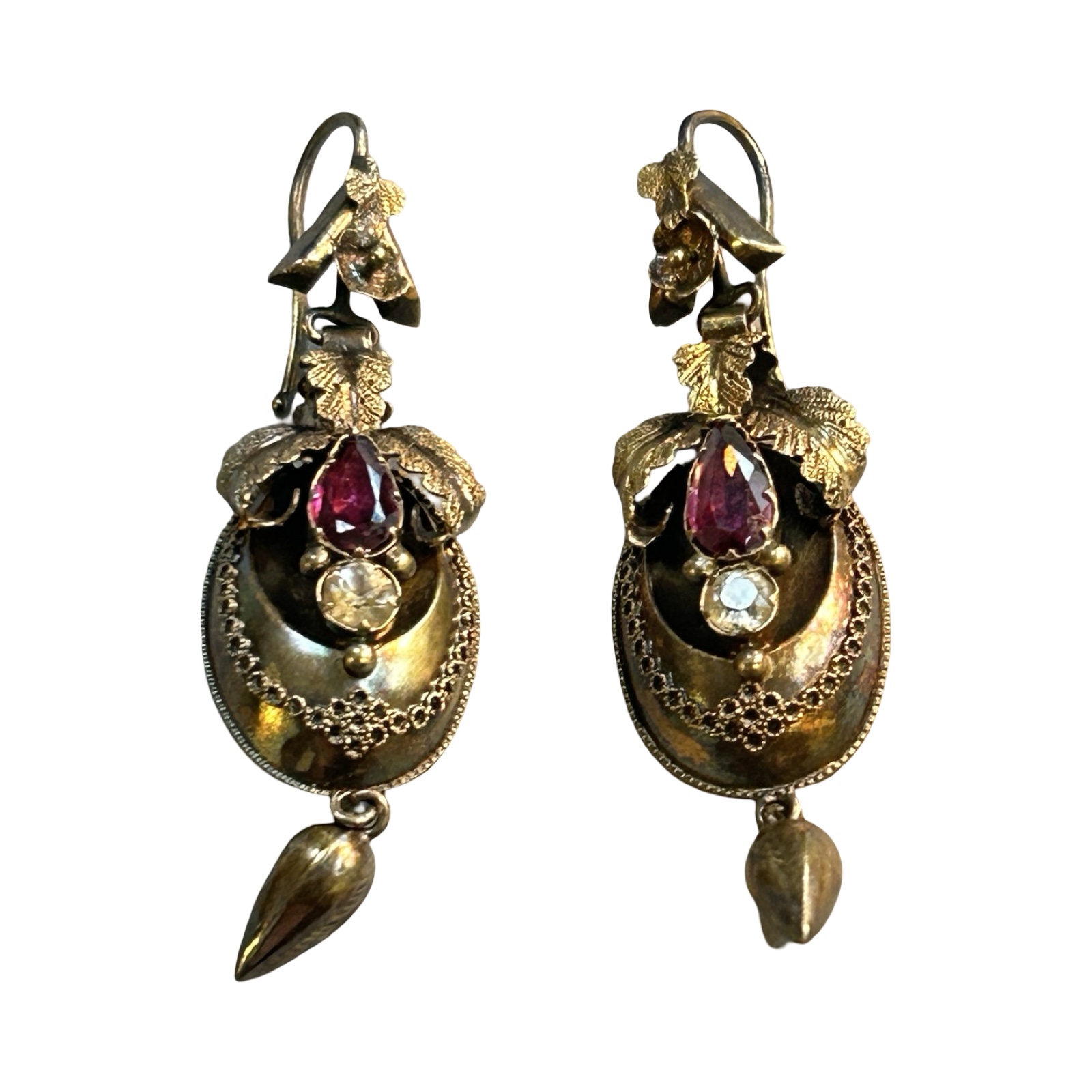 Condition: Good with a few small age related dents. Set with garnets and white quartz