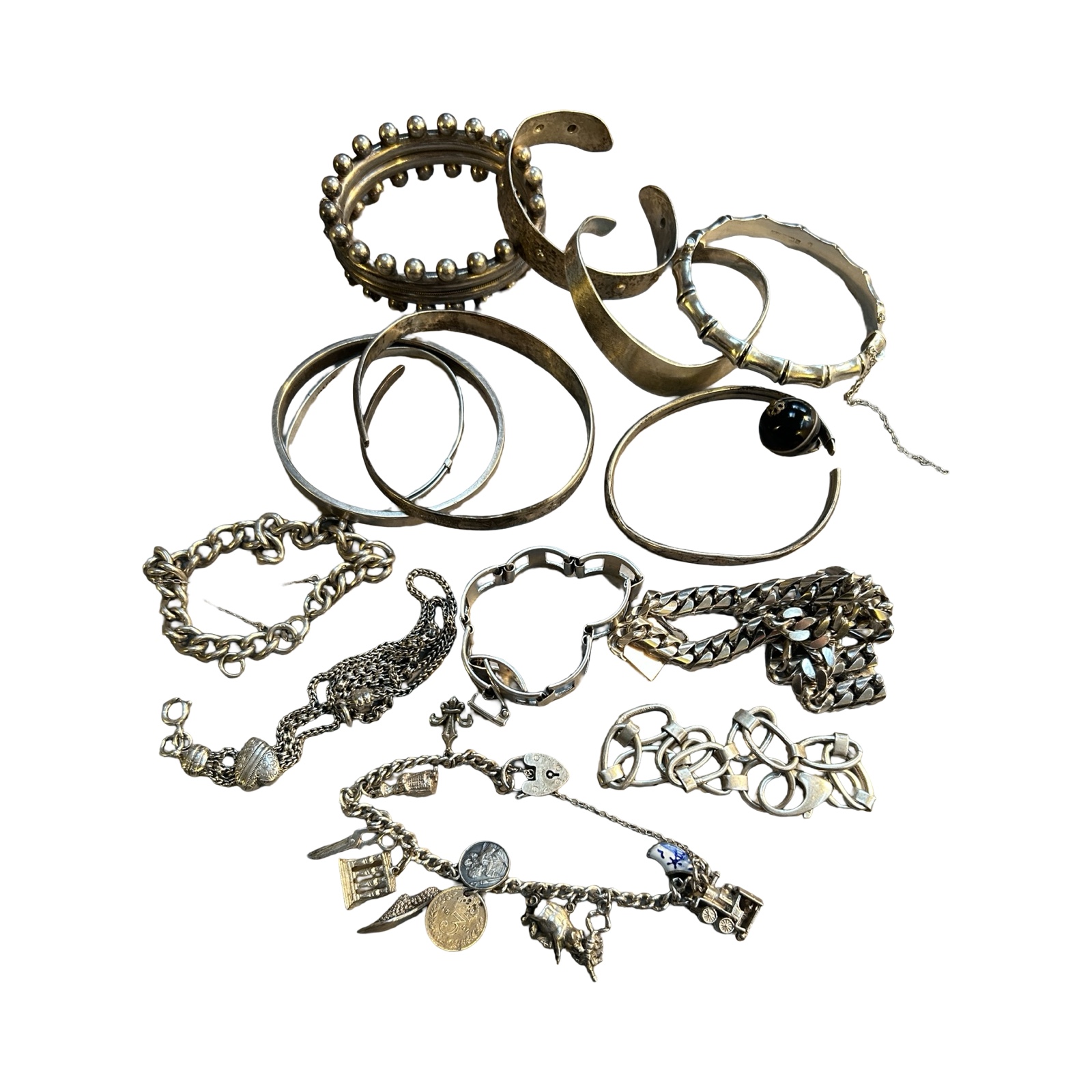Most marked with 925 or sterling or hallmarks. Majority in good condition tough a few slightly wounded (but probably easily reparable)