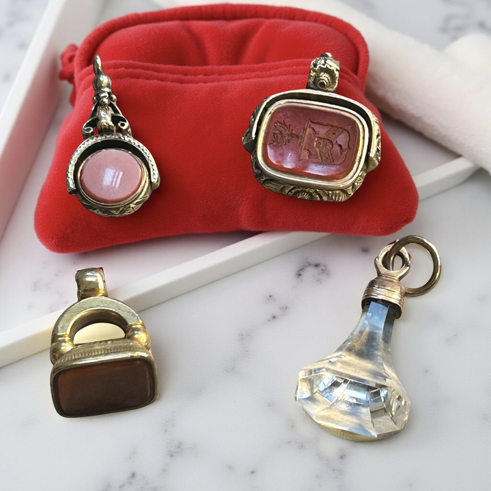 2 fobs Carnelian stones