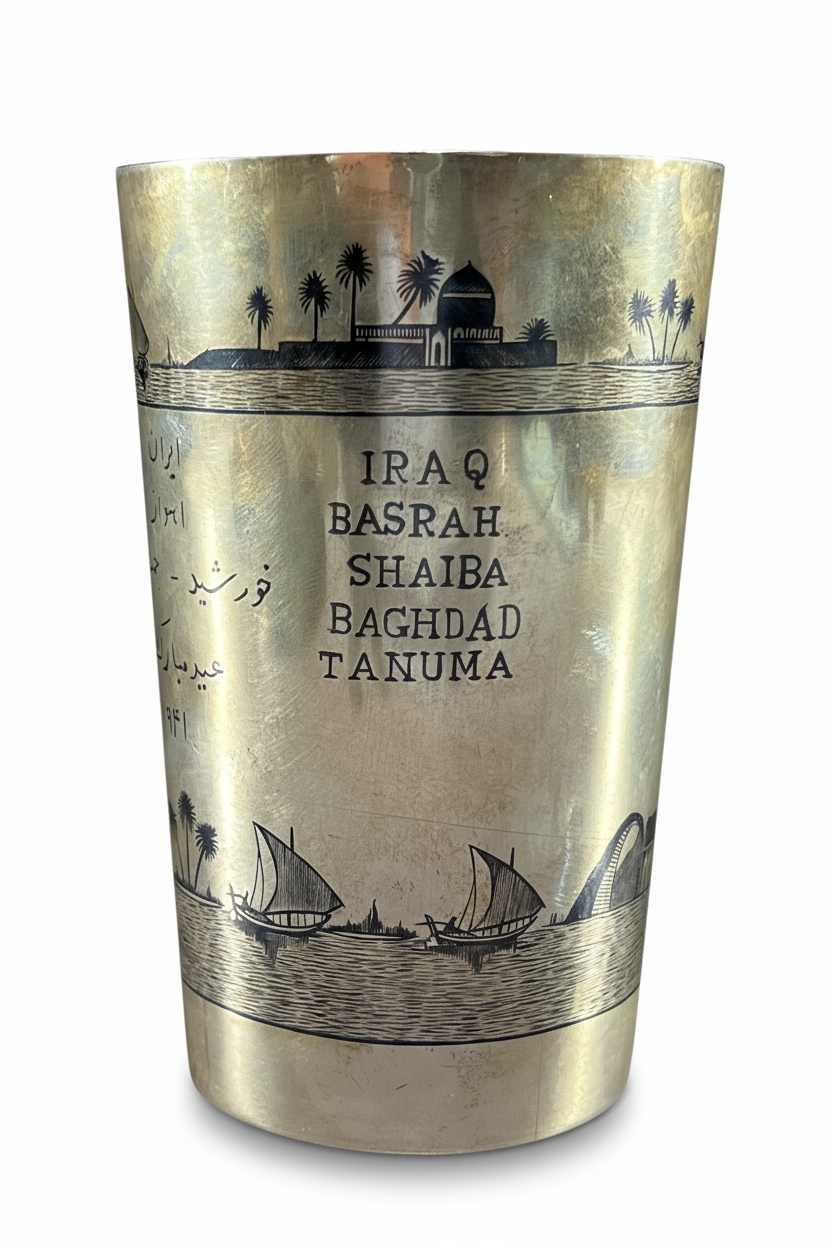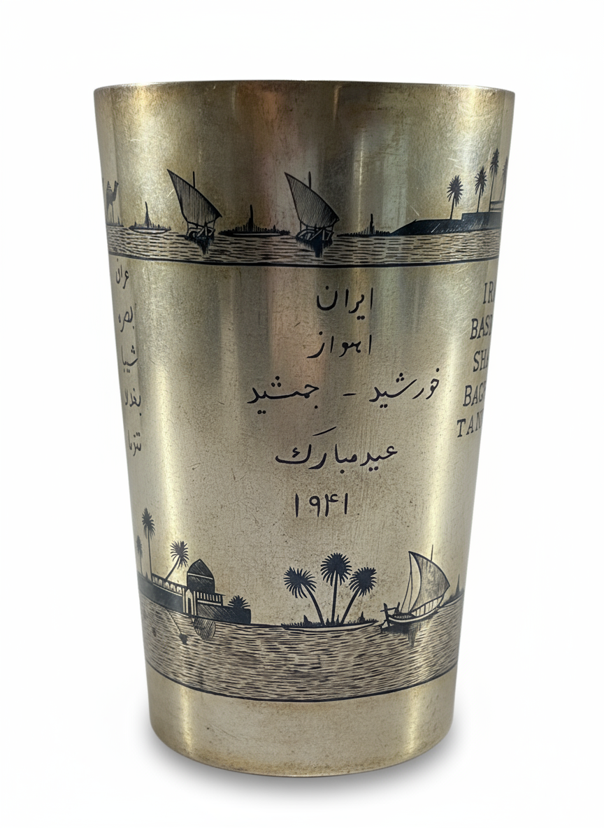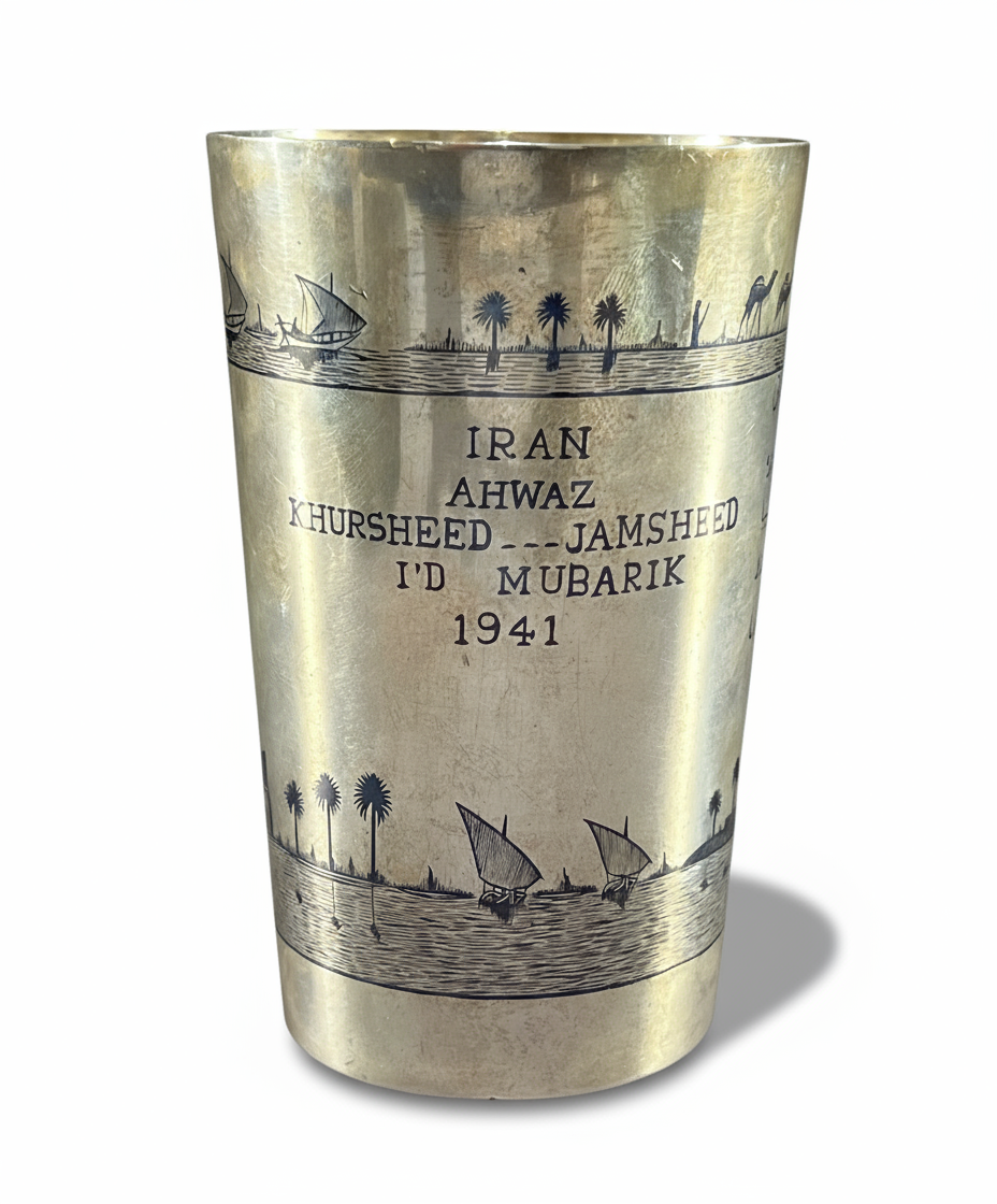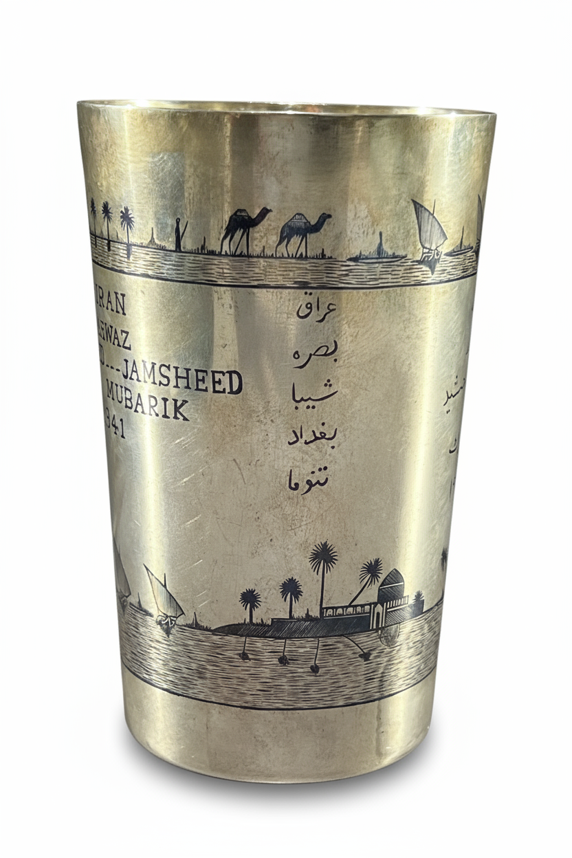 A LARGE IRAQI SILVER AND NIELLO CUP, 20TH CENTURY
