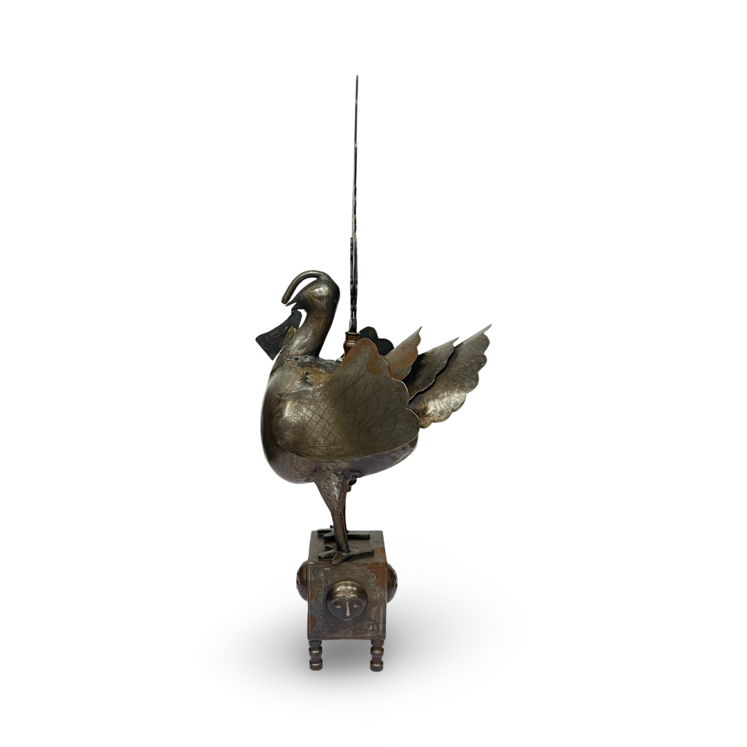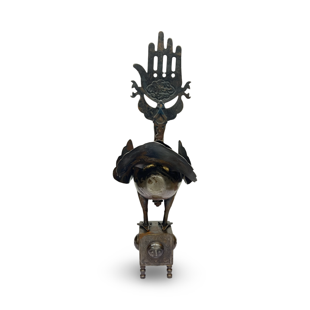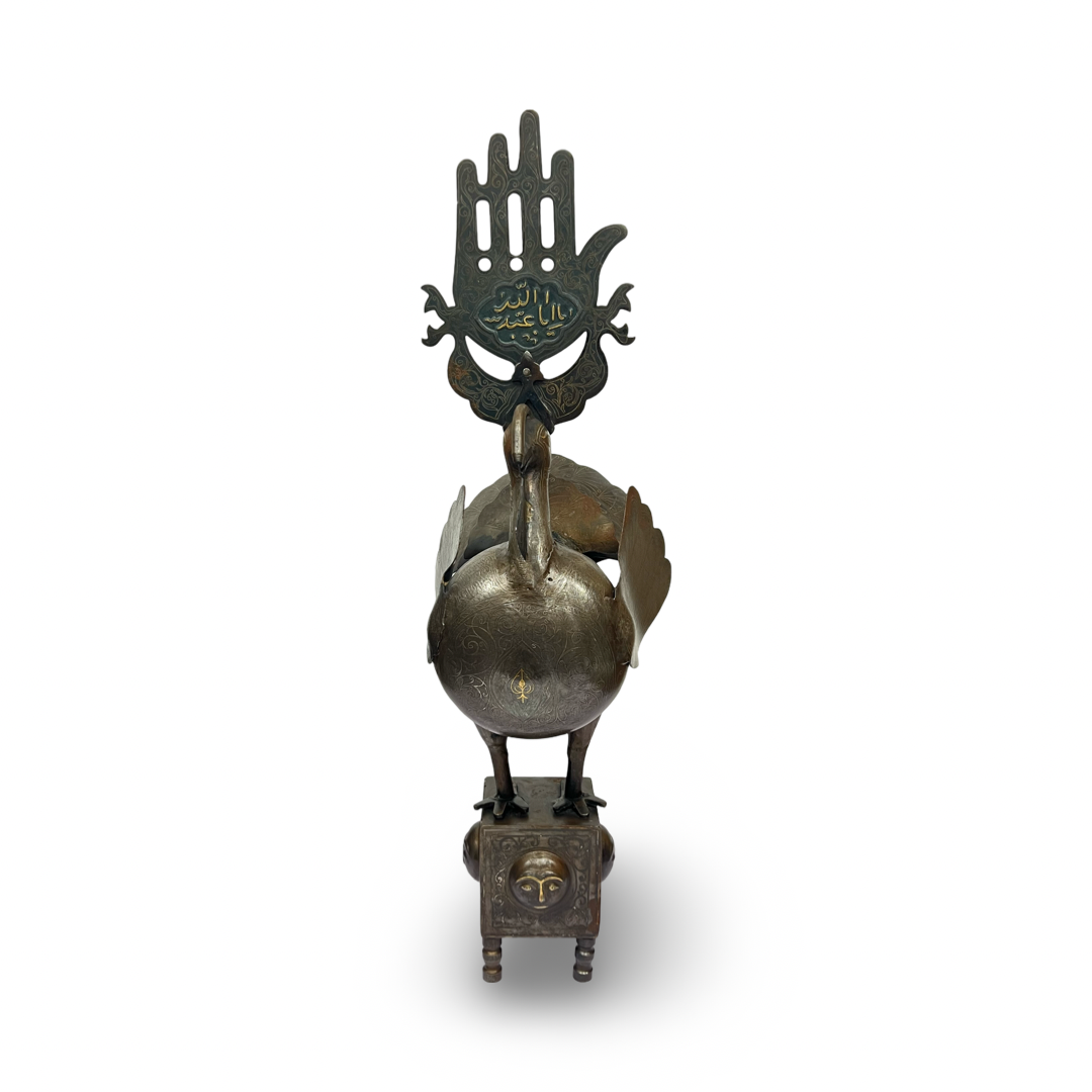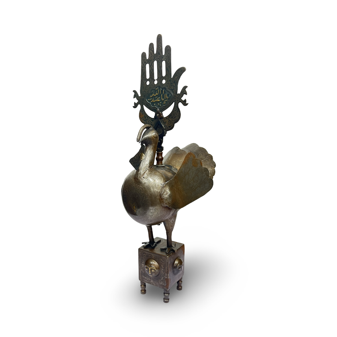 A QAJAR GOLD-INLAID STEEL BIRD (ALAM FINIAL), PERSIA, 19TH CENTURY
