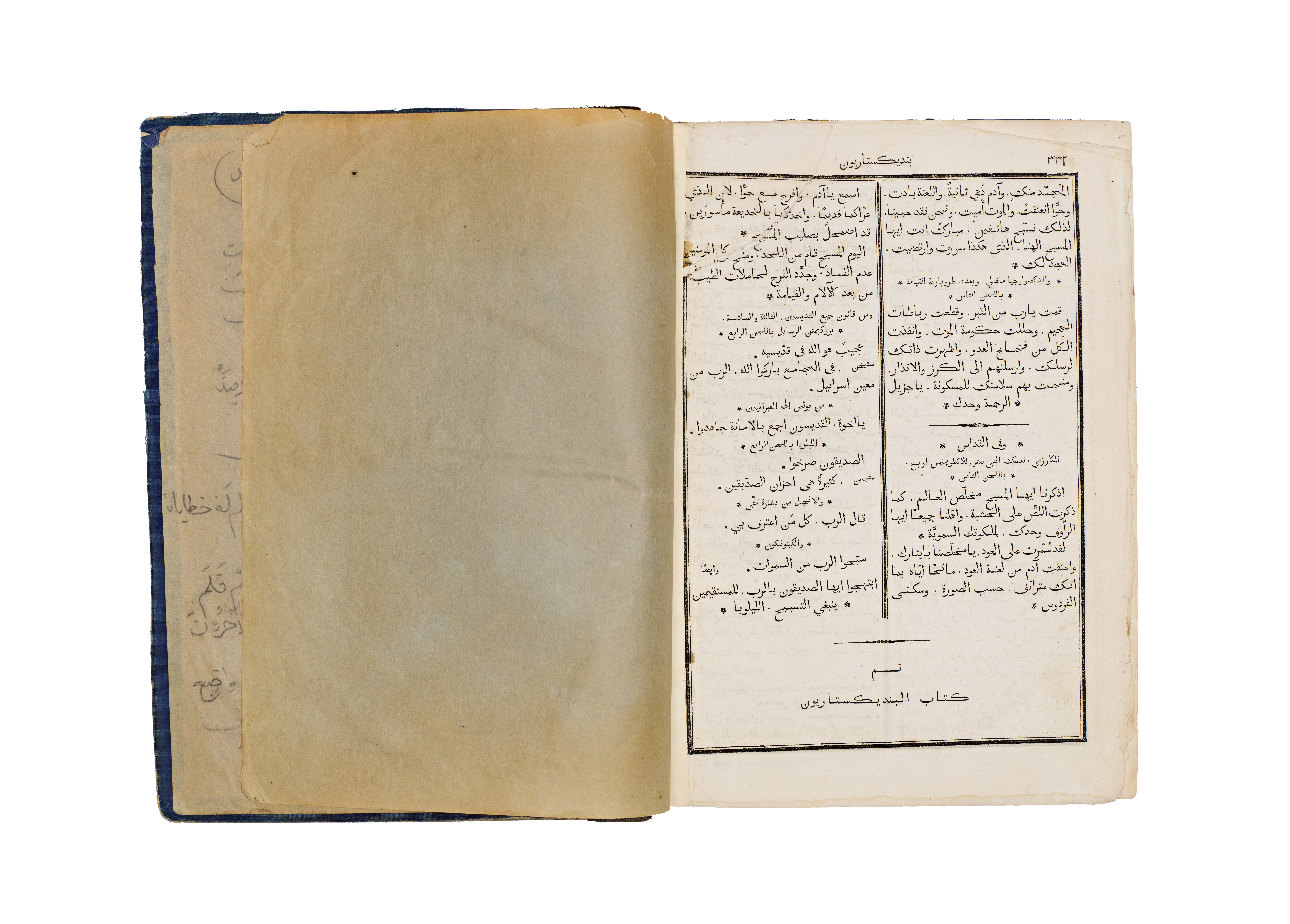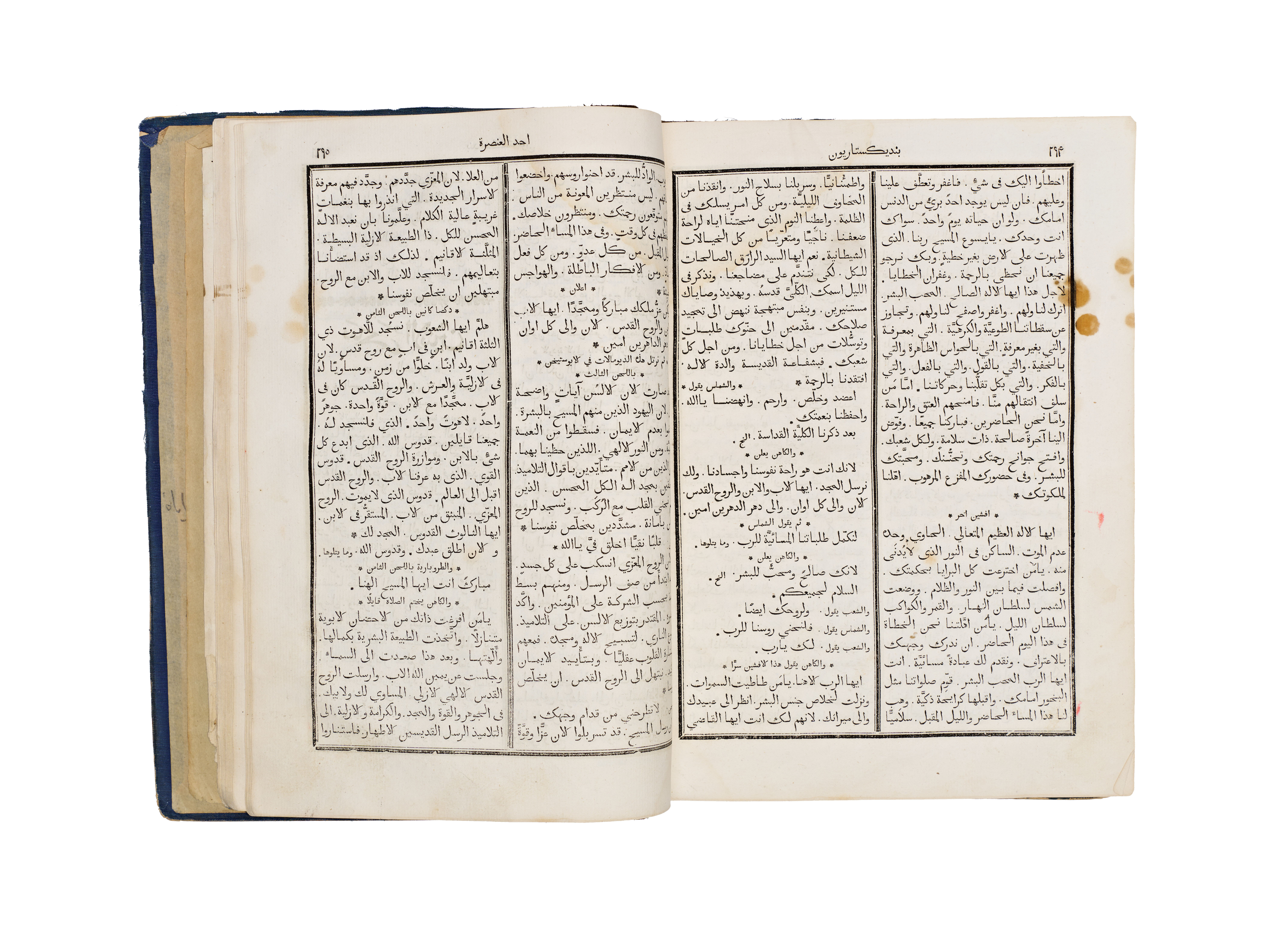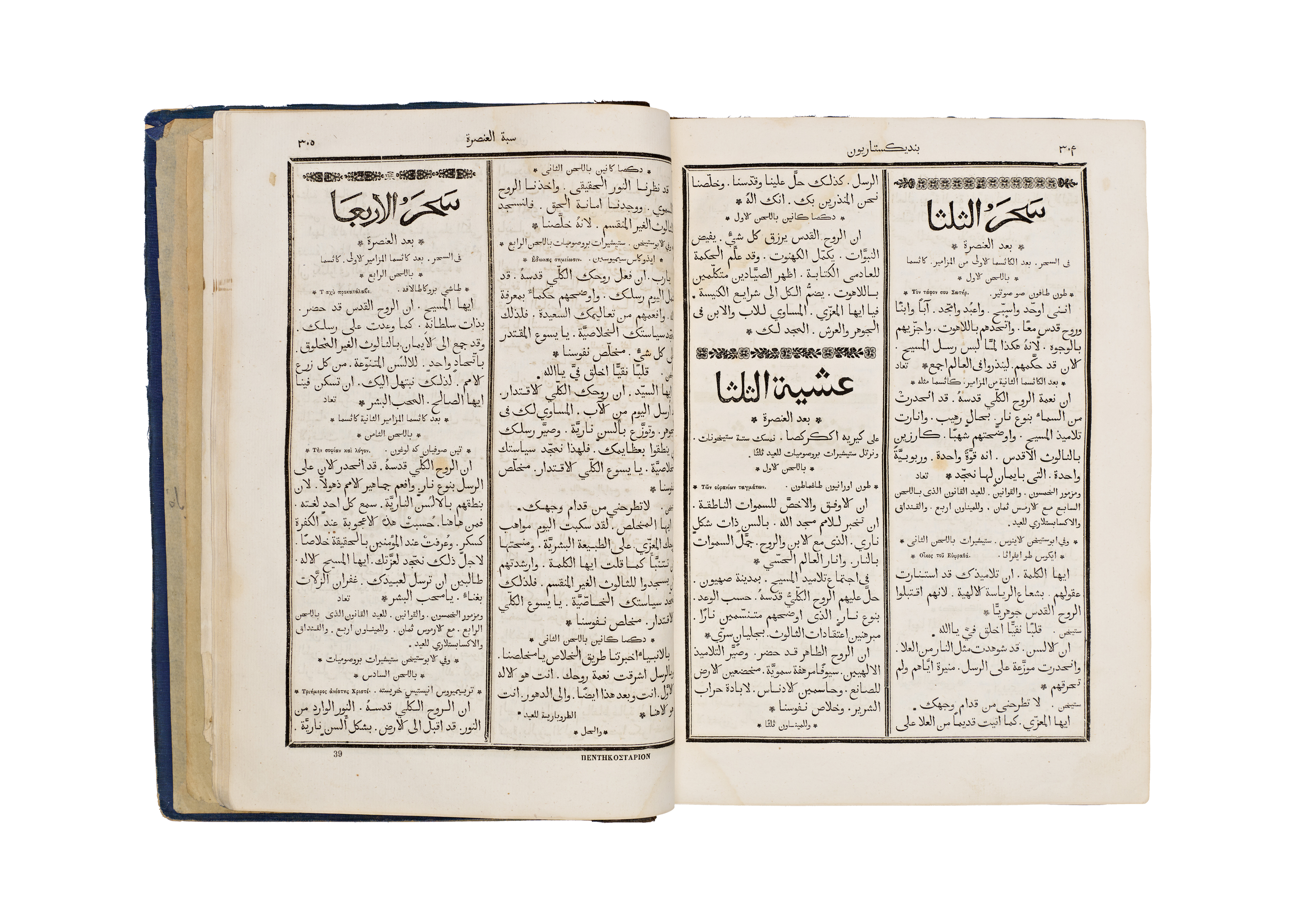 A LARGE ARABIC CHRISTIAN PRINT BOOK KITAB PENTEKOSTARION ARABIC LITURGICAL TEXT, JERUSALEM, 1852