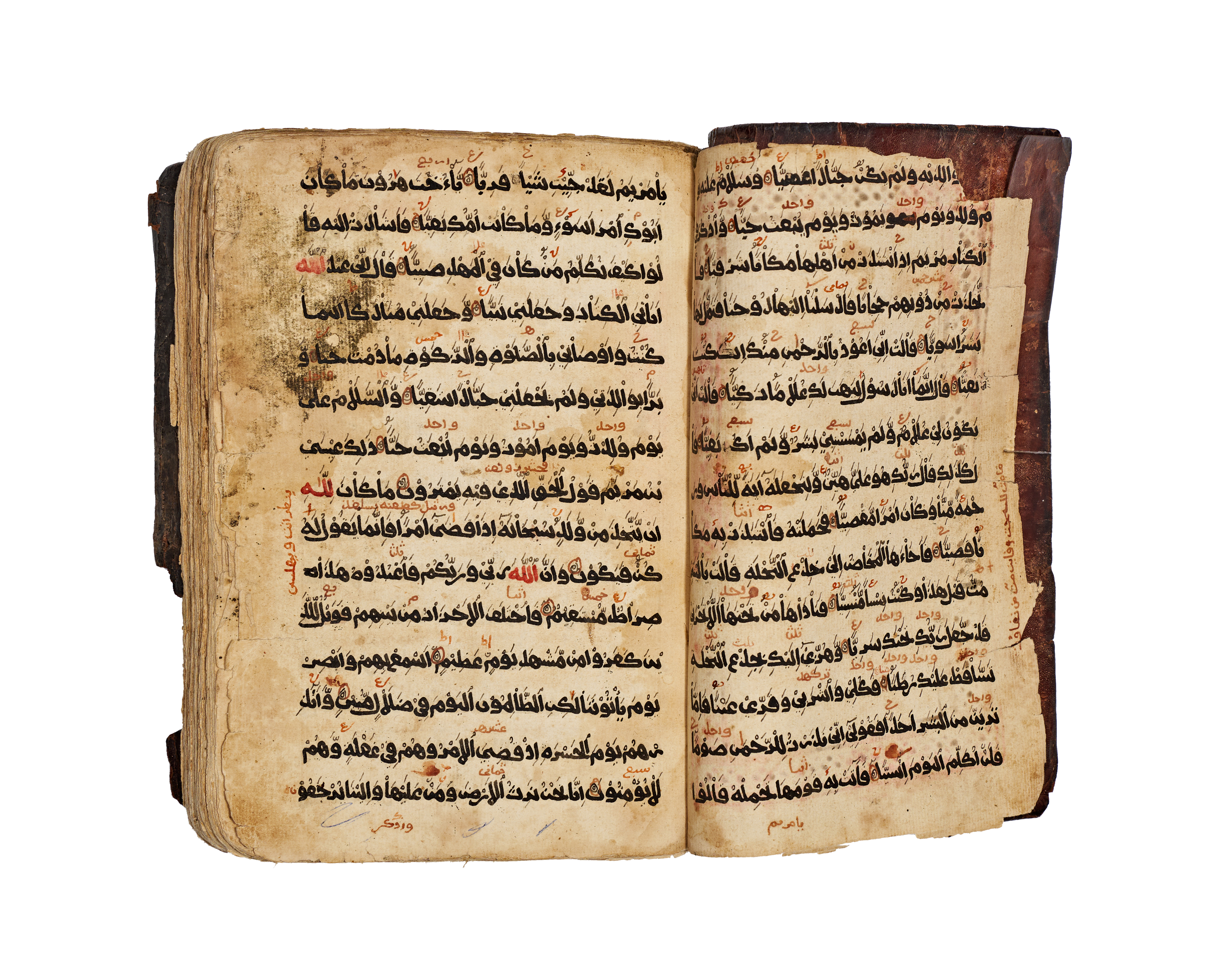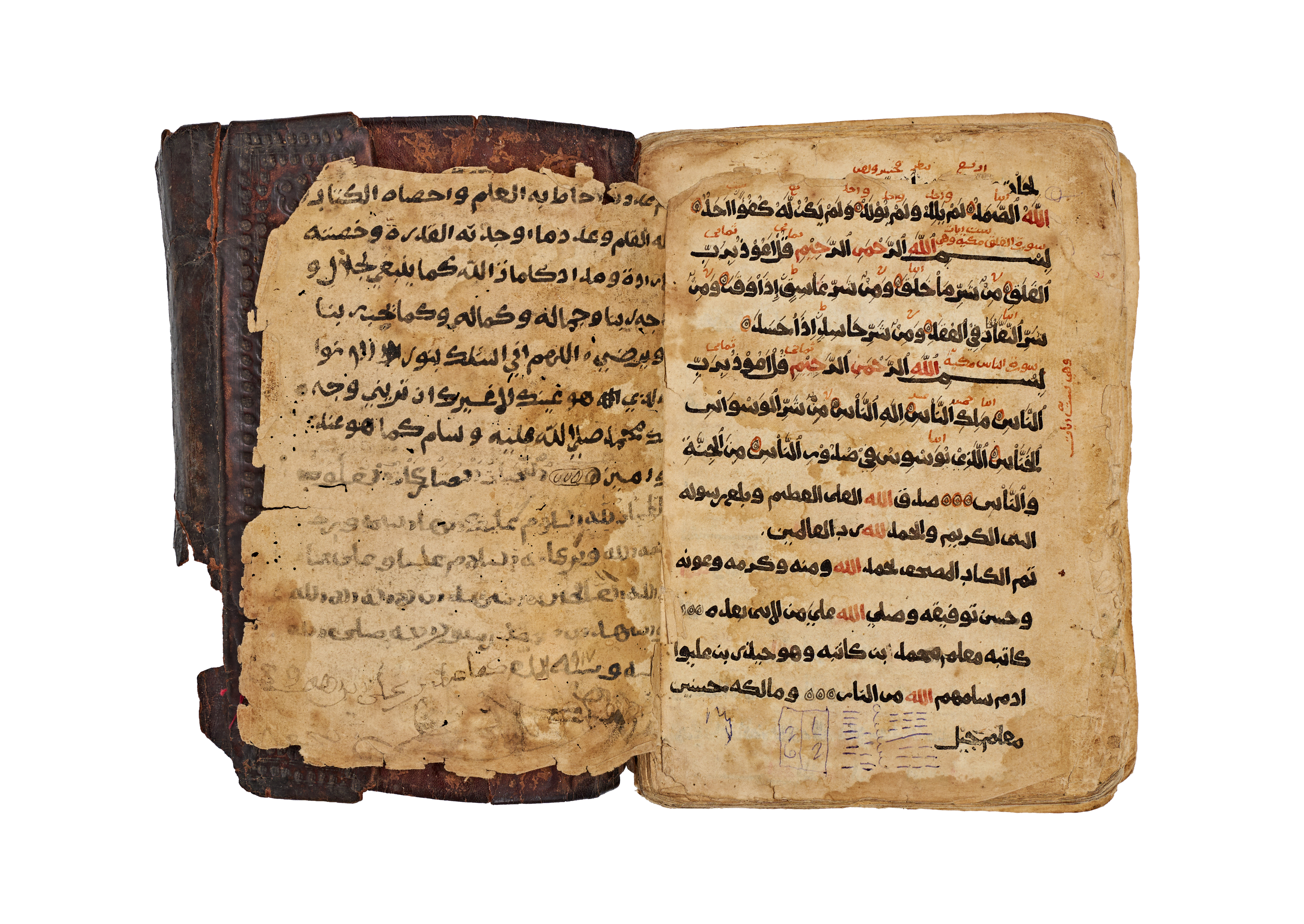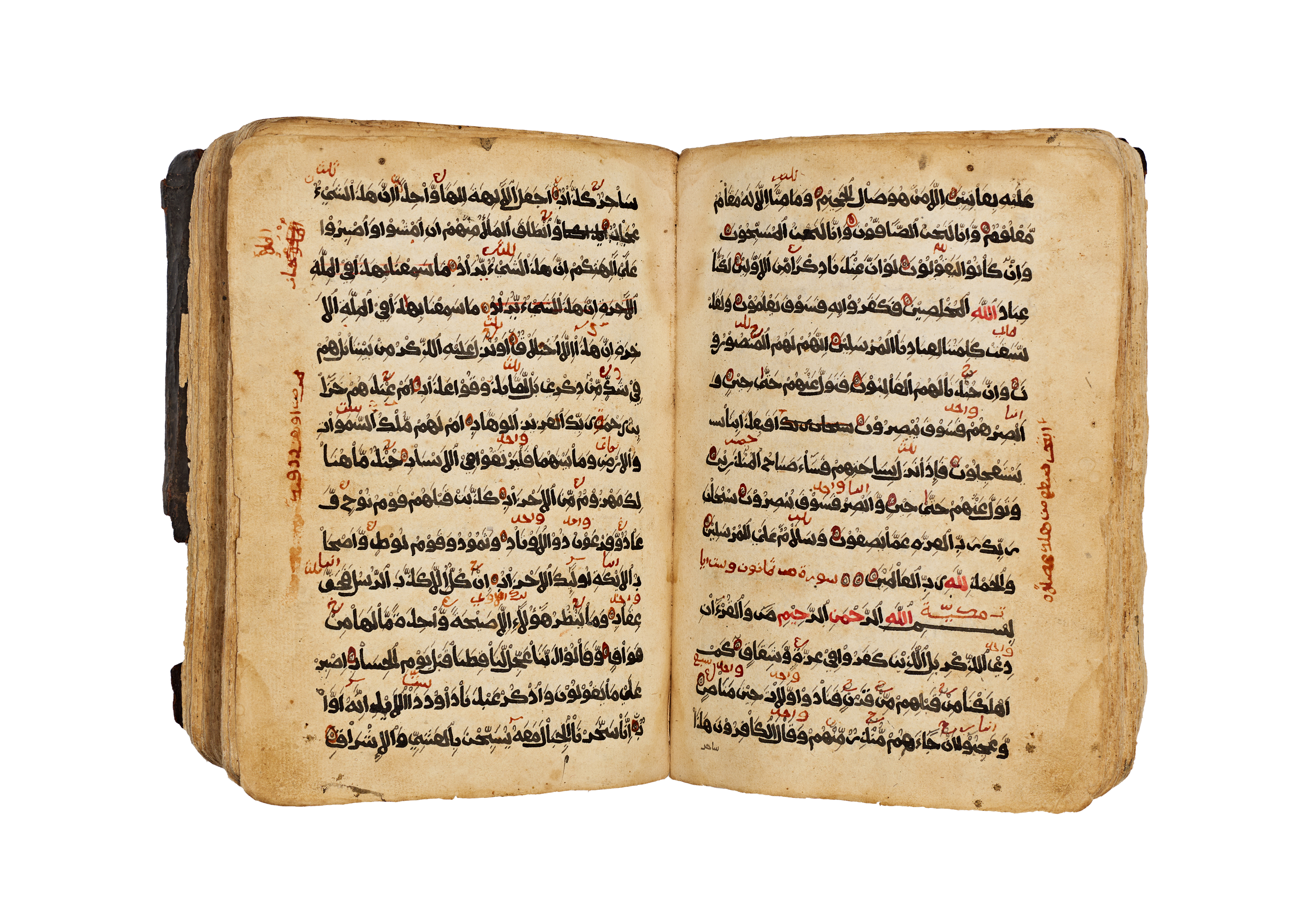An early Qur’an manuscript from Harar, in the Horn of Africa, dated AH 917 (c. 1511 AD). Written in a bold, legible hand reflecting early Yemeni–Hijazi calligraphic traditions, characteristic of Islamic manuscript production in the western Red Sea and Horn of Africa regions. The manuscript was clearly intended for devotional use rather than courtly presentation, retaining strong regional authenticity. signed written by mohammed and owner is Hassan.