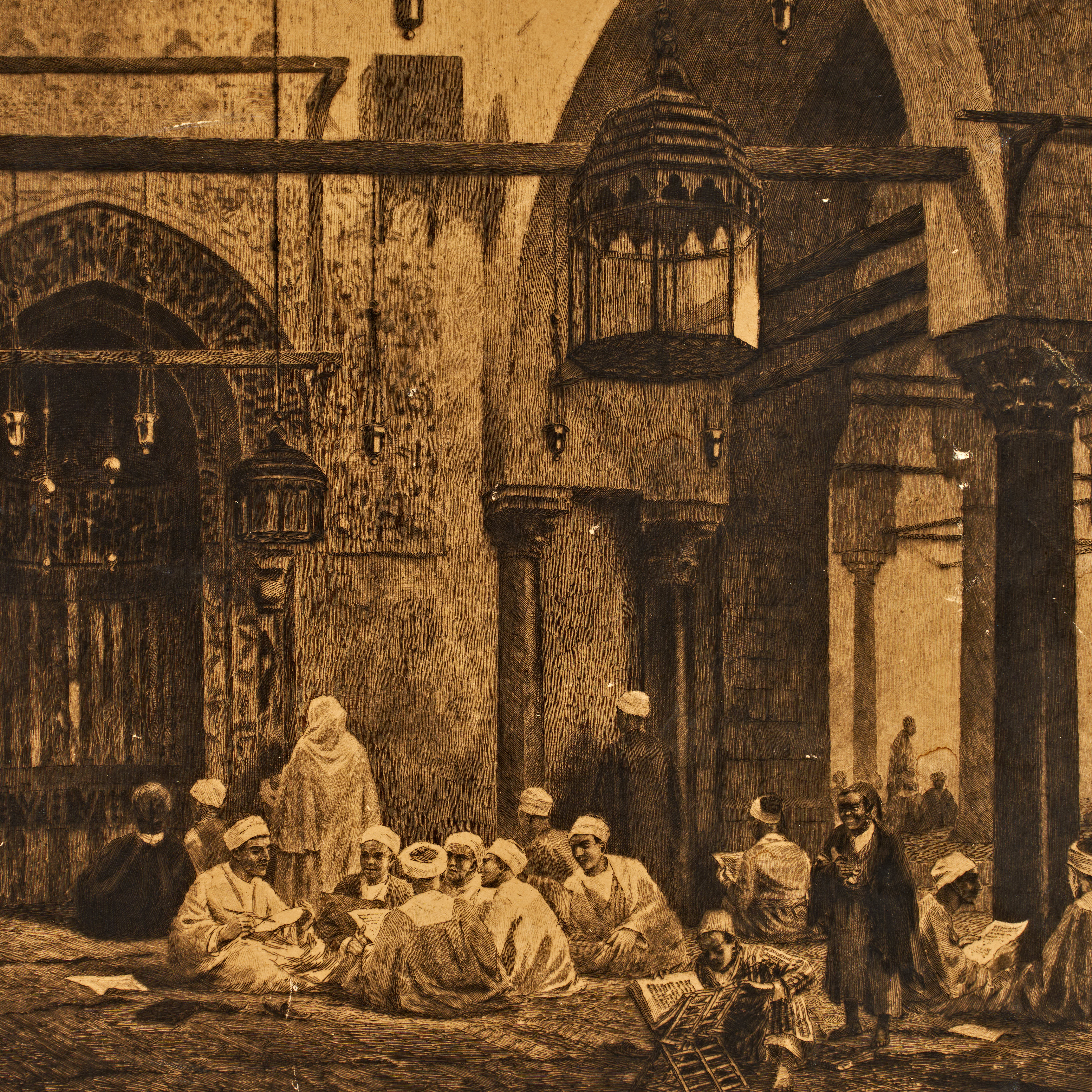 A LARGE ORIENTALIST AXEL HERMAN HAIG ARAB STUDENTS CAIRO EGYPT ETCHING 1890