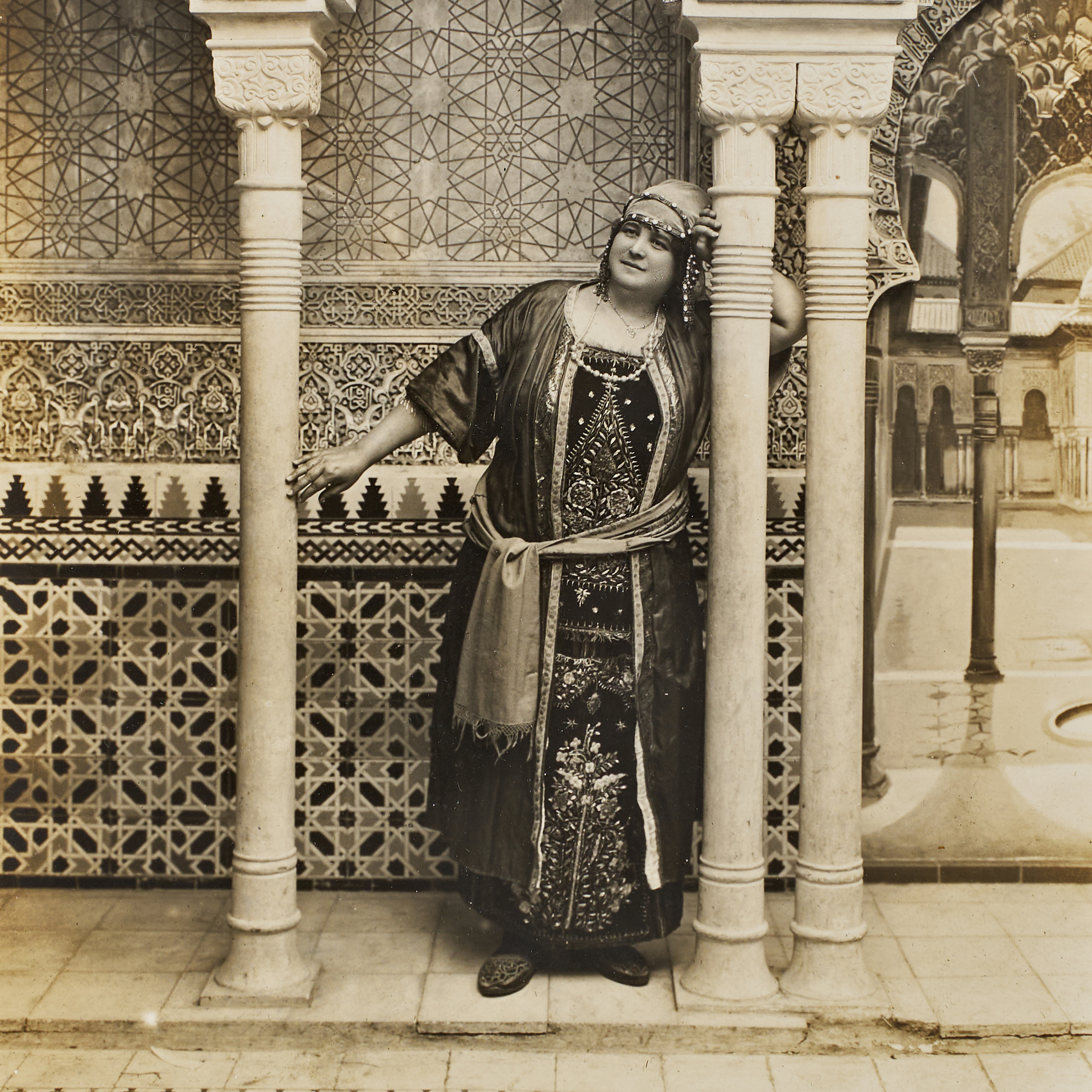 A. LINARES GRANADA SEPIA PHOTOGRAPH OF AN ALGERIAN WOMAN IN TRADITIONAL COSTUME