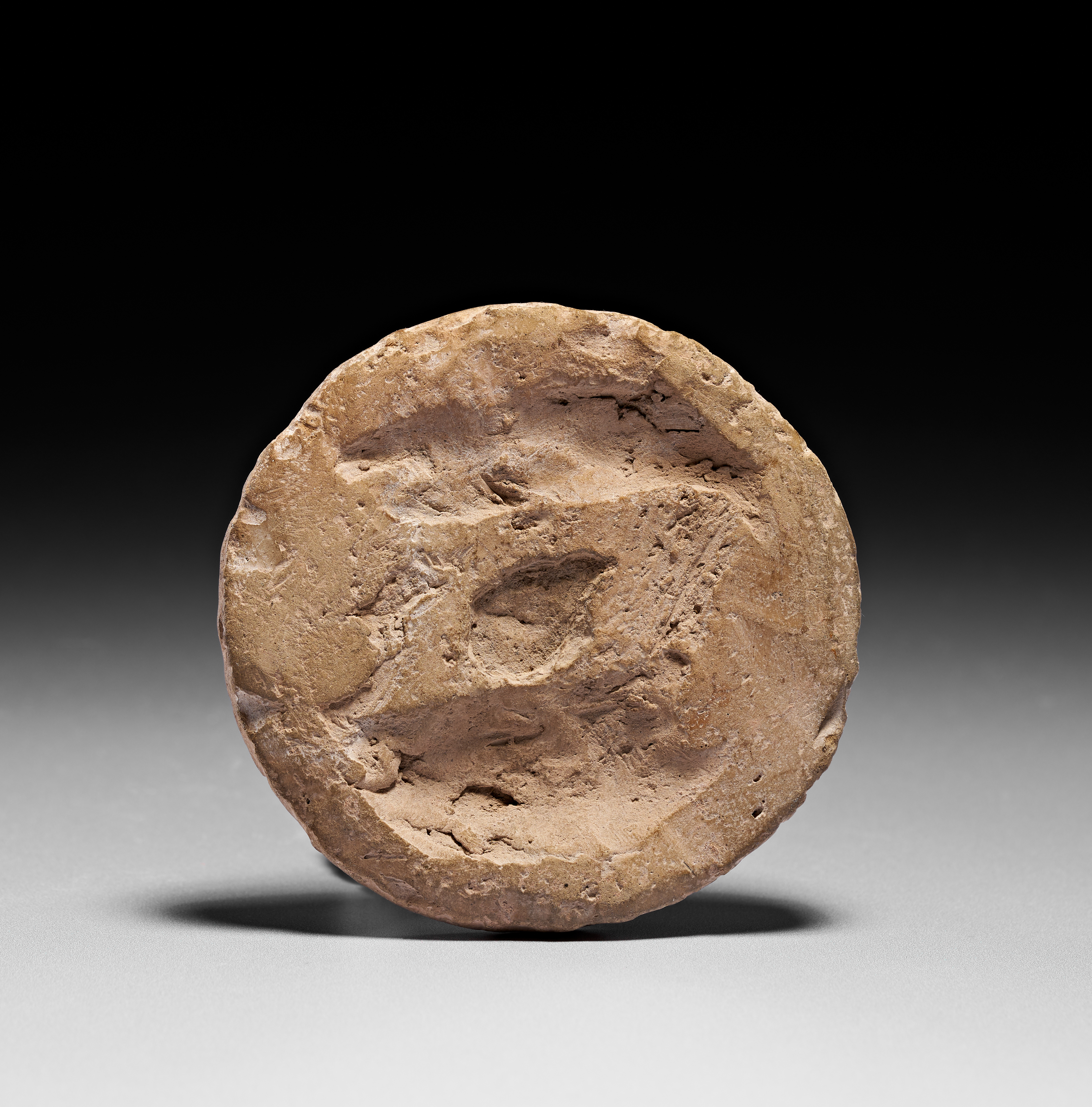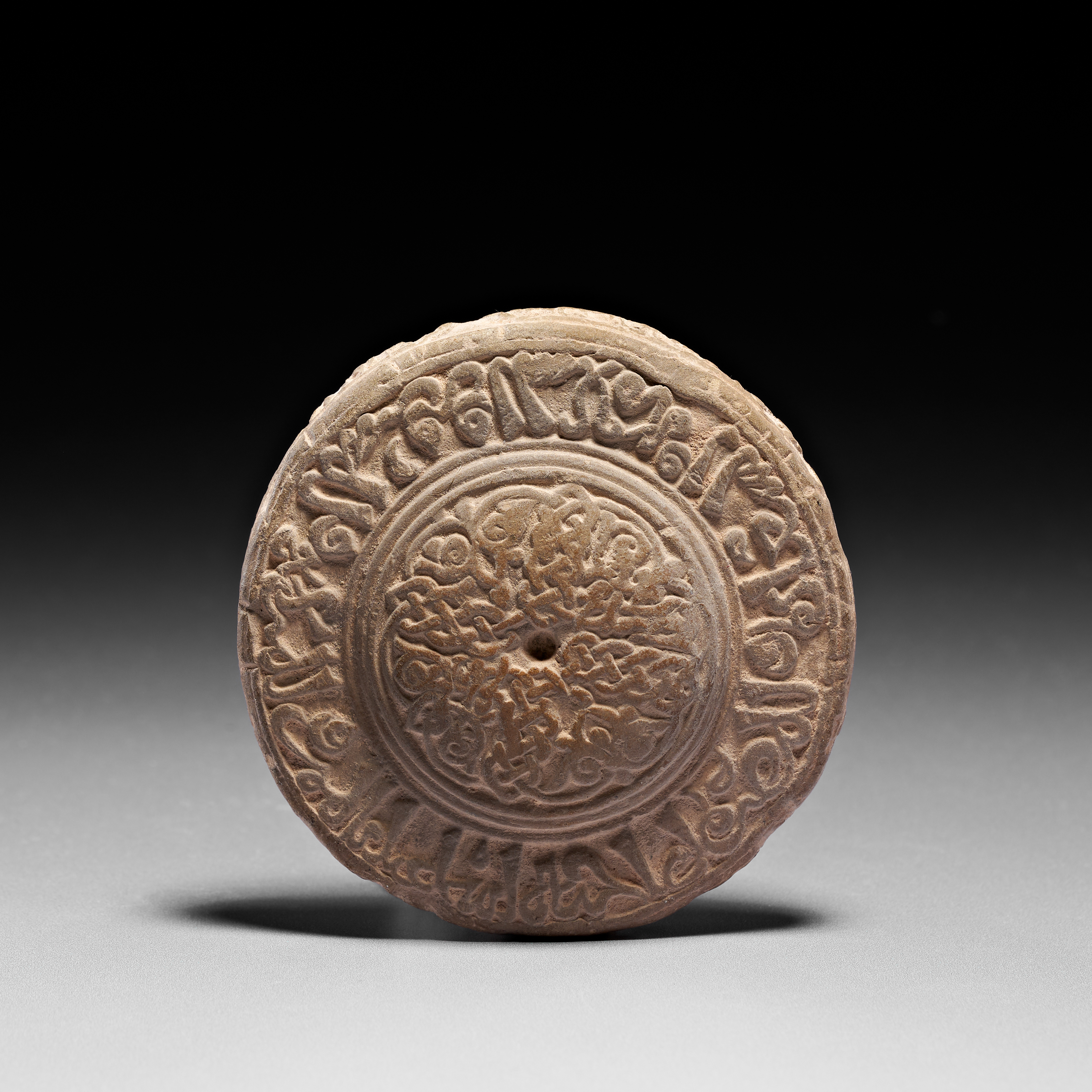 AN ISLAMIC SELJUK CALLIGRAPHIC TERRACOTTA ROUNDEL STAMP OR MOULD, PERSIA, 11TH – 13TH CENTURY
