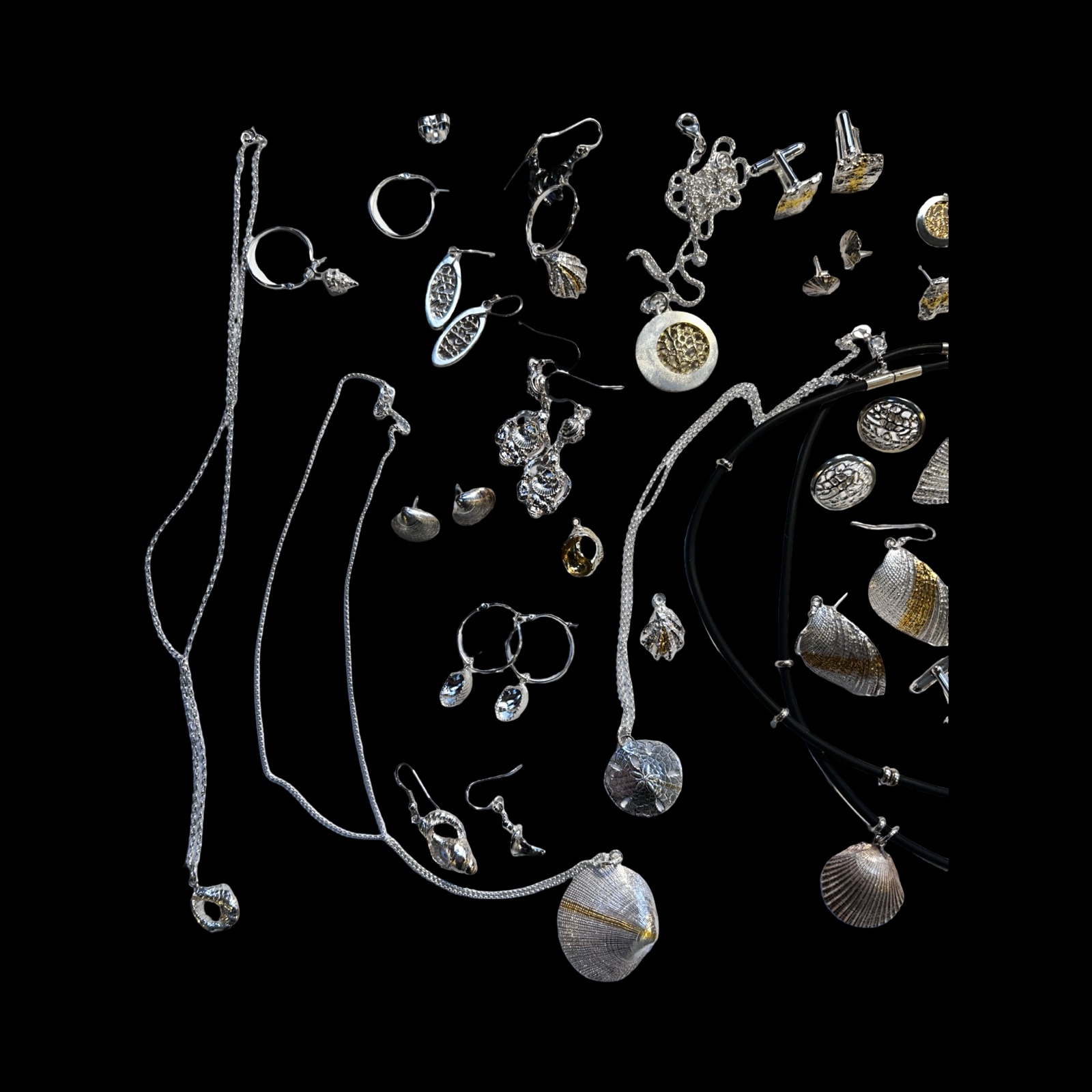 Provenance: From the workshop of the Late Rachael Whitteridge. Rachael was a silversmith lived in the UK and who travelled the Caribbean being inspired by seashells and the seashore. Her range of individually crafted silver shell necklaces, bracelets, earrings, other items and bead jewellery were cleverly worked to a high quality. She set up a small company (Rachael Whitteridge Designs) on the tiny Caribbean island of Nevis.