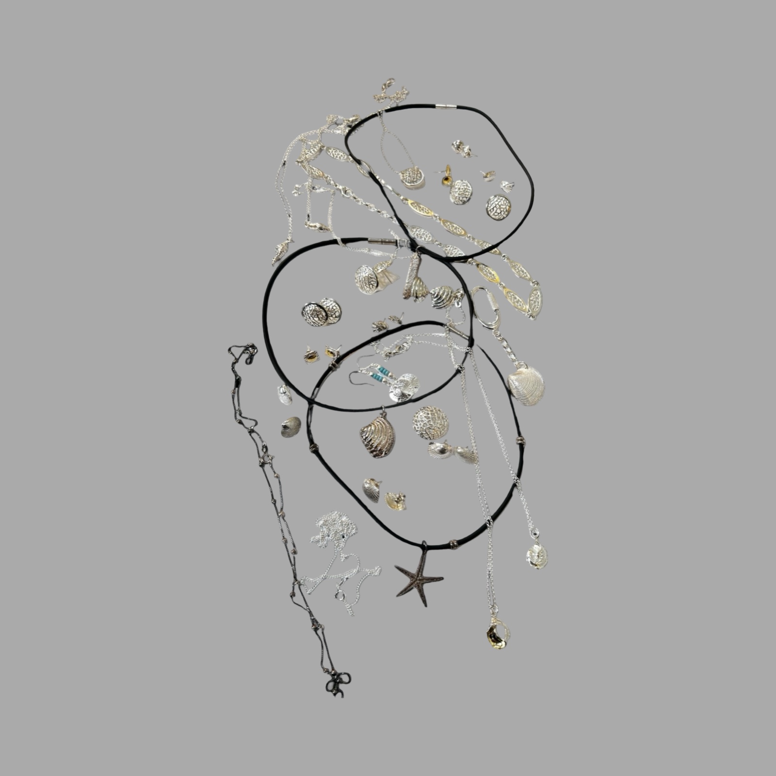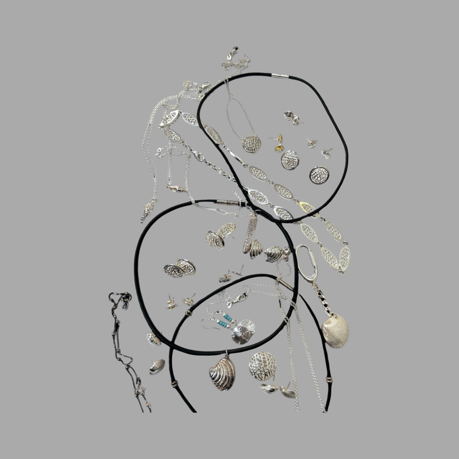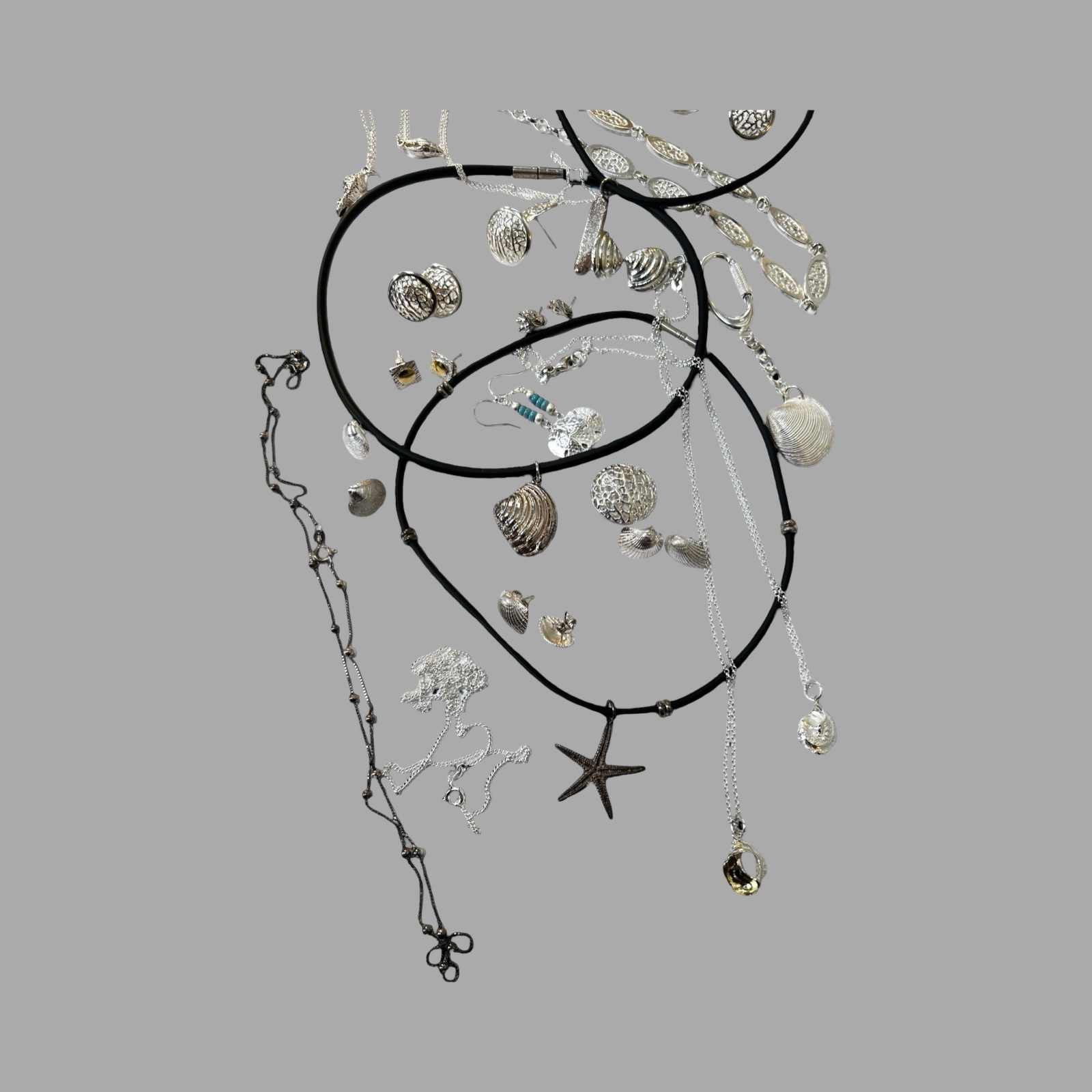 Provenance: From the workshop of the Late Rachael Whitteridge. Rachael was a silversmith lived in the UK and who travelled the Caribbean being inspired by seashells and the seashore. Her range of individually crafted silver shell necklaces, bracelets, earrings, other items and bead jewellery were cleverly worked to a high quality. She set up a small company (Rachael Whitteridge Designs) on the tiny Caribbean island of Nevis.
