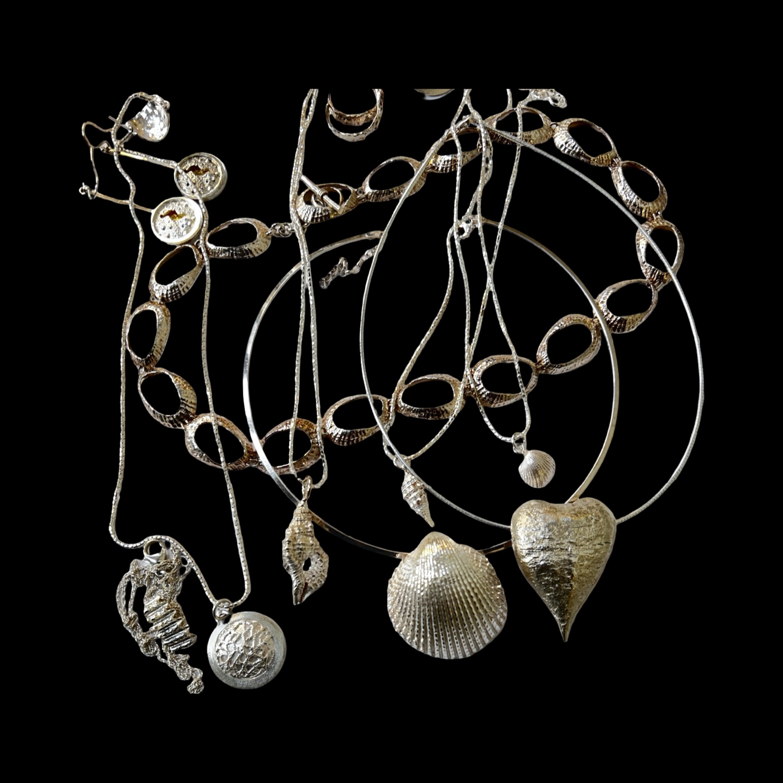 Provenance: From the workshop of the Late Rachael Whitteridge. Rachael was a silversmith lived in the UK and who travelled the Caribbean being inspired by seashells and the seashore. Her range of individually crafted silver shell necklaces, bracelets, earrings, other items and bead jewellery were cleverly worked to a high quality. She set up a small company (Rachael Whitteridge Designs) on the tiny Caribbean island of Nevis.