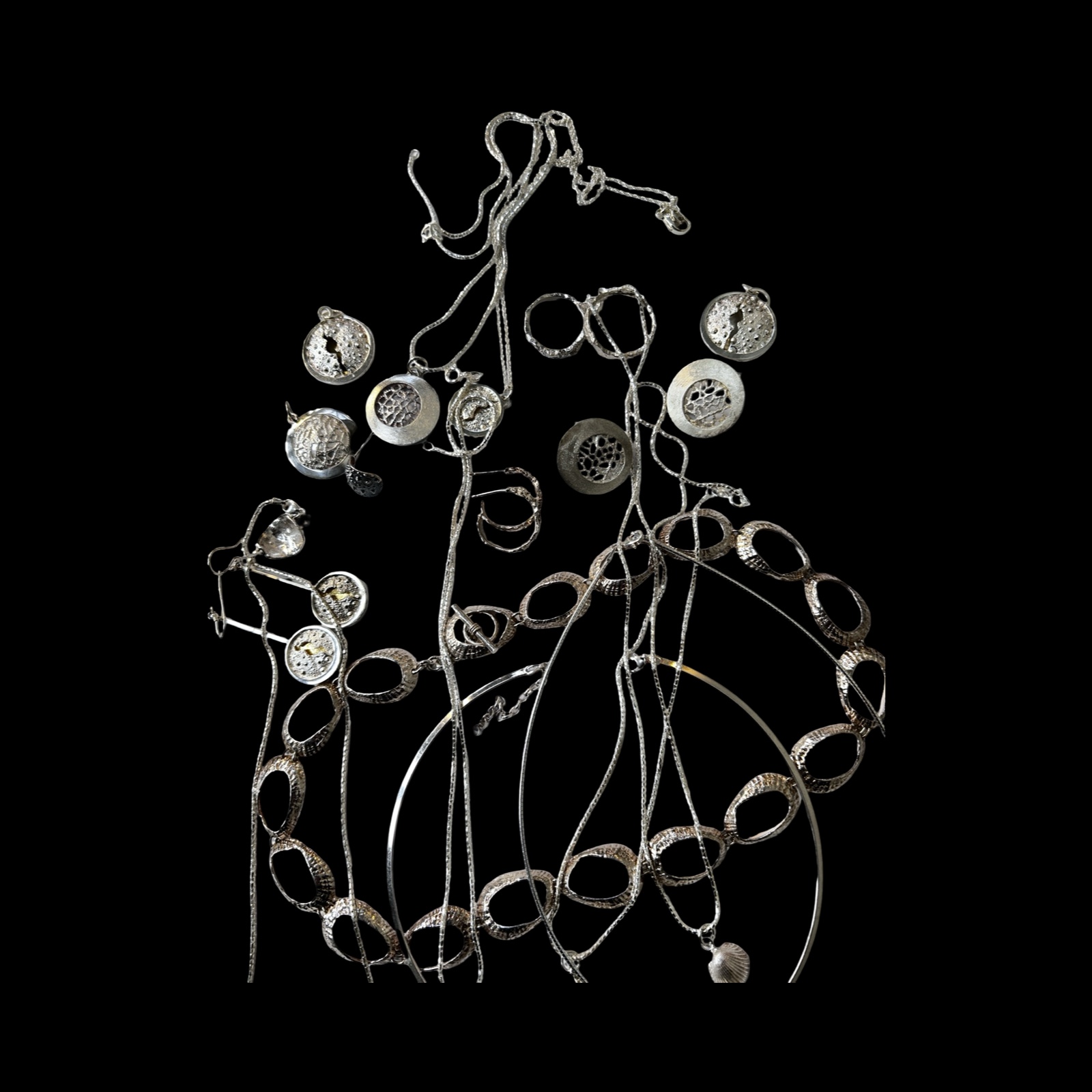 Jewellery unmarked (tests as silver) but findings are mostly marked 925. Some butterflies are missing