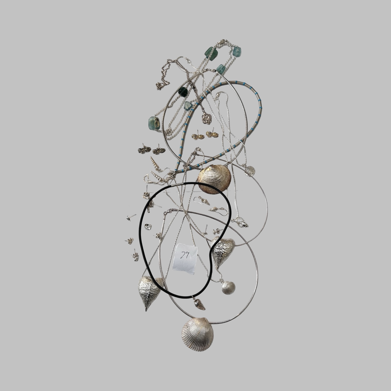 Jewellery unmarked (tests as silver) but findings are mostly marked 925.