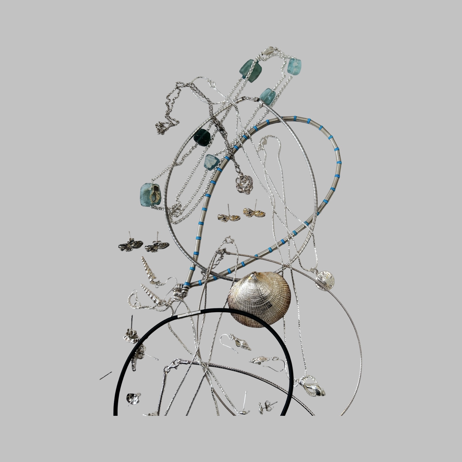 Provenance: From the workshop of the Late Rachael Whitteridge. Rachael was a silversmith lived in the UK and who travelled the Caribbean being inspired by seashells and the seashore. Her range of individually crafted silver shell necklaces, bracelets, earrings, other items and bead jewellery were cleverly worked to a high quality. She set up a small company (Rachael Whitteridge Designs) on the tiny Caribbean island of Nevis.