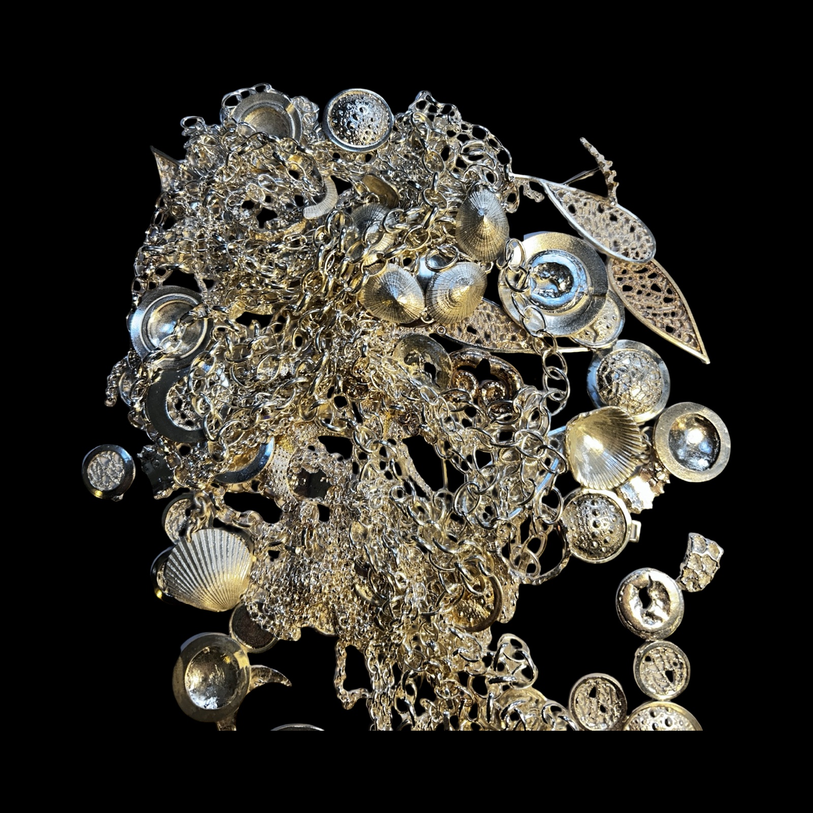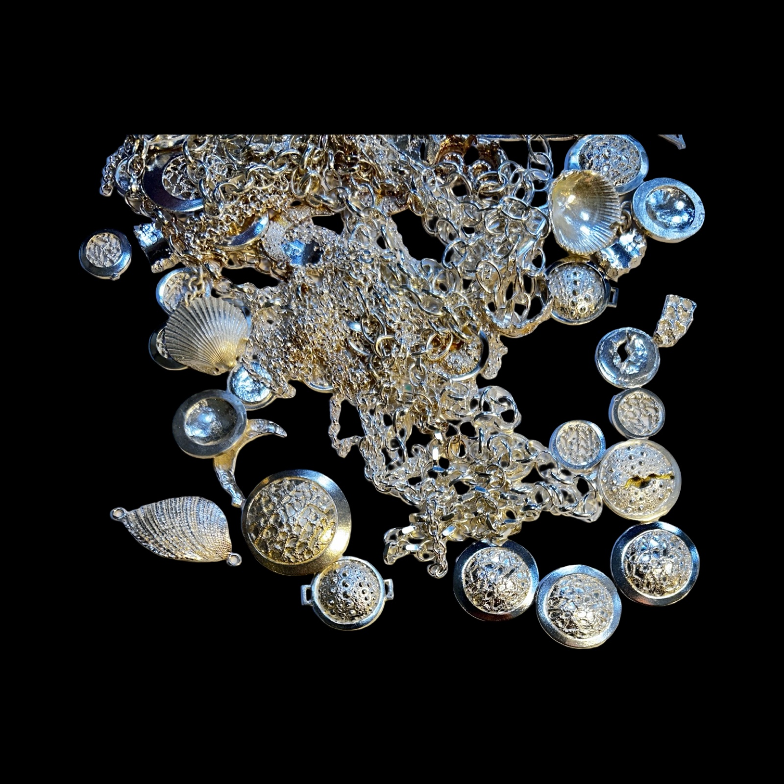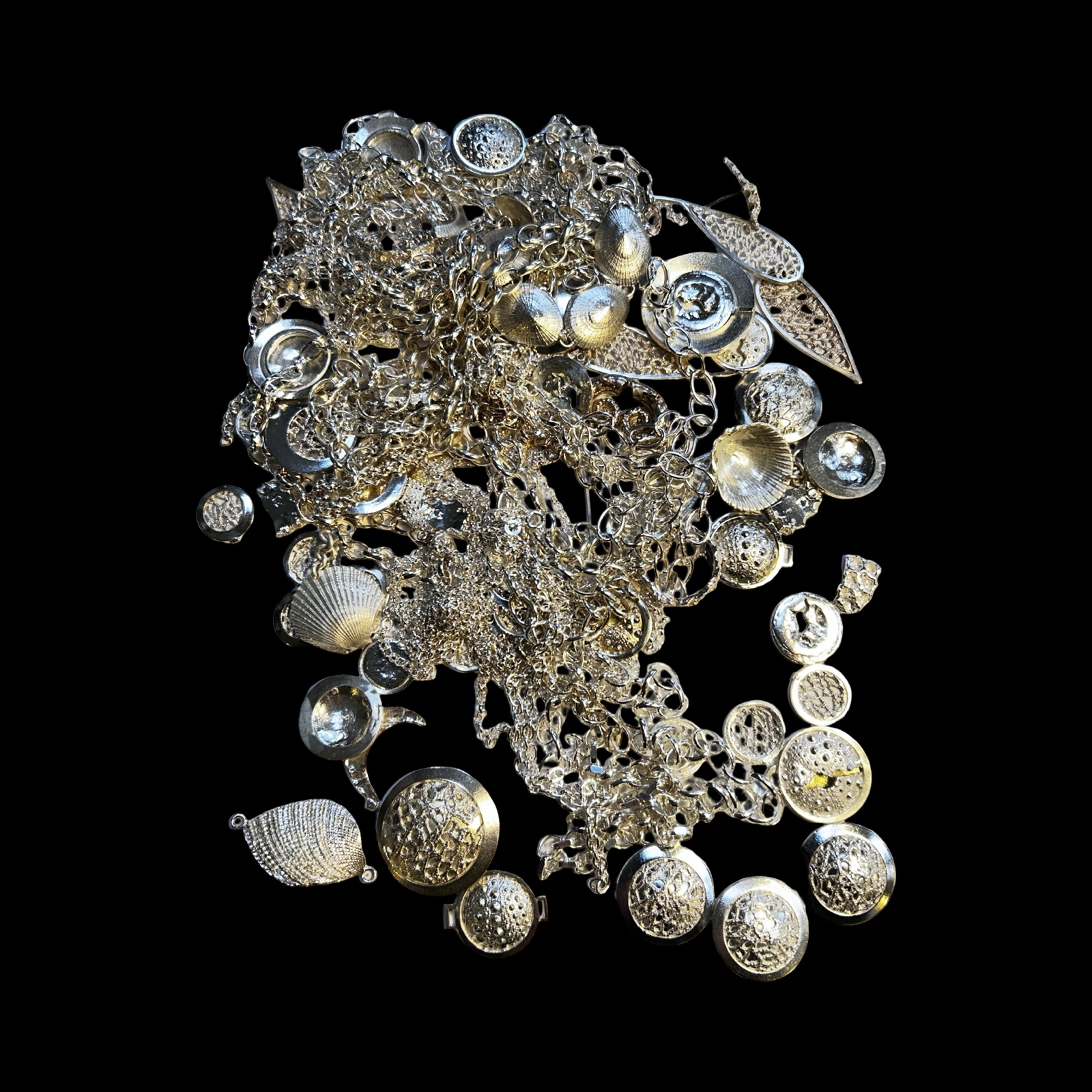 Jewellery unmarked (tests as silver). Most pieces are unfinished works.