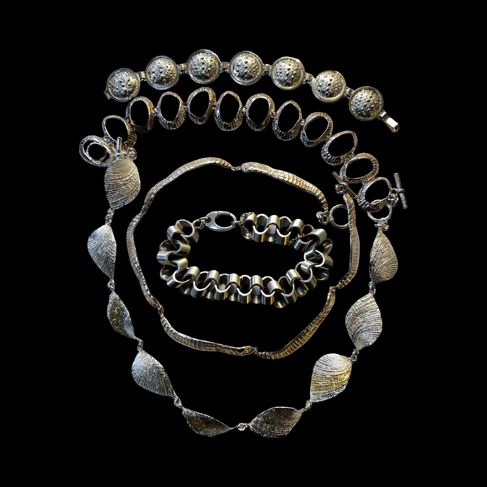 Provenance: From the workshop of the Late Rachael Whitteridge. Rachael was a silversmith lived in the UK and who travelled the Caribbean being inspired by seashells and the seashore. Her range of individually crafted silver shell necklaces, bracelets, earrings, other items and bead jewellery were cleverly worked to a high quality. She set up a small company (Rachael Whitteridge Designs) on the tiny Caribbean island of Nevis.
