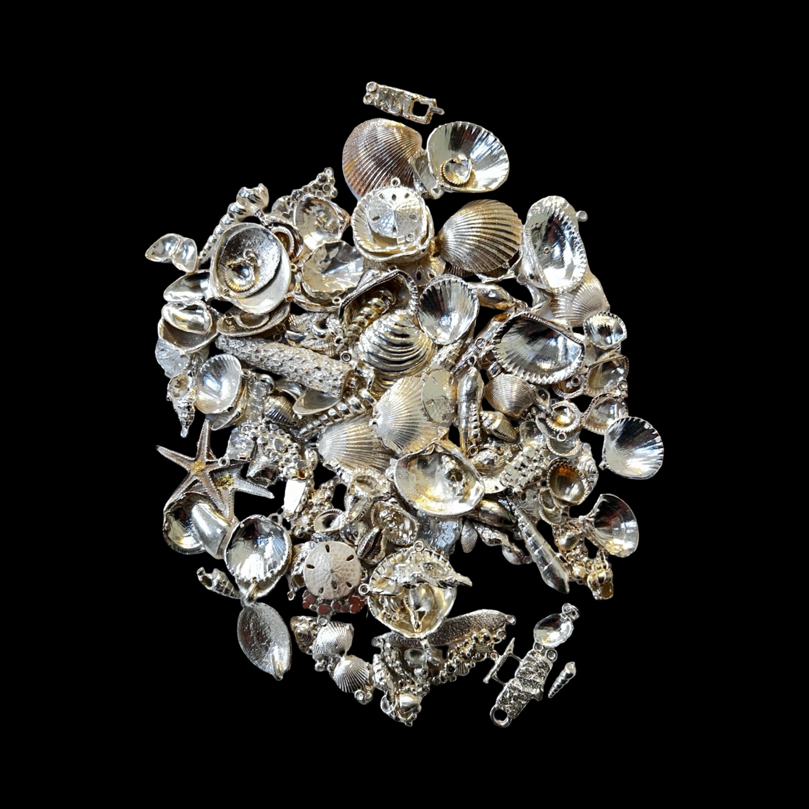 Modelled as charms, pendants, etc. Jewellery unmarked (tests as silver). Some unfinished works which need jump rings/chains and removal of sprues. Small, medium and large.