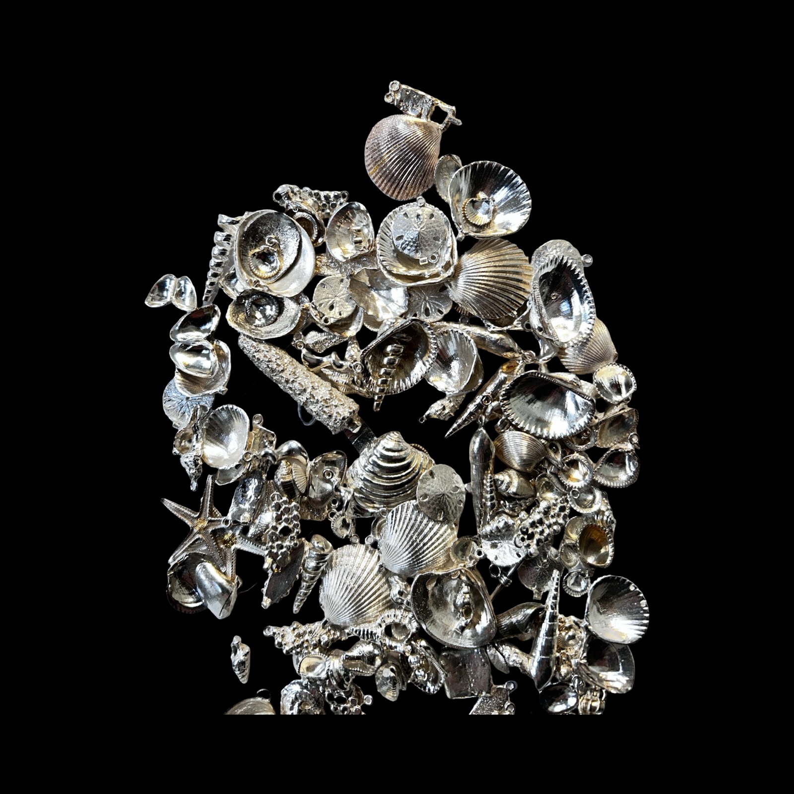 The shells used in these pieces were originally found on Caribbean beaches.