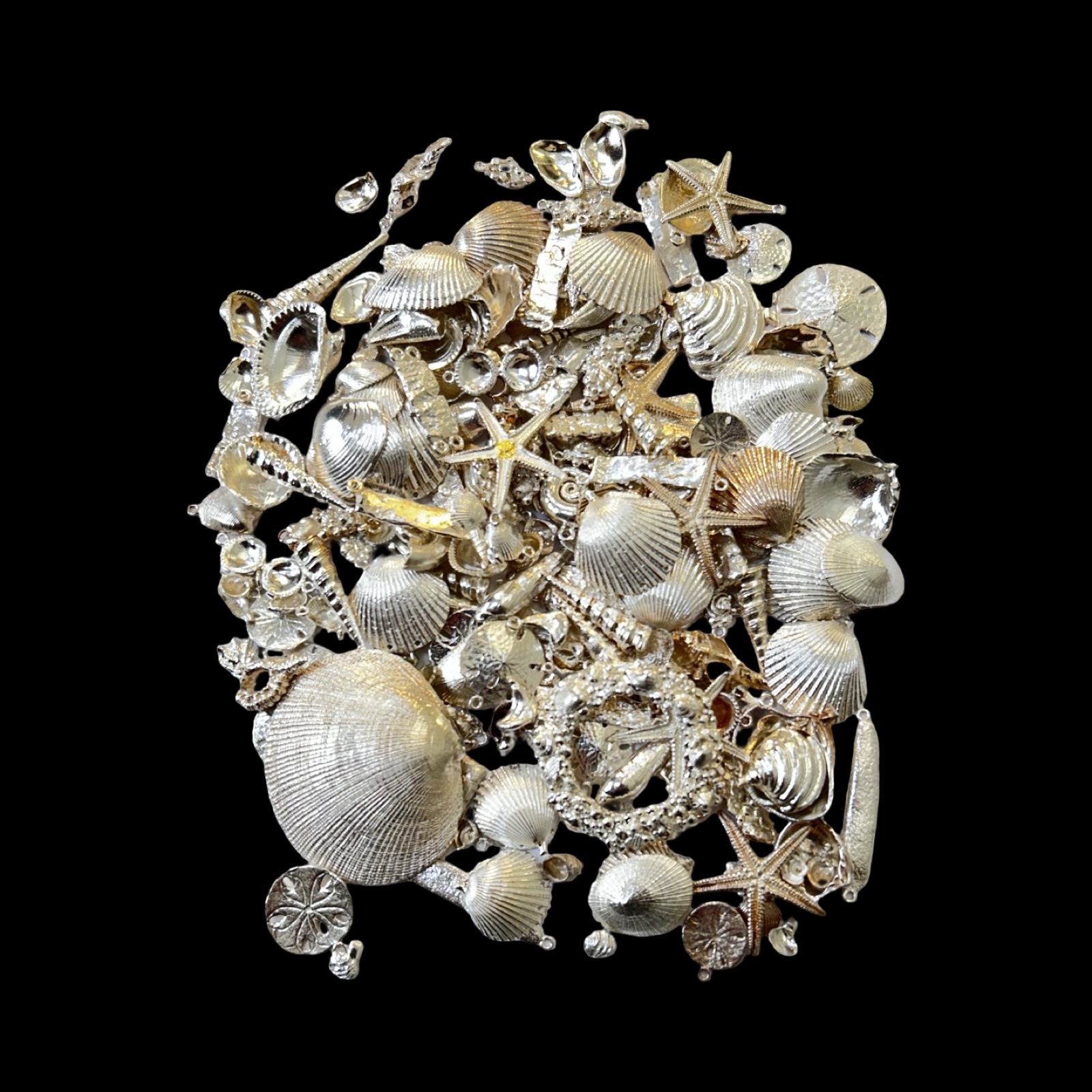 Modelled as charms, pendants, etc. Jewellery unmarked (tests as silver). Some unfinished works which need jump rings/chains and removal of sprues. Small, medium and large.