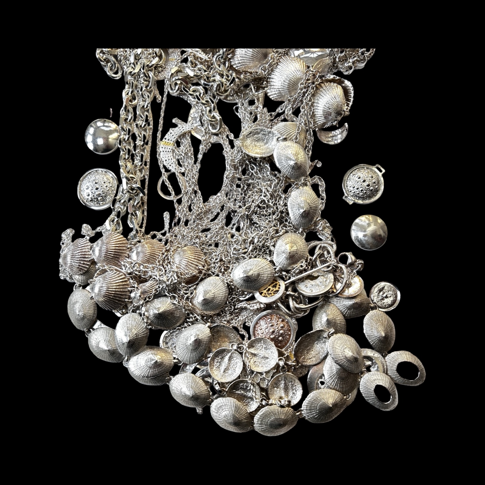 Provenance: From the workshop of the Late Rachael Whitteridge. Rachael was a silversmith lived in the UK and who travelled the Caribbean being inspired by seashells and the seashore. Her range of individually crafted silver shell necklaces, bracelets, earrings, other items and bead jewellery were cleverly worked to a high quality. She set up a small company (Rachael Whitteridge Designs) on the tiny Caribbean island of Nevis.