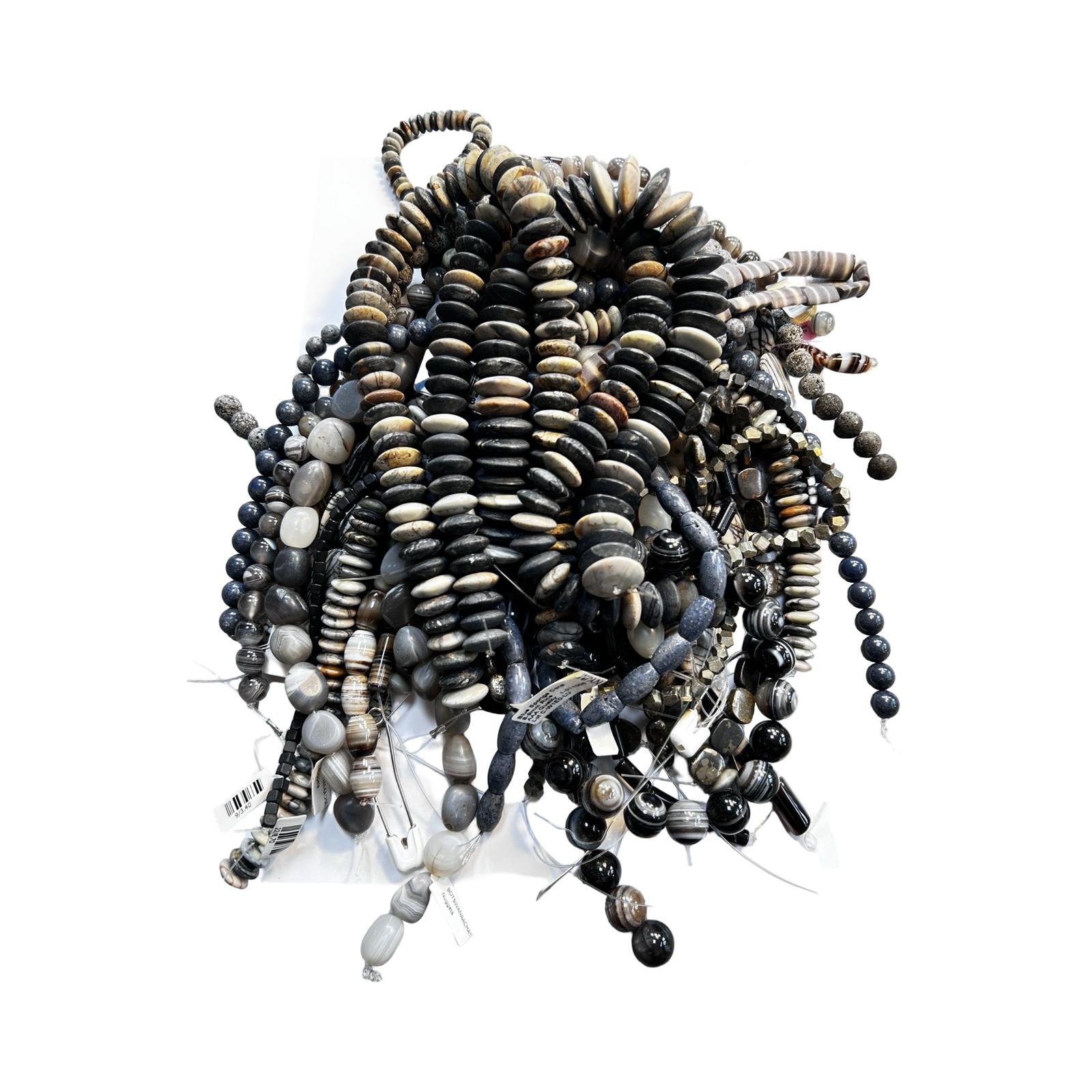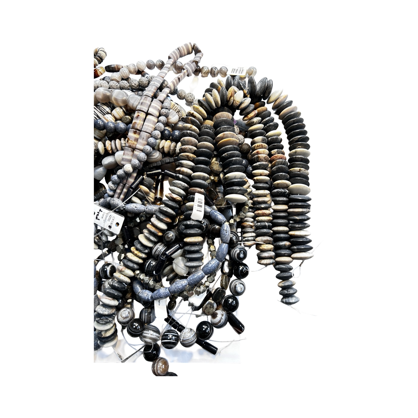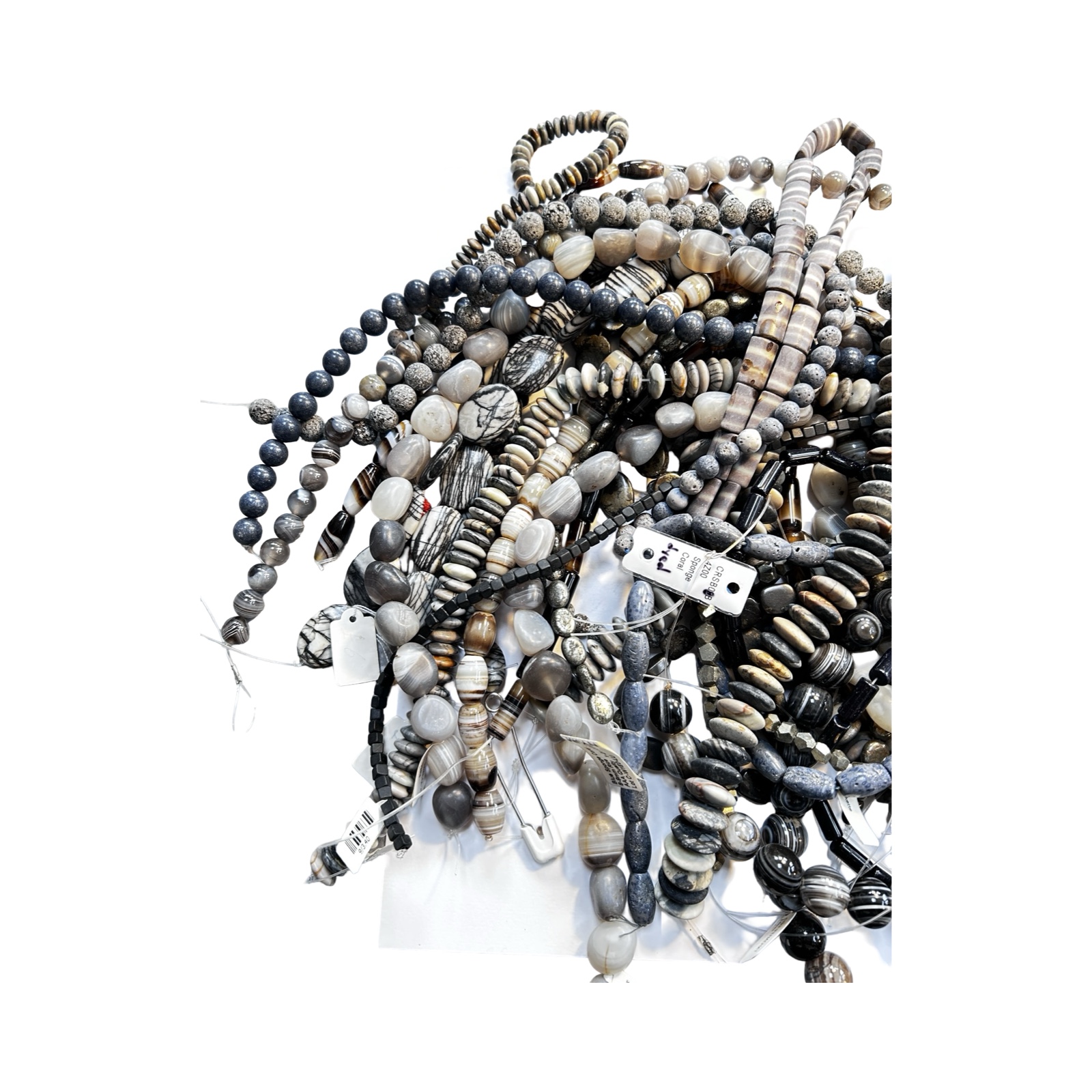 MIXED LOT OF 27 UNMADE BEAD STRANDS - BANDED AGATE, JASPER, PYRITE AND BLUE SPONGE CORAL