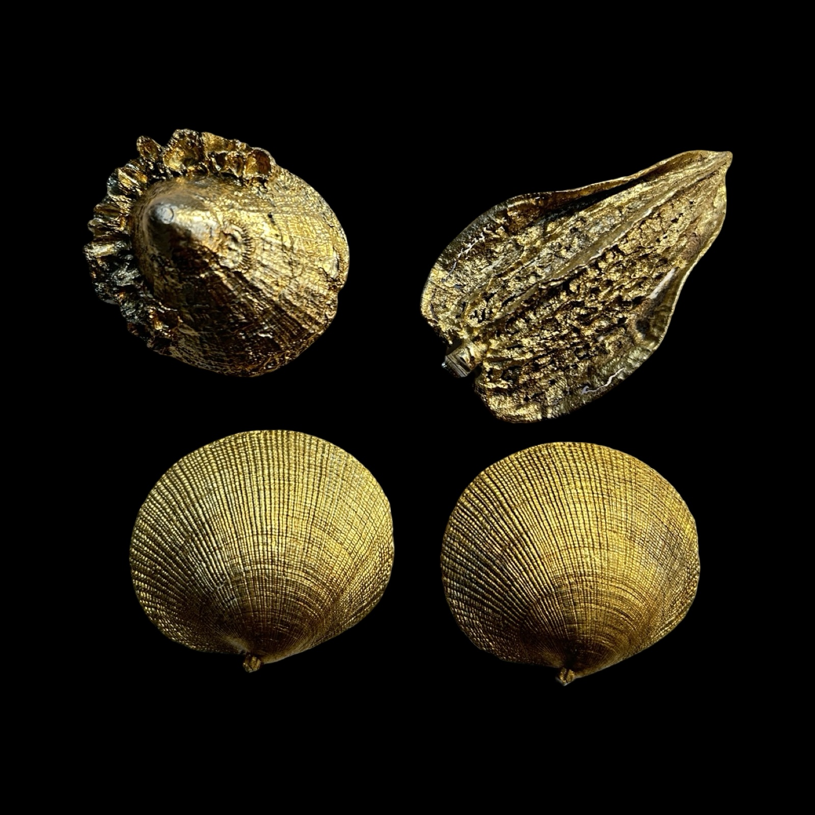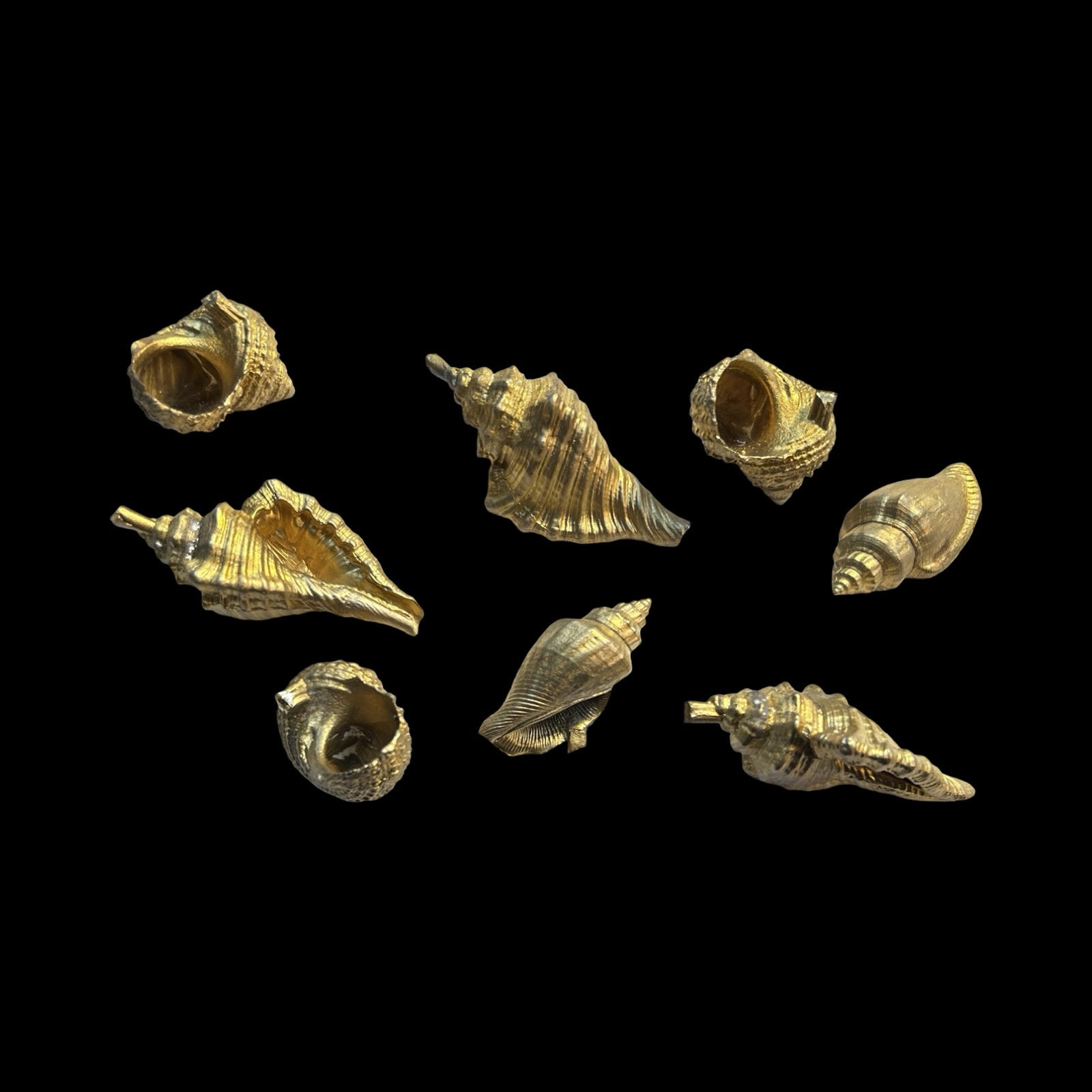 Modelled as shells, etc. Unmarked (tests as silver). Some unfinished works which need removal of sprues. Small and medium and large size.