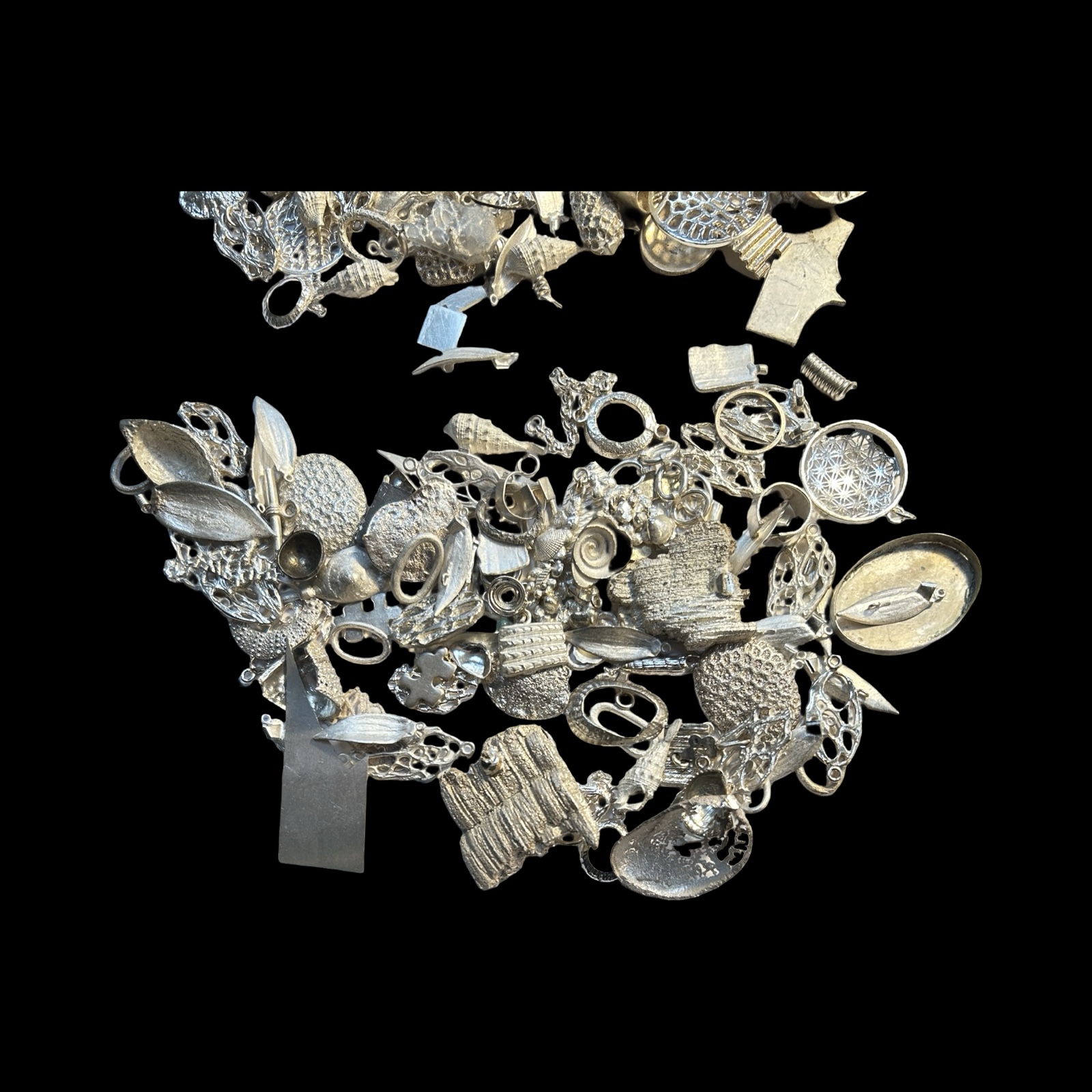 Provenance: From the workshop of the Late Rachael Whitteridge. Rachael was a silversmith lived in the UK and who travelled the Caribbean being inspired by seashells and the seashore. Her range of individually crafted silver shell necklaces, bracelets, earrings, other items and bead jewellery were cleverly worked to a high quality. She set up a small company (Rachael Whitteridge Designs) on the tiny Caribbean island of Nevis.